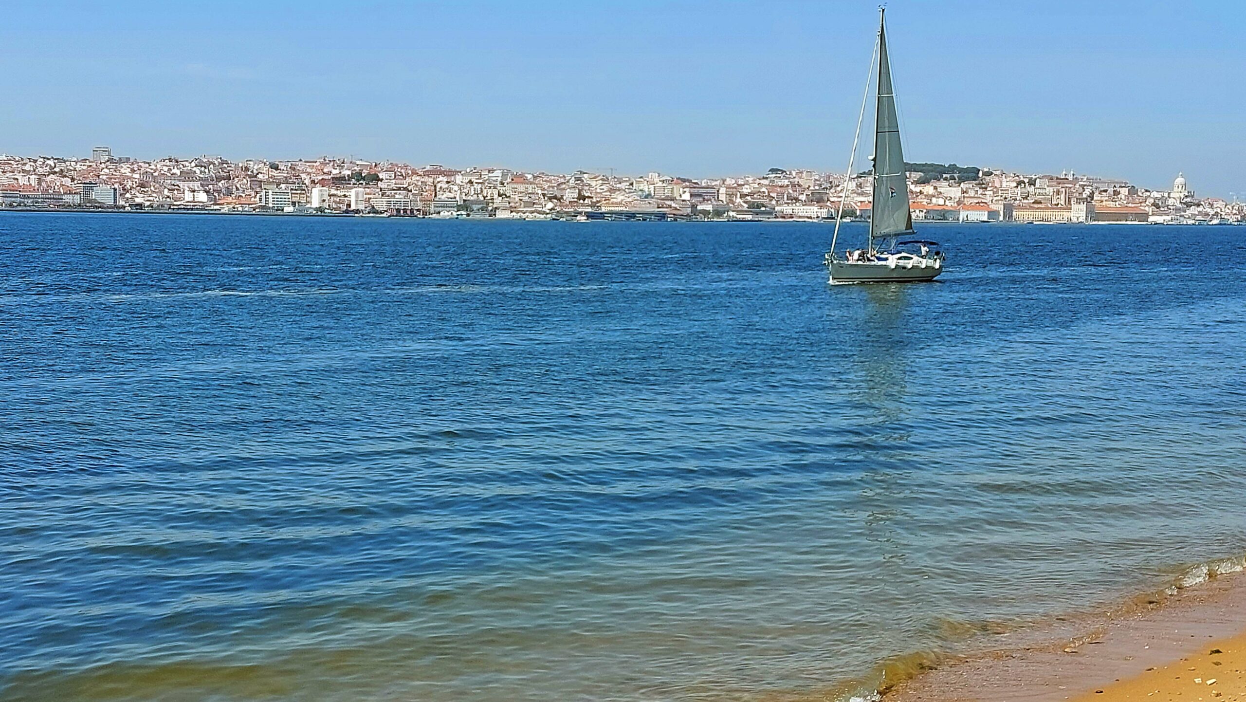 Ich bekomme Hunger und sofort fällt mir der Tipp eines Ex-Kollegen für ein tolles Fischrestaurant ein. Ich laufe zum Fährhafen am Cais de Sodré und setze deshalb mit der Fähre über nach Cacilhas. Die Tejo-Bucht ist hier fast zwei Kilometer breit, wofür die Fähre 10 Minuten benötigt.