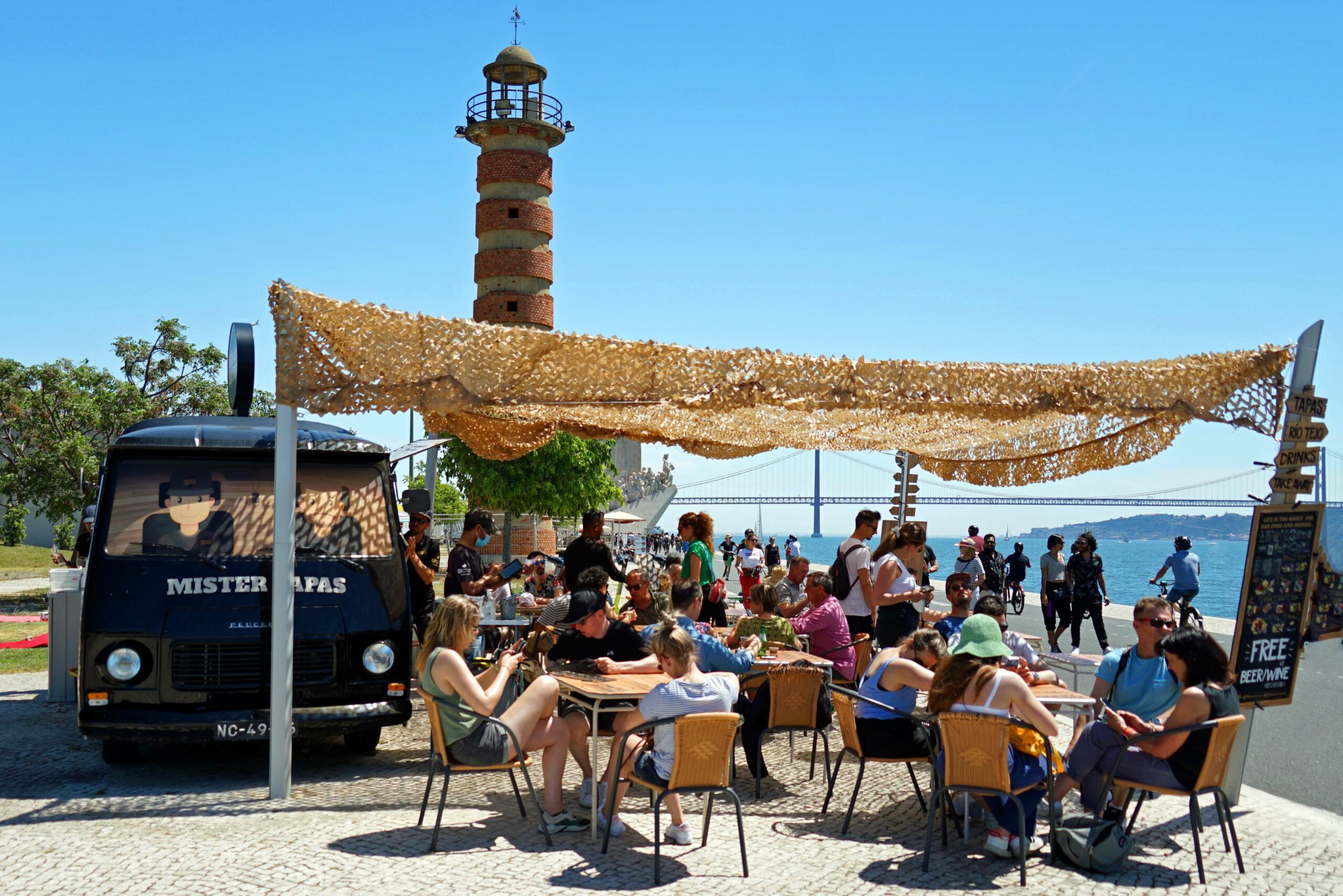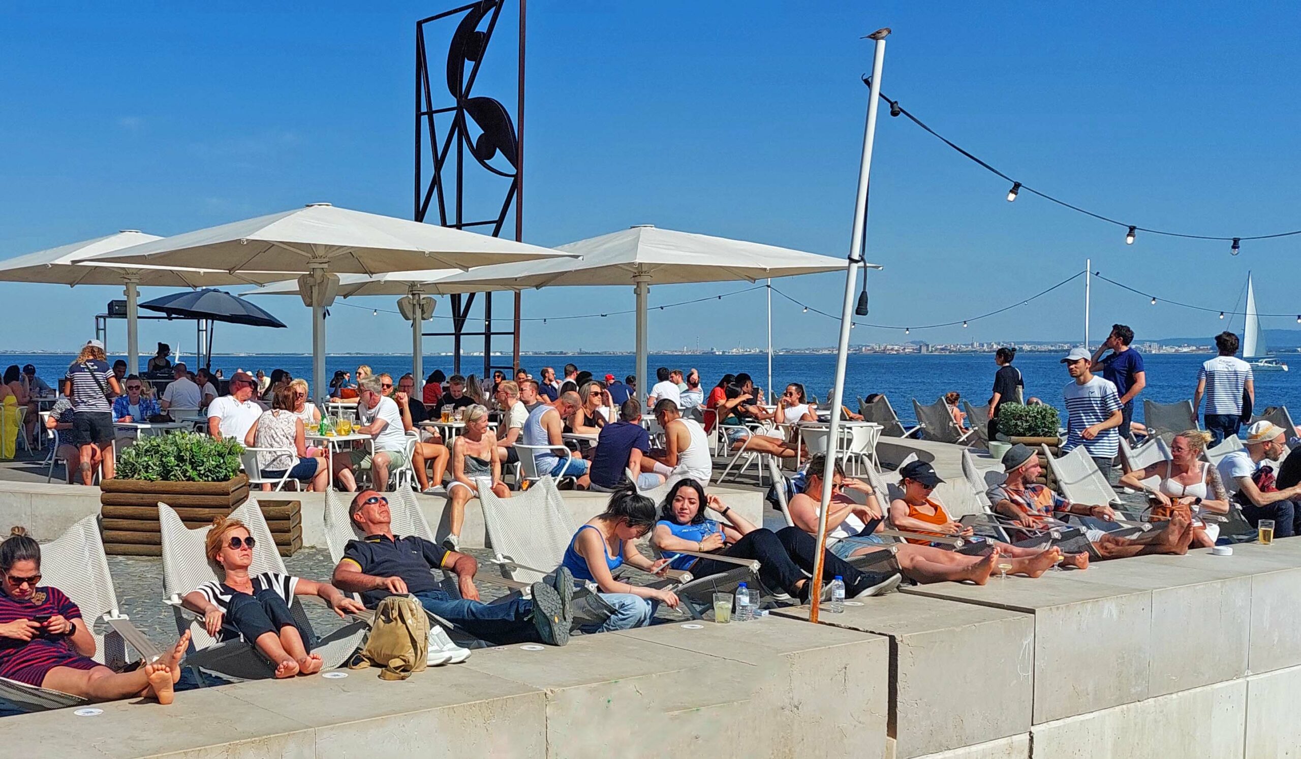 Heute will ich die urigen Gassen mit den dottergelben Trams entdecken, die blau-weiß gefliesten Hausfassaden und Kirchen finden, ein bisschen Golden Gate feeling an der Ponte 25 de Abril spüren, die weltberühmten Pasteis de Nate schnabulieren und die chillige Atmosphäre in der Stadt genießen. Zum Beispiel am Tejo, der die halbe Stadt begrenzt.