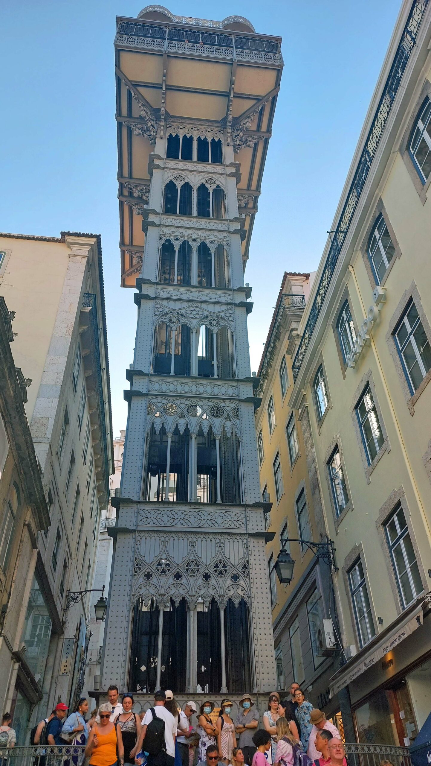 In einer Seitenstraße der Rua Augusta erblicke ich den berühmtesten ‚Miradou‘ Lissabons, den „Elevator de Santa Justa“.Klasse, denke ich, die Fahrt mit dem Aufzug ist ein toller Abschluss08 für heute. Dieses Wahrzeichen verbindet die Unter- mit der Oberstadt. An der Eisenkonstruktion aus dem Jahr 1902 stehen sich die Leute die Füße platt. Okay entscheide ich knallhart, fahre morgen, da ist auch noch ein Tag. Nach wenigen Schritten entdecke ich meinen Bus zum Campingplatz. Und jetzt, wo ich sitze, merke ich in jedem Muskel die neun Stunden Sightseeing.