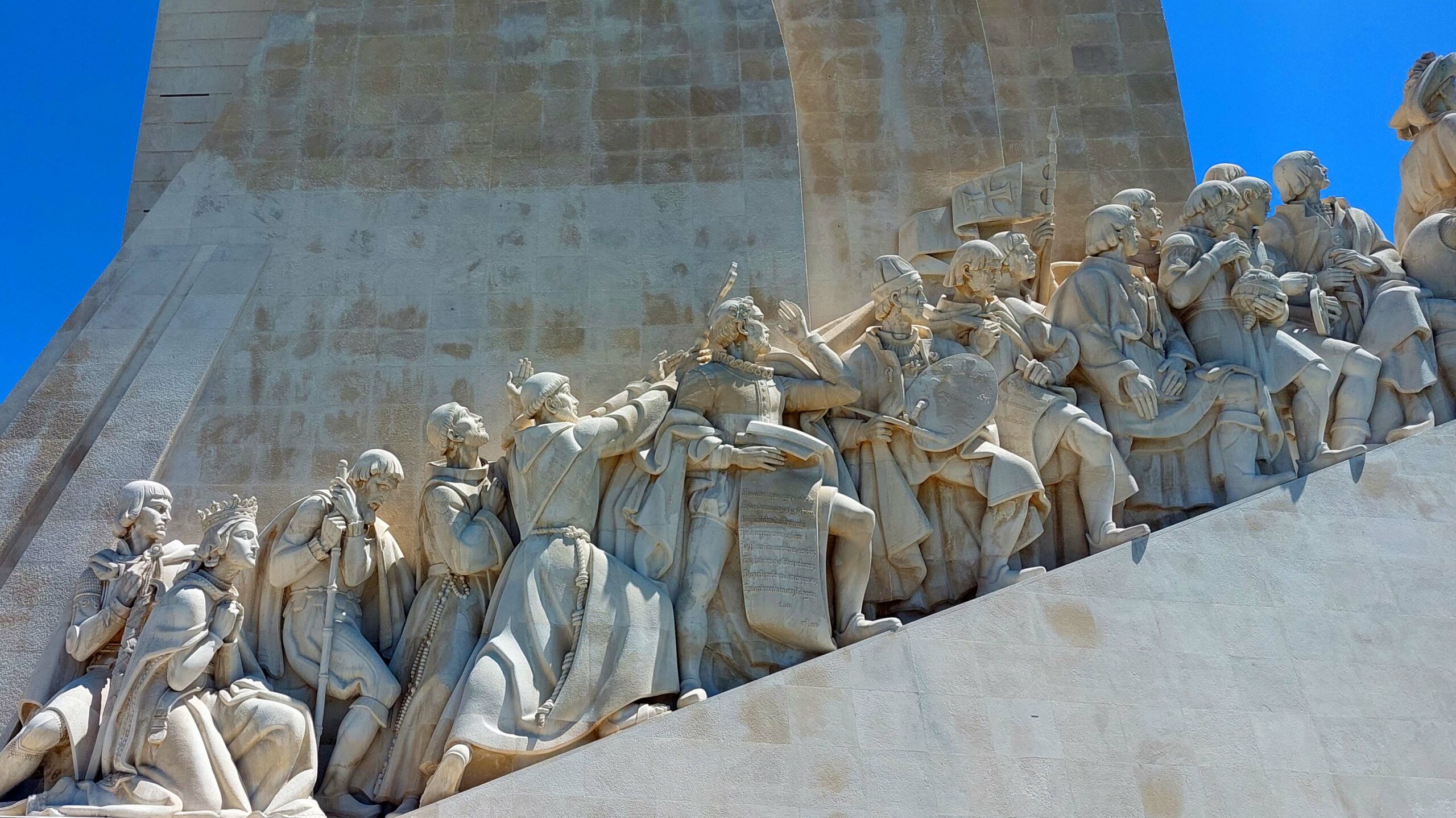 Ich komme vorbei am kleinen nicht sehr beachteten Leuchtturm und einem Uhrenturm. Die Sonne, der Wind, die Temperatur, das Gewusel und die Tatsache, dass ich hier auf geschichtsträchtigem Boden stehe, versetzen mich in ‚good vibes‘. Das segelförmige Entdecker-Denkmal Padrão dos Descobrimentos streckt sich elegant in den blauen Himmel, allen voran Heinrich der Seefahrer. Ich fahre hinauf und habe einen sagenhaften Blick auf Belem und den Tejo, Grandios!