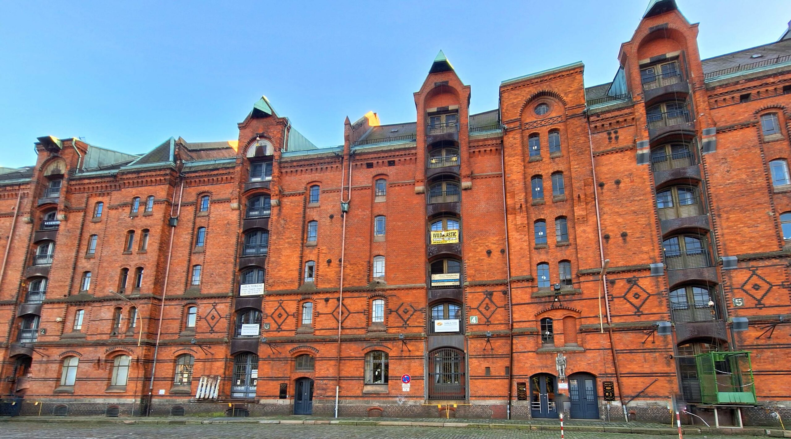 Ich schlendere die Hafenpromenade entlang vorbei am Feuerwehrschiff und der Rickmer Rickmers. Ich mache ein kurzes Kaffee-Päuschen beim „Schanzenbäcker“ (natürlich mit einem Franzbrötchen) und wende mich dann wieder dem Hafenpanorama zu. Kann mich nicht satt sehen, und immer die Elphi im Blick. Wie ferngesteuert biege ich in die Speicherstadt ab.