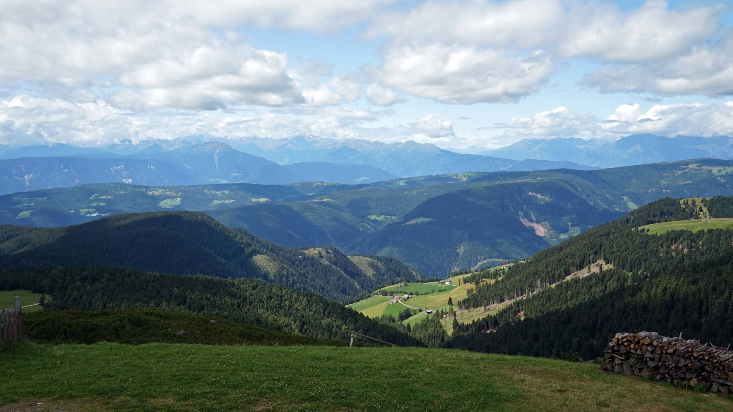 Von hier führt der flache, breite Weg direkt zum nächsten Aussichtspunkt, dem Dolomitoskop. Ich wandere vorbei am Unteren Horn, weiter über die Barbianer und Rittner Almen bis zur Feltuner Jausenhütte mit Dolomiten-Panorama direkt auf dem Horn. Die Kühe, Schafe und Pferde werden heute von den Almen zu ihren Bauern zurückgebracht Die Viehscheid wird normalerweise ganz groß gefeiert. Hätte, hätte Fahrradkette! Diesmal leider wieder nicht. Corona lässt grüßen.