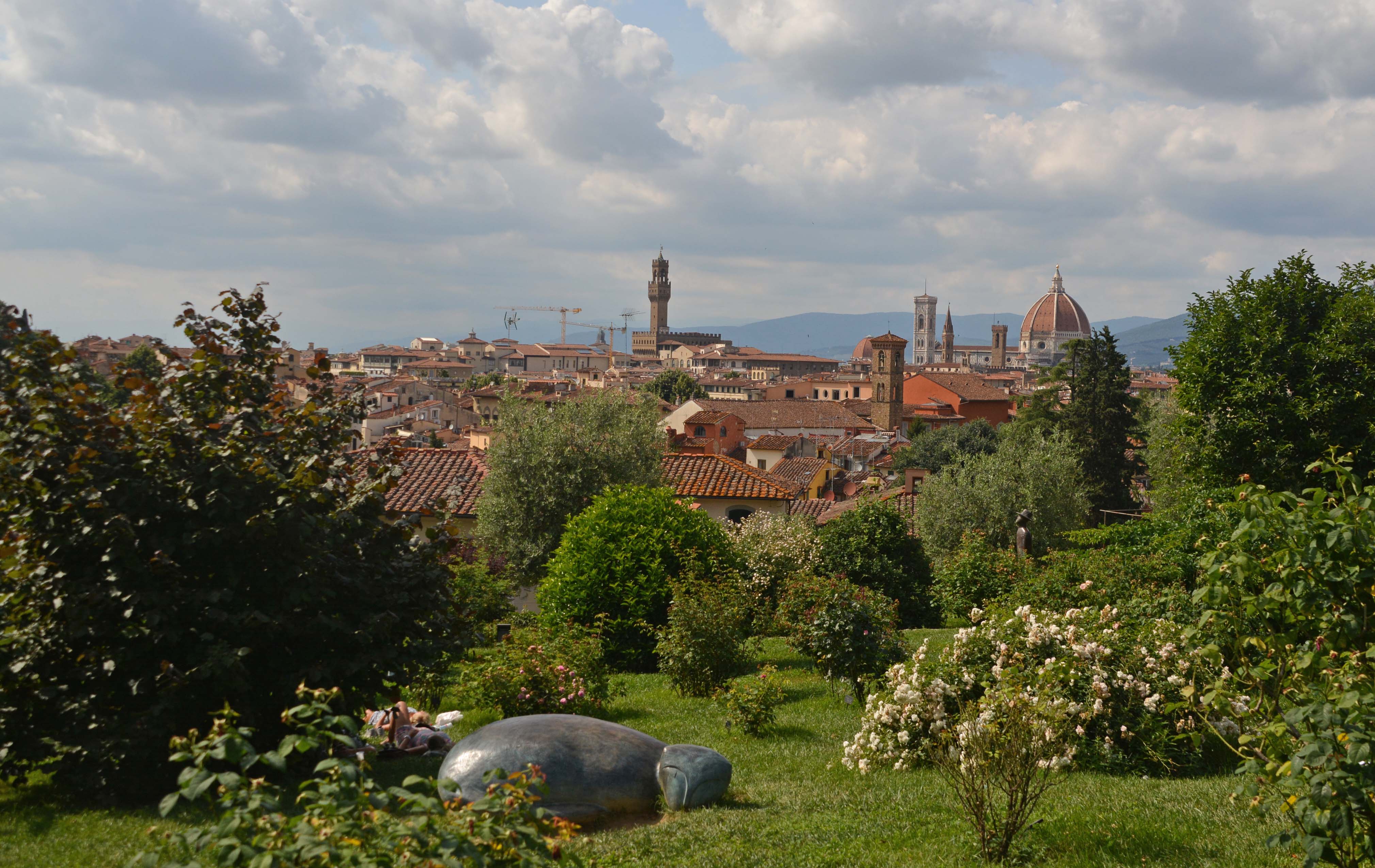 Wir haben es geschafft und sitzen in einer Bar bei eiskaltem Bier und einem Cafè. Dann geht’s Richtung ‚Piazzale Michelangelo‘, D E M Aussichtsplatz auf das Stadtzentrum. Wir nutzen den ‚Giardino delle Rose‘ als ruhige Oase, bewundern die ‚Kunscht-Objekte‘ und genießen von hier ebenso tolle Ausblicke auf Florenz. In der Zwischenzeit haben sechs Busse ihre Menschenmassen auf dem Piazzale ausgespuckt. Sie stürmen in alle Himmelsrichtungen, immer voran Selfie-Stange oder Reiseleiter. Schnell noch ein Blick, schnell noch ein Foto und dann nichts wie weg hier.
