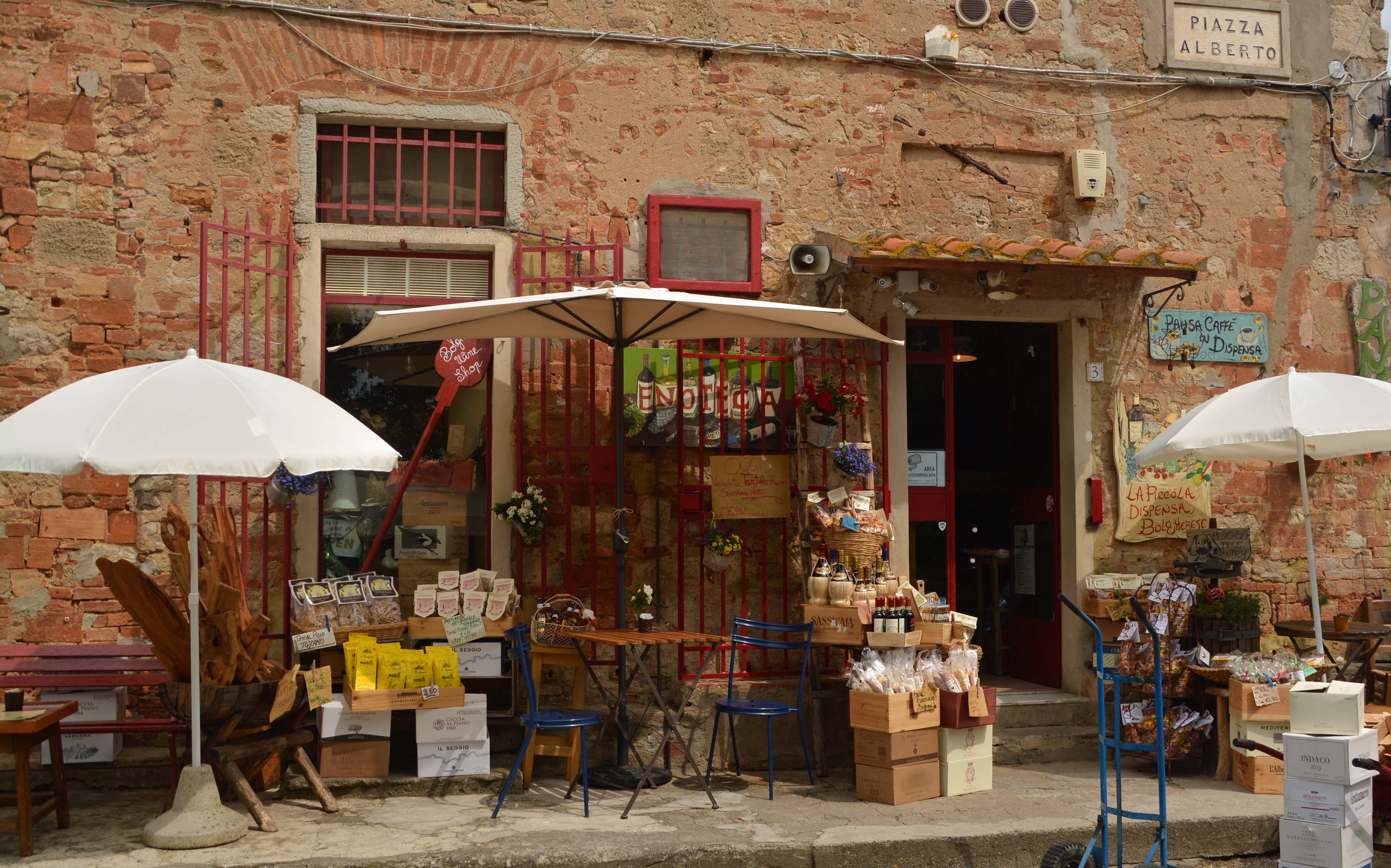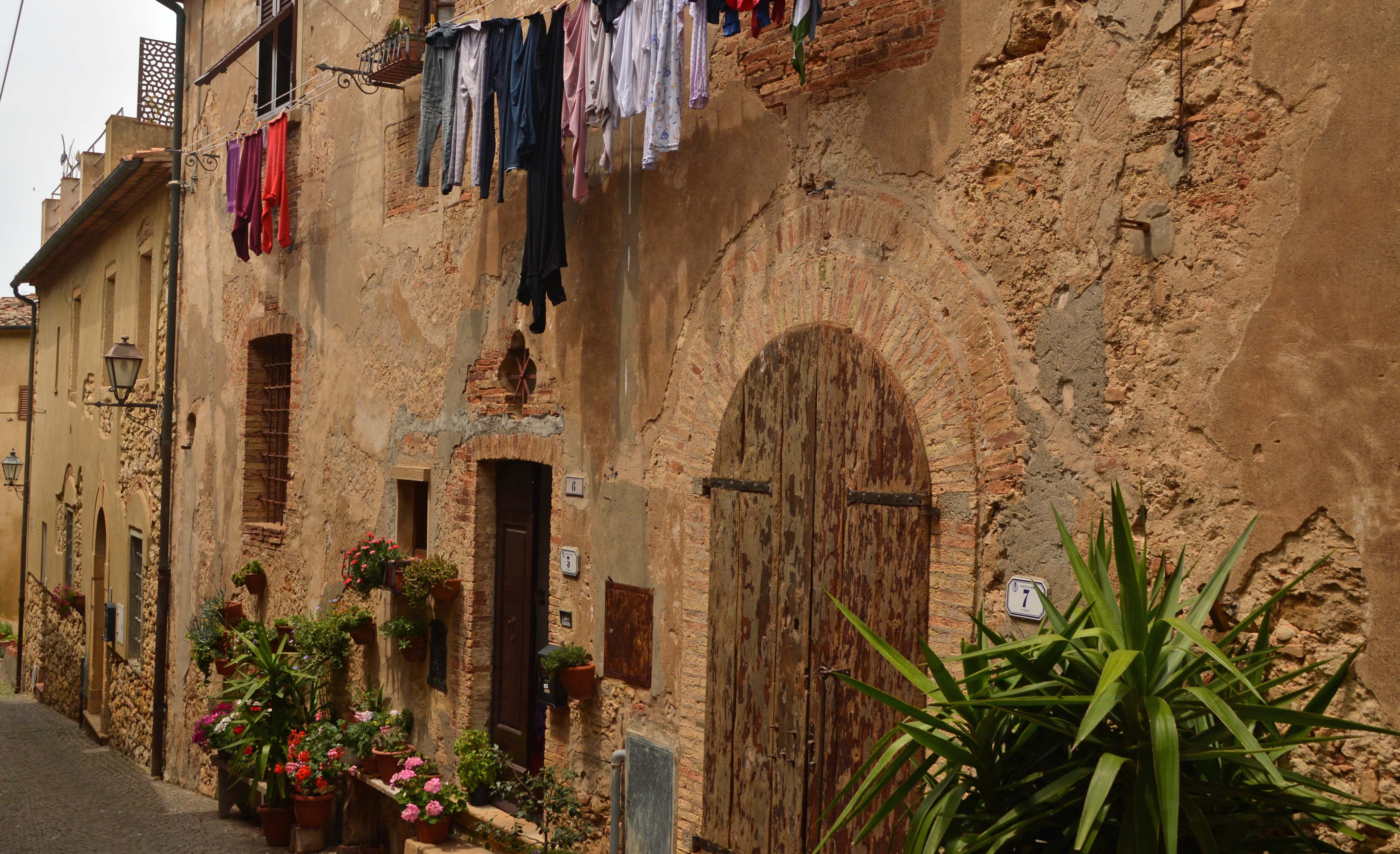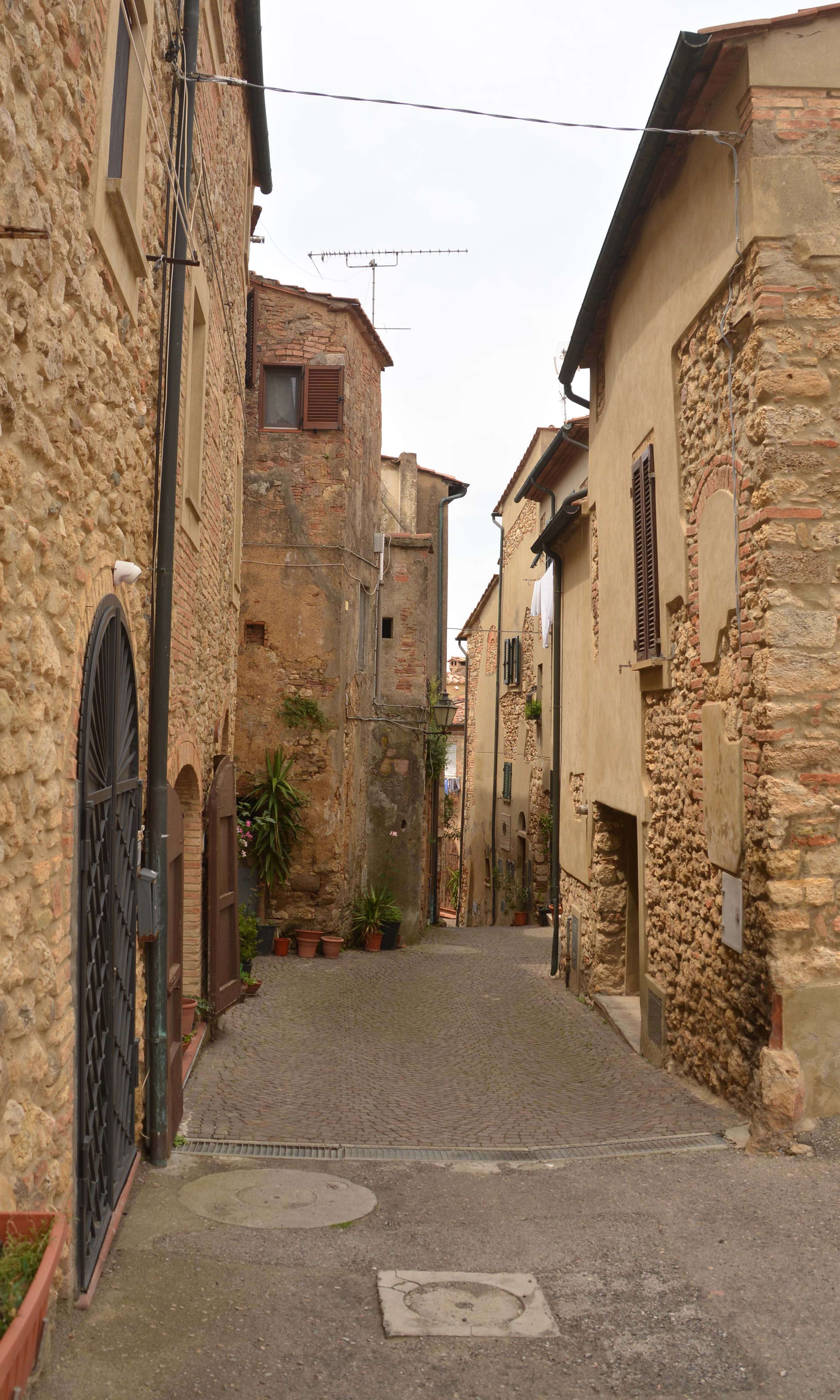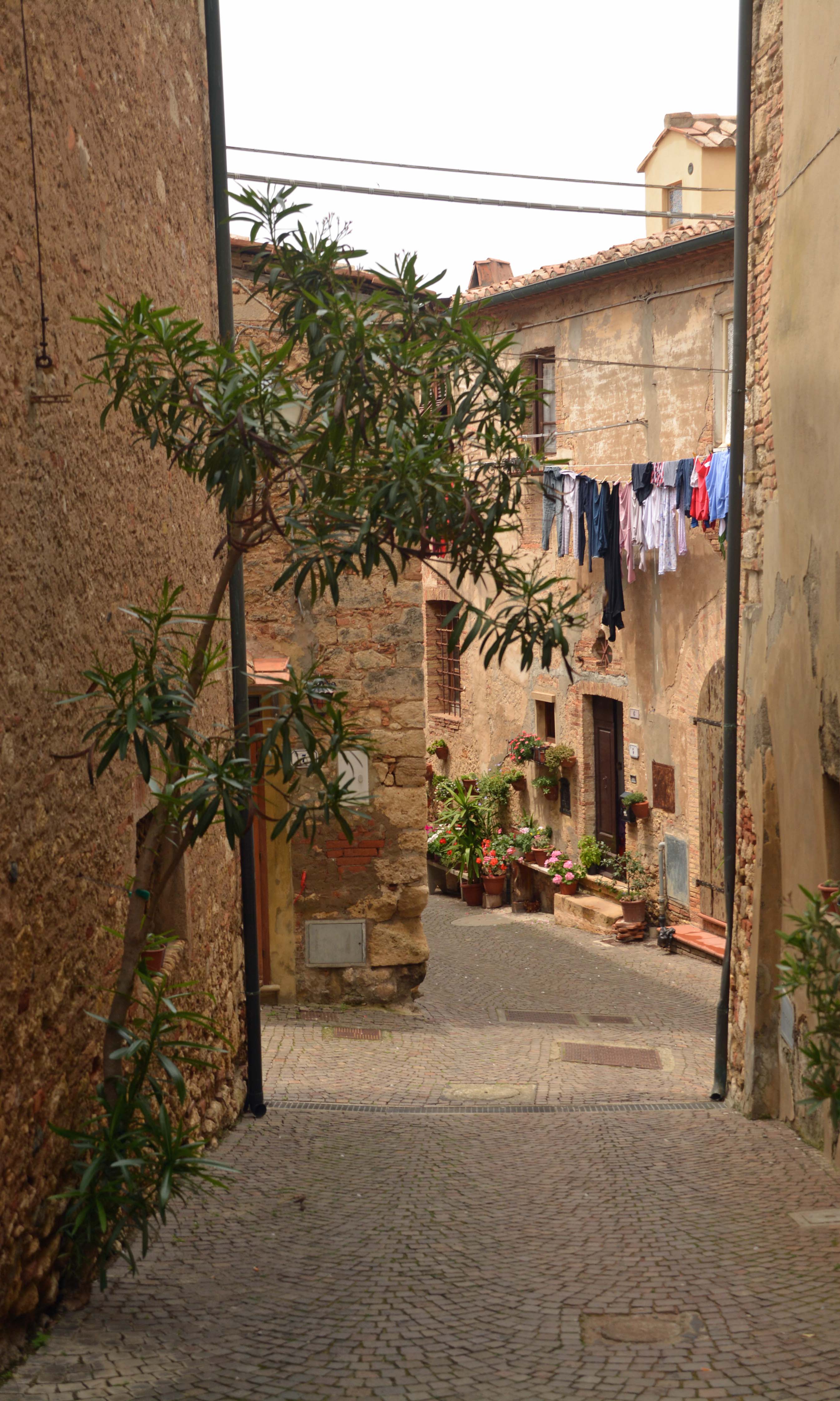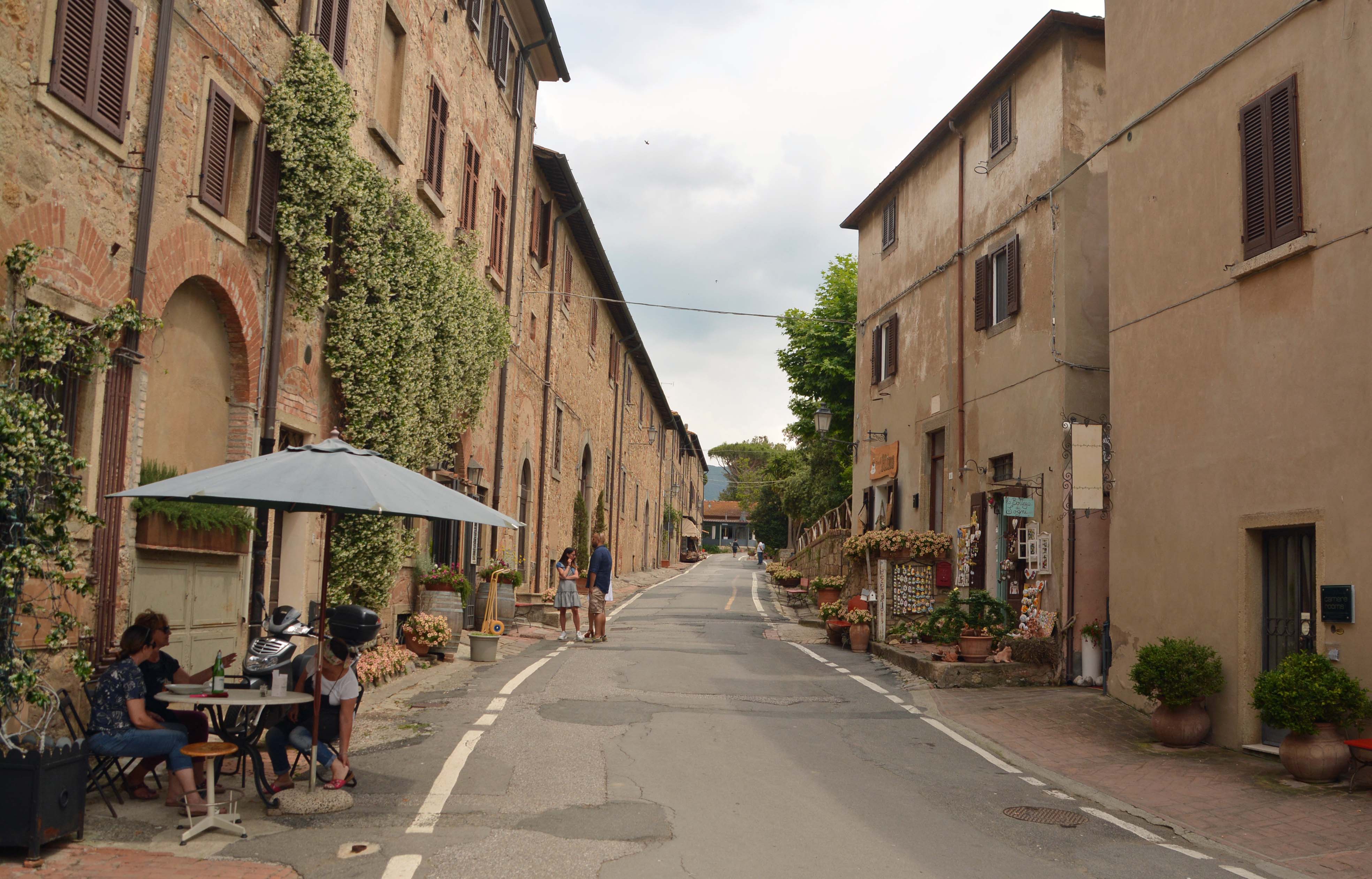 Auf der Fahrt nach Bibbona und der holprigen Via Aurelia blechen wir zweimal 60 Cent Autobahn-Gebühren. Bibbona liegt südlich des Val Cecina. Unterhalb des mittelalterlichen Stadtkerns finden wir einen Parkplatz für Fiete an der Chiesa di Santa Maria della Pieta. Die meisten Gebäude sind noch Baubestand des Mittelalters. Es ist herrlich ruhig hier, vereinzelte Touristen schlendern durch die kleinen Gässchen. Wir nehmen uns Zeit.