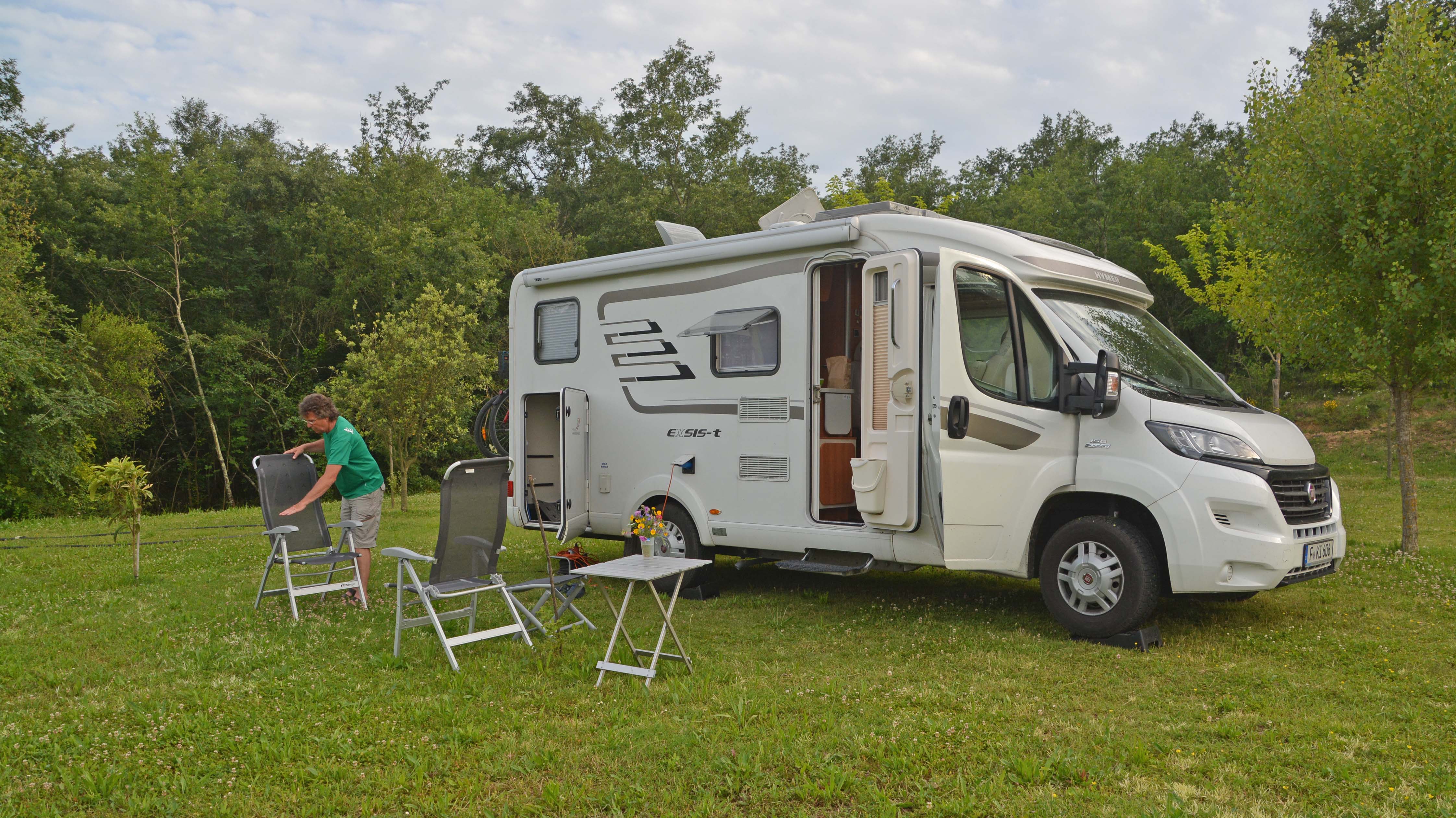Wir stehen rechtzeitig auf, um unser Frühstück auf der Womo-Terasse im Grünen und bei Vogelgezwitscher ausgiebig zu genießen. Unsere Hamburger Camping-Nachbarn verabschieden sich. Sie bleiben noch, des Wetters wegen. Leider ist es heute sehr schwül und bedeckt.