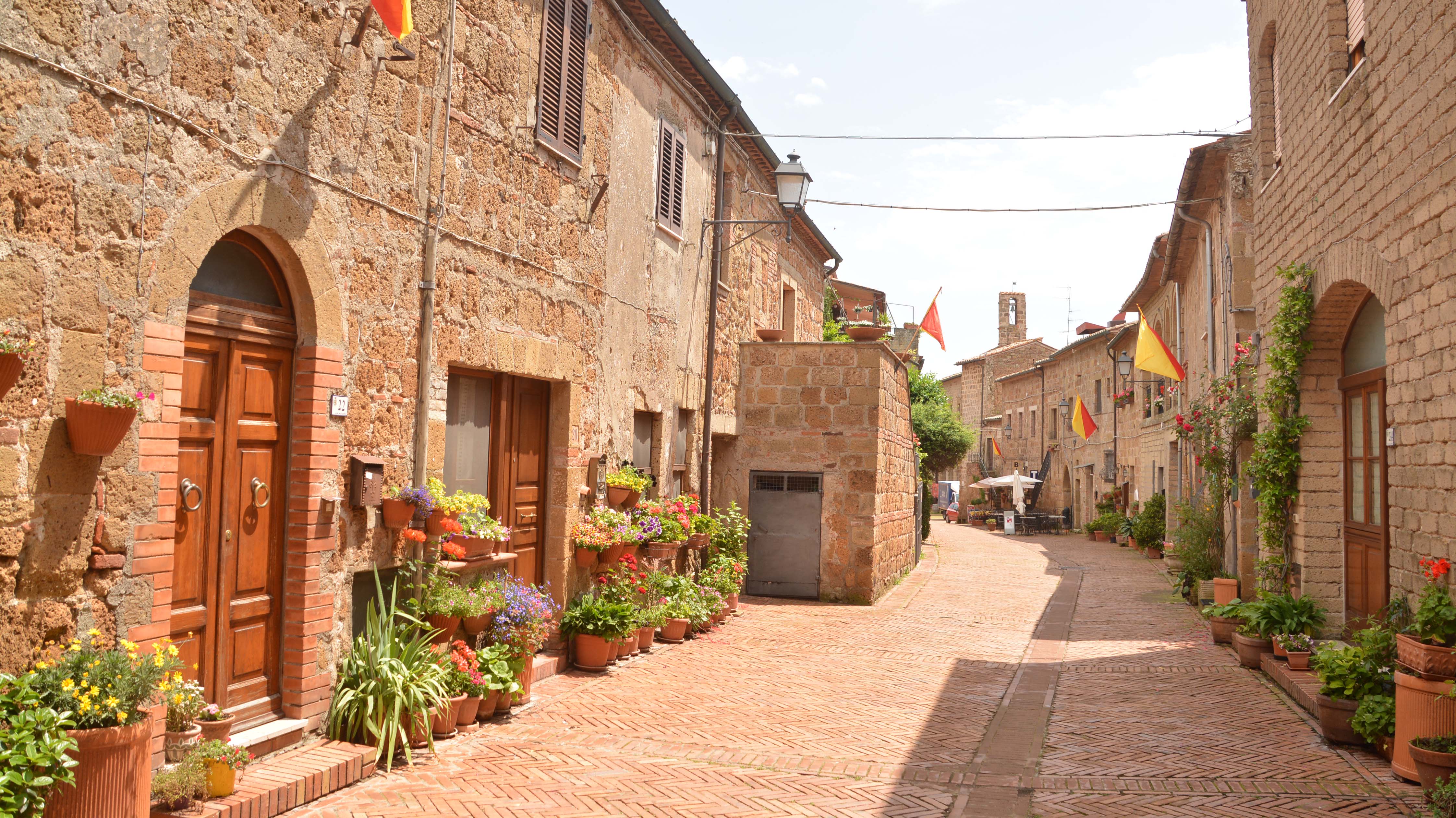 Das Wetter hält sich, teilweise scheint sogar die Sonne, was den braunen Tuffsteinhäusern einen besonderen Reiz verleiht. Der Dom St. Peter und Paul am westlichen Ende ist das bedeutendste Monument des Mittelalters in Sovana, ein seltenes Exemplar einer Kathedrale im romanisch-gotischen Stil von hohem künstlerischem Wert. Verziert ist der Dom durch dekorative Steinmetzarbeiten. An der Stelle, wo heute der Dom steht, befand sich vermutlich auch die etruskische Akropolis.