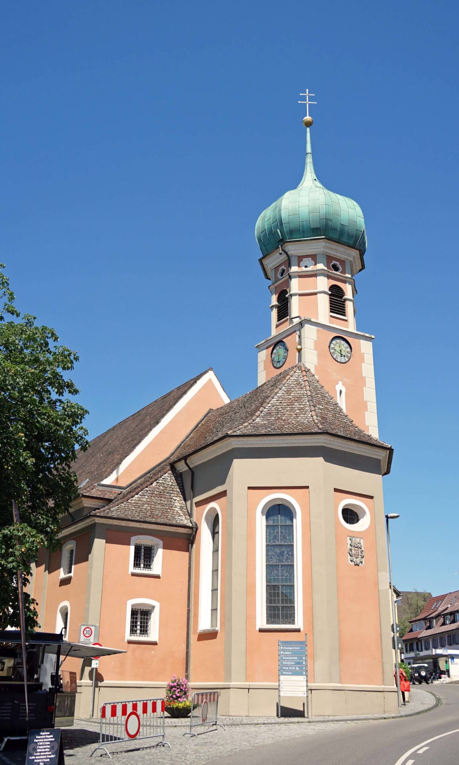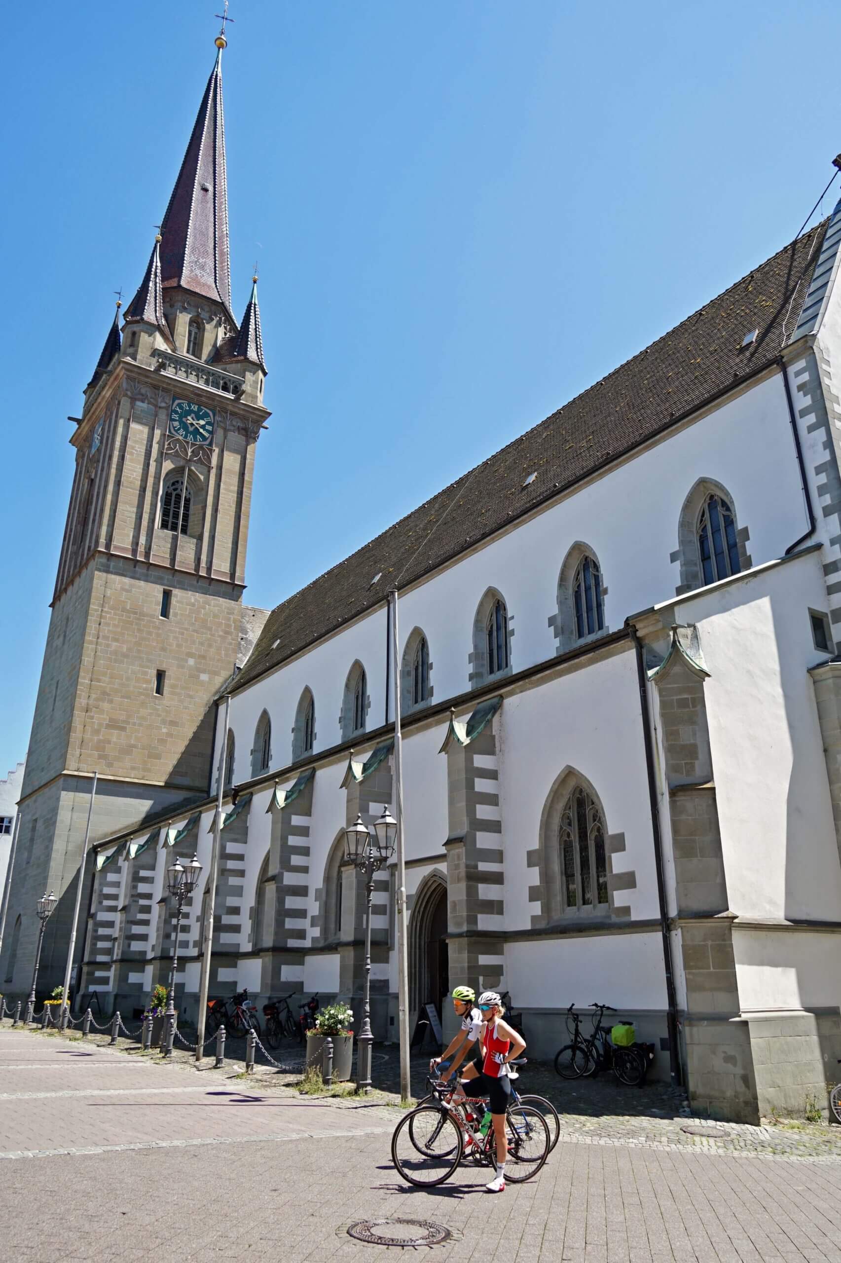 Wir wollen uns wenigstens noch das gotische ‚Münster Unserer lieben Frau‘, Wahrzeichen und Wallfahrtskirche in der Stadtmitte von Radolfzell anschauen und ein Eis essen. Für mehr reicht es leider nicht. An gleicher Stelle des Münsters stand früher die ‚Cella Ratoldi‘ von Bischof Radolf aus Verona. Der Kirchturm ist der höchste am Bodensee und man soll eine herrliche Aussicht von oben haben! Ich denke nur, es MUSS ein nächstes Mal geben und stelle mir dabei vor, was ich bei diesem Superwetter gerade verpasse. Das Eis vermag mich nur eingeschränkt zu trösten.