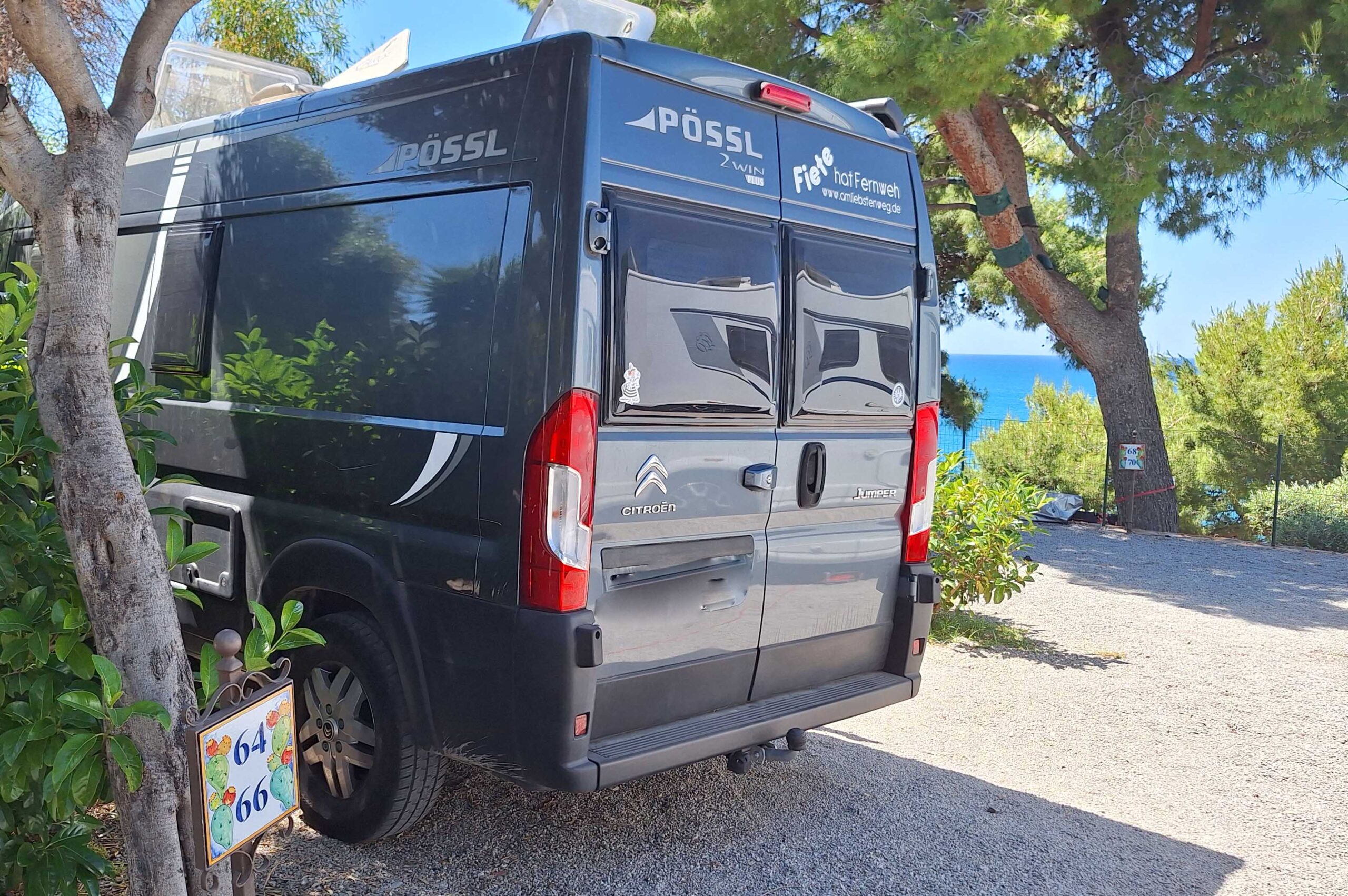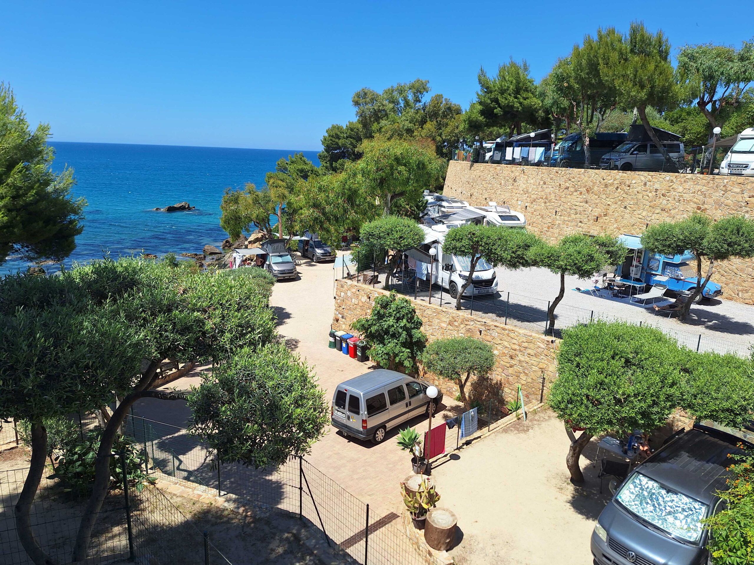 Der Campingplatz „San Filippo“ 🏕️ am Rande der Stadt ist gut ausgeschildert, ich checke ein und erhalte einen schönen halbschattigen Stellplatz mit Meerblick. Nach einer kurzen