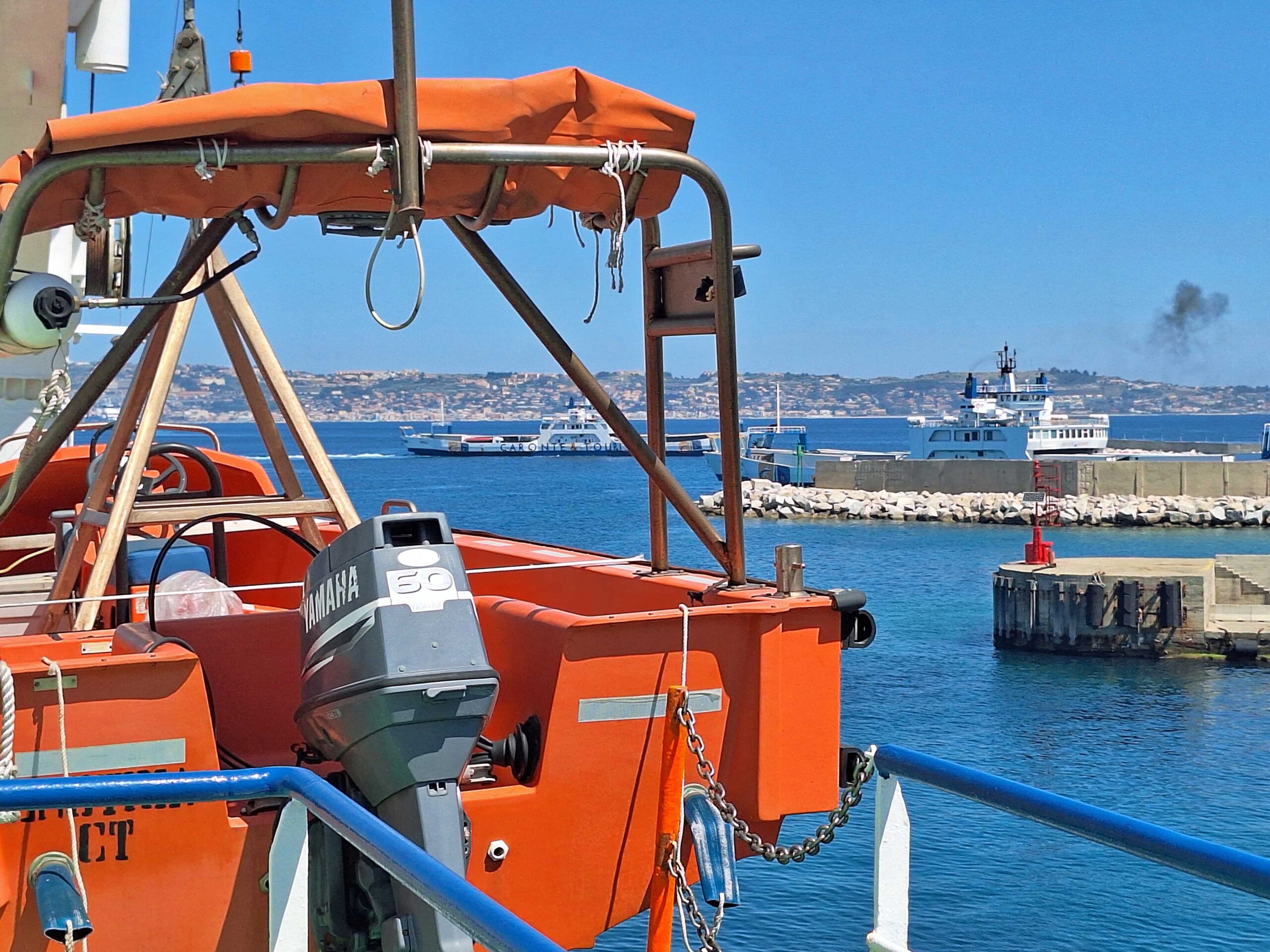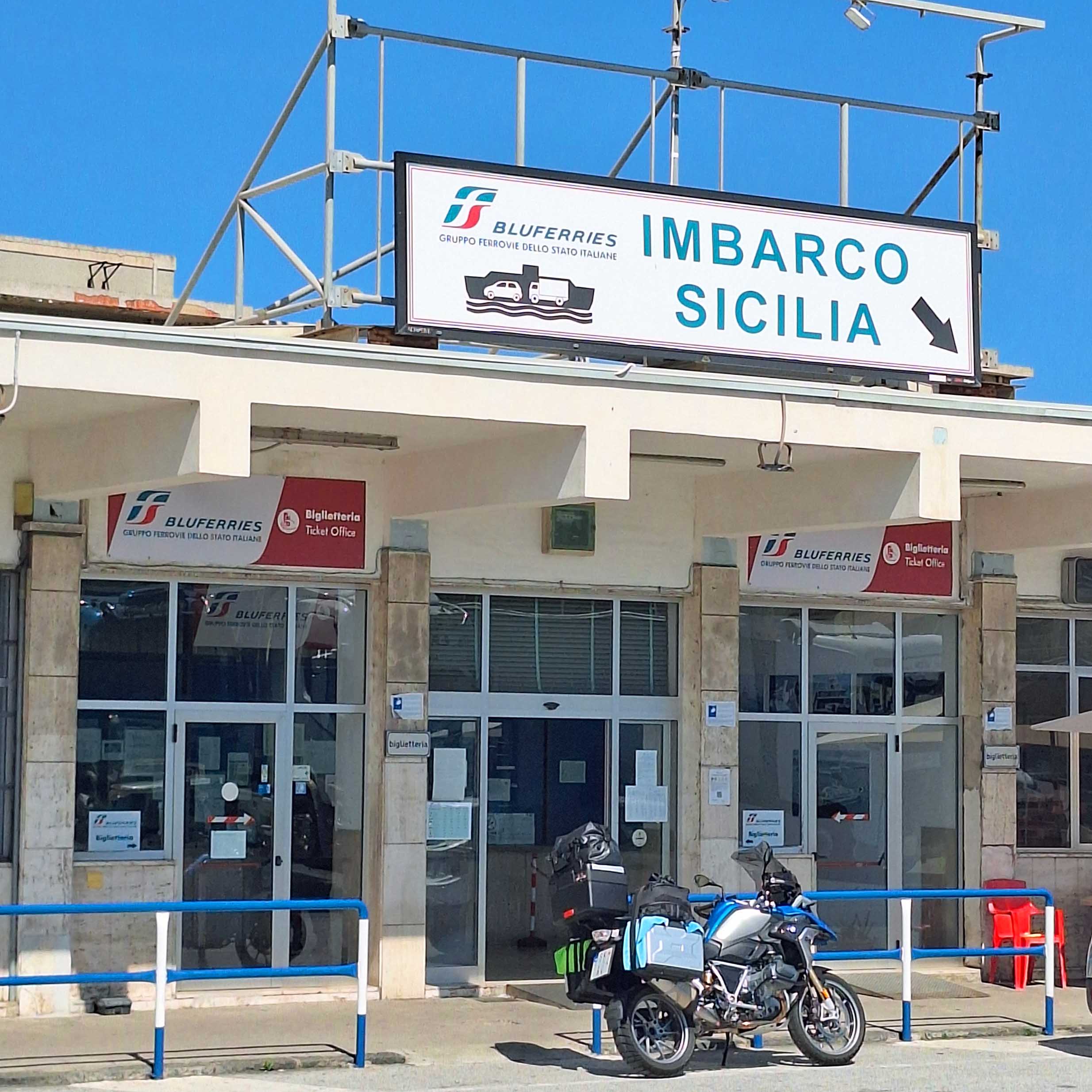 10 Uhr am Fährhafen von Villa San Giovanni. Dieses Mal kostet die Überfahrt nach Sizilien nur 46 statt 60 Euro. 😊 Der Grund: die Fähre ist kleiner und nicht so exklusiv wie die auf der Hinfahrt. Ich darf als Erste hineinfahren und nach 25 Minuten bin ich wieder