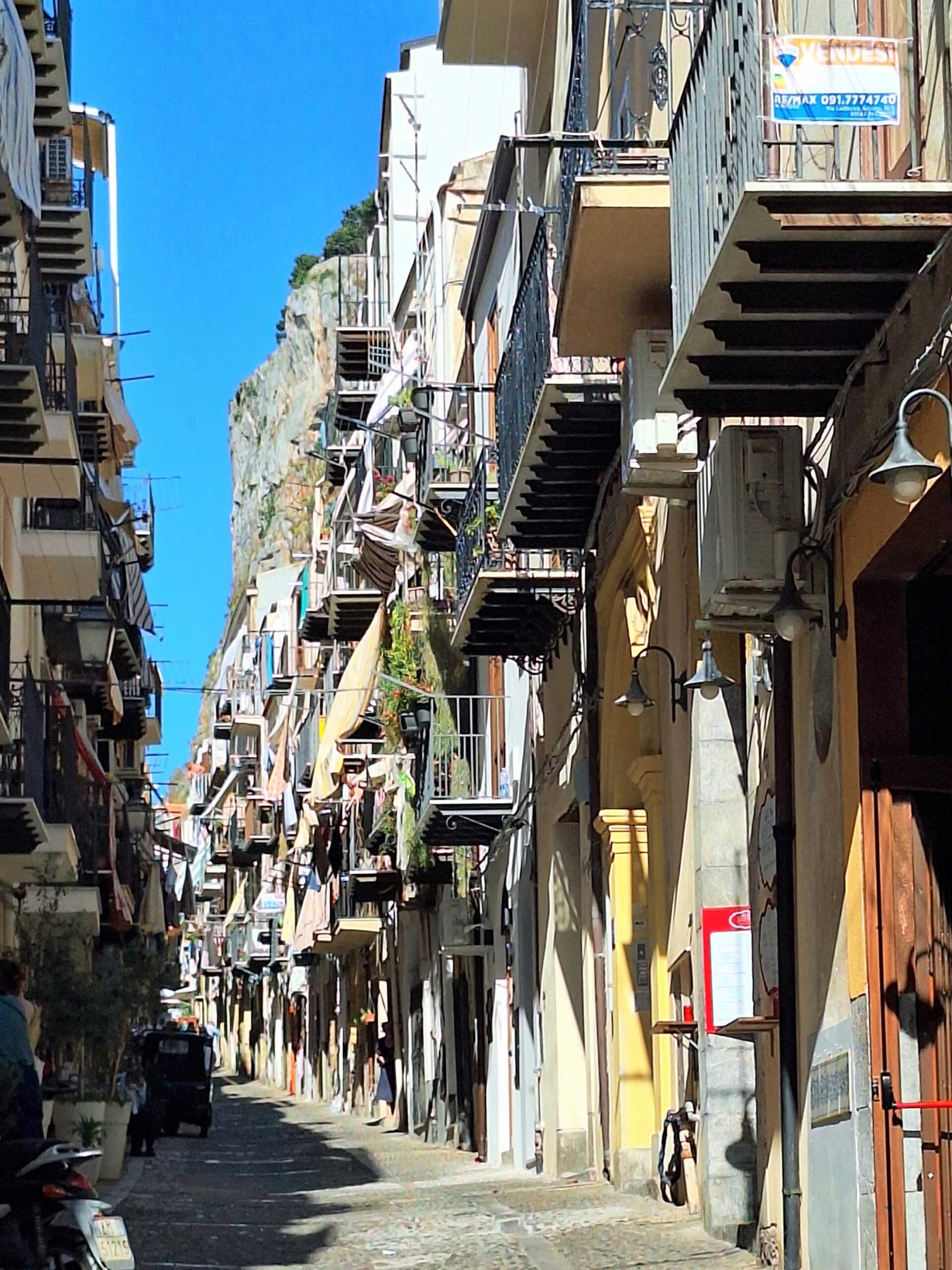 Das Städtchen unterhalb eines 270 Meter hohen Muschelkalk-Felsens „Rocca di Cefalù“ ist bei den Touris die zweitbeliebteste Stadt Siziliens – hinter Taormina. 😯 Und sie ist gigantisch schön! 🤩🤩🤩 Hinter dem Rocca liegen die Berge der Madonie. Trotz ihrer beachtlichen Touristenschwärme ist die Stadt irgendwie sie selbst geblieben und strahlt einen ganz eigenen Charme aus. 😊 Viele Häuser stammen noch aus dem 16. Jahrhundert.