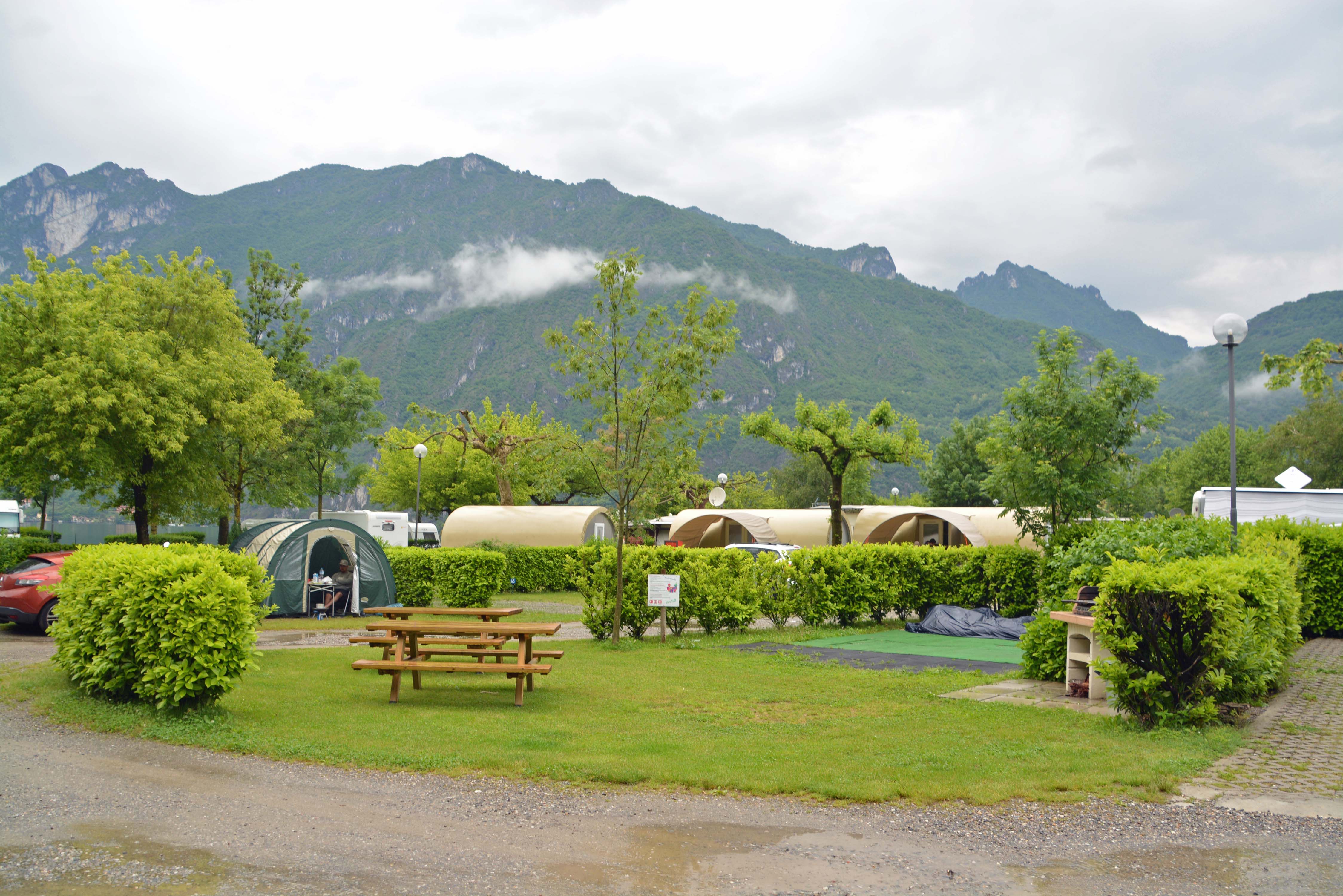 Wir kommen gut voran. Selbst die Tangenzialen um Mailand passieren wir problemlos. Sauber! Plötzlich meldet sich unsere Klarabella und meldet einen Superstau wegen eines Unfalls. Der soll uns eine ¾ Stunde Wartezeit einbringen. Ok Klarabella, wir folgen Deinem Rat, fahren auf die SS 9 und tuckern hinter zahlreichen Sonntagsfahrern zum Ziel. Den Stellplatz erreichen wir zur Kaffeezeit.