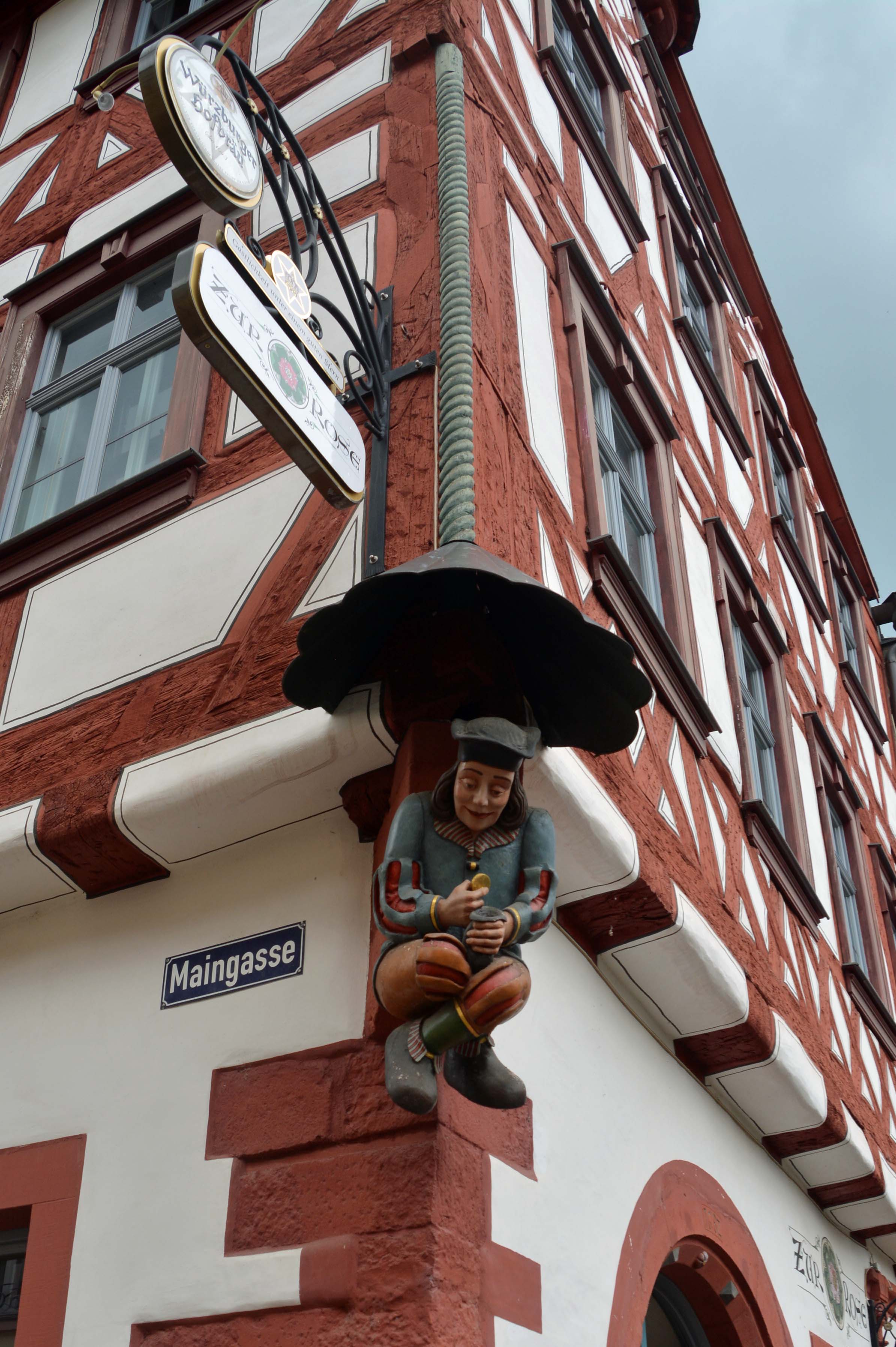 Die Meute hat Hunger, den wir im ‚Zeitlos‘ auf der Fressmeile von Karlstadt mit hervorragendem Essen stillen. Im Eiscafè schlabbern wir noch Latte, Cappu und Espresso. Karlstadt, im unterfränkischen Landkreis Main-Spessart gelegen, hat eine hübsche Altstadt (von 1200), und ist von Mauern, Türmen und Toren umgeben. Das es einmal die Stadt der Gerber, Färber, Schuster, Fischer und Kärner (Fuhrleute) war, kann man an den entsprechenden Straßen- und Gassen-Namen erkennen.