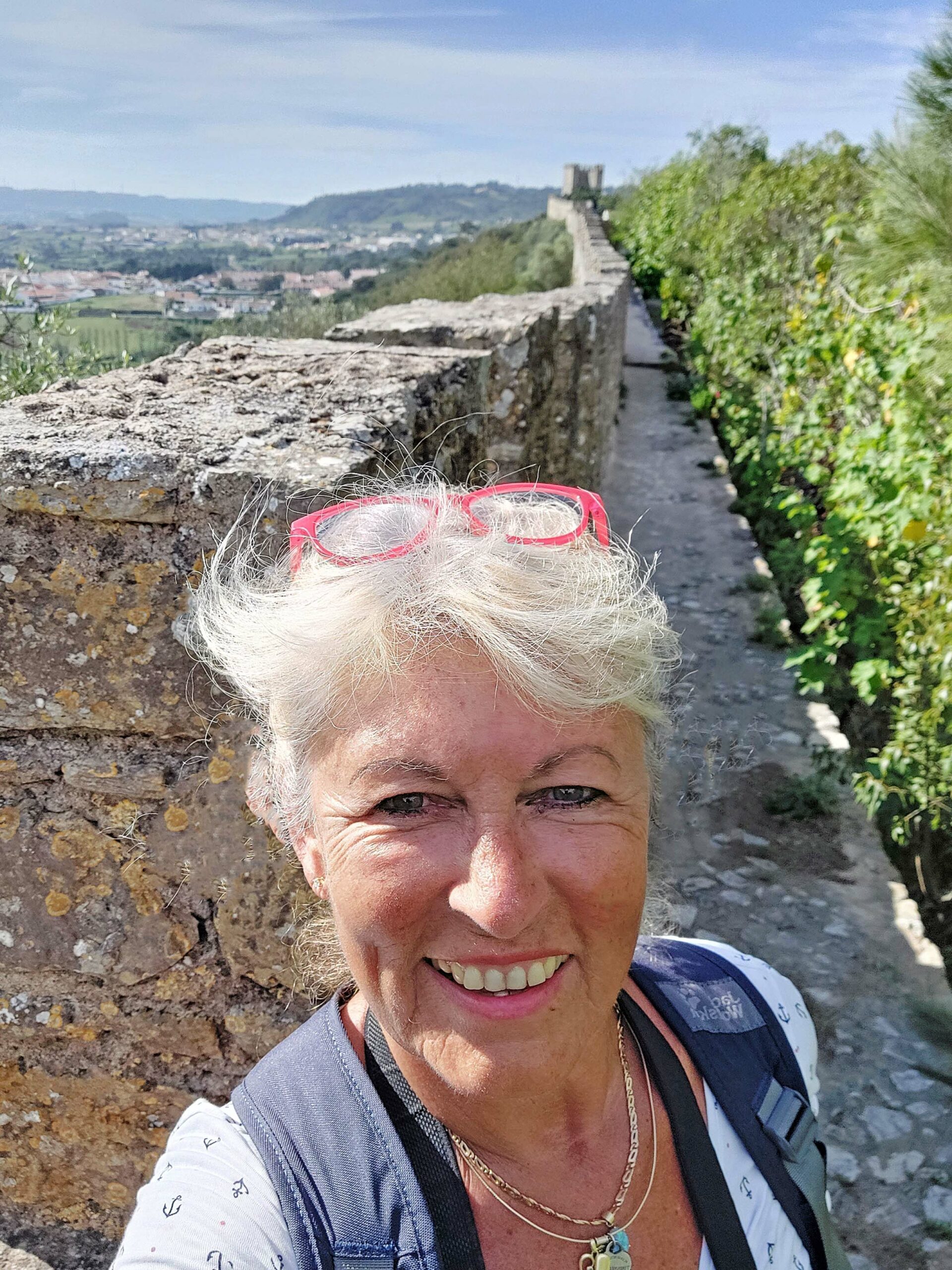 Zum Ende des Tages besuche ich noch Óbidos. Der Ort ist wahrscheinlich die meist besuchte historische Kleinstadt Portugals, denn hier wimmelt es von Touristen. Alle – ebenso wie ich – möchten die weiß getünchten Häuser, die engen Gassen und das Castelo bestaunen, das über allem auf einem Hügel thront. Die Attraktion allerdings ist die zwei Kilometer lange vollständig intakte und begehbare Stadtmauer.