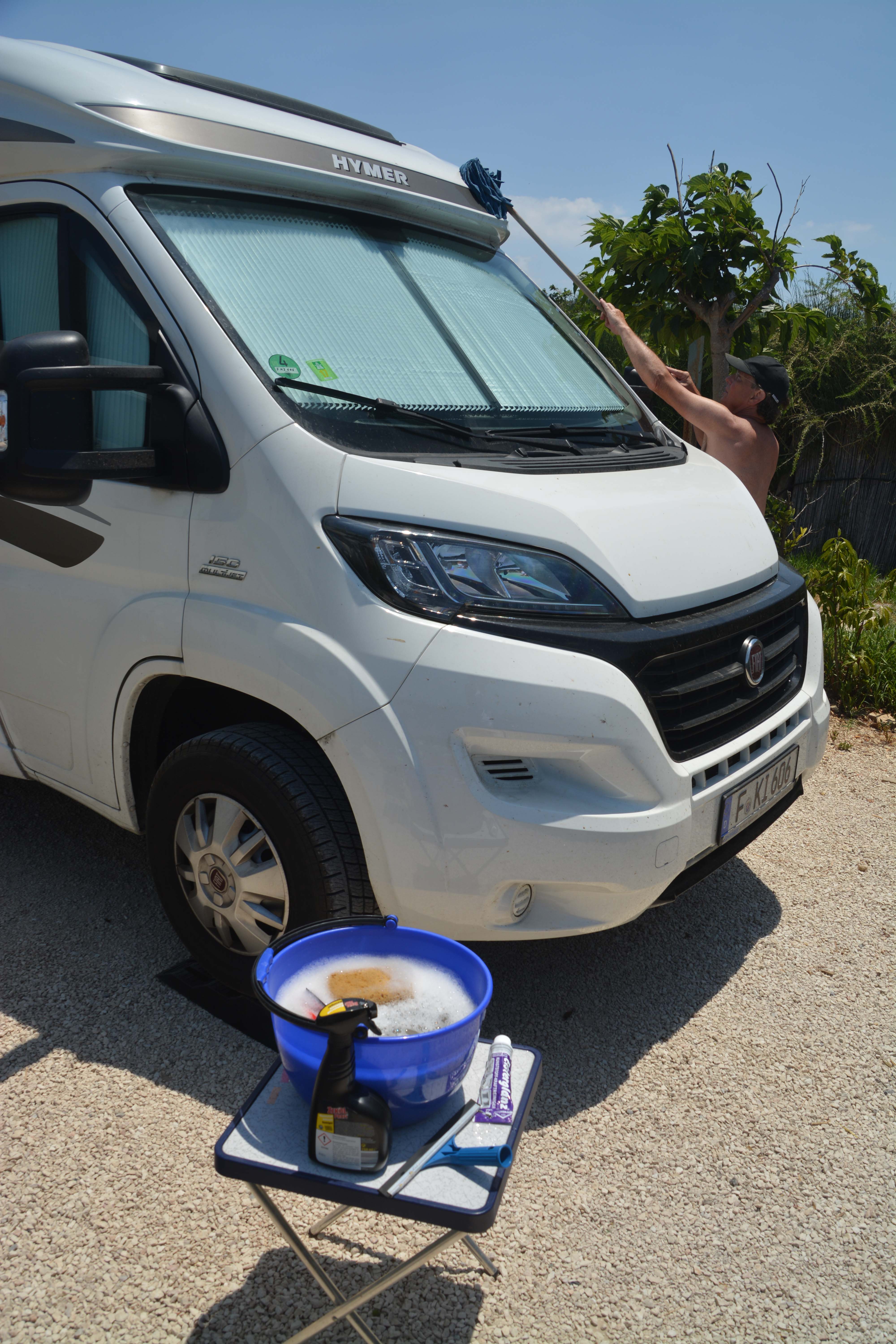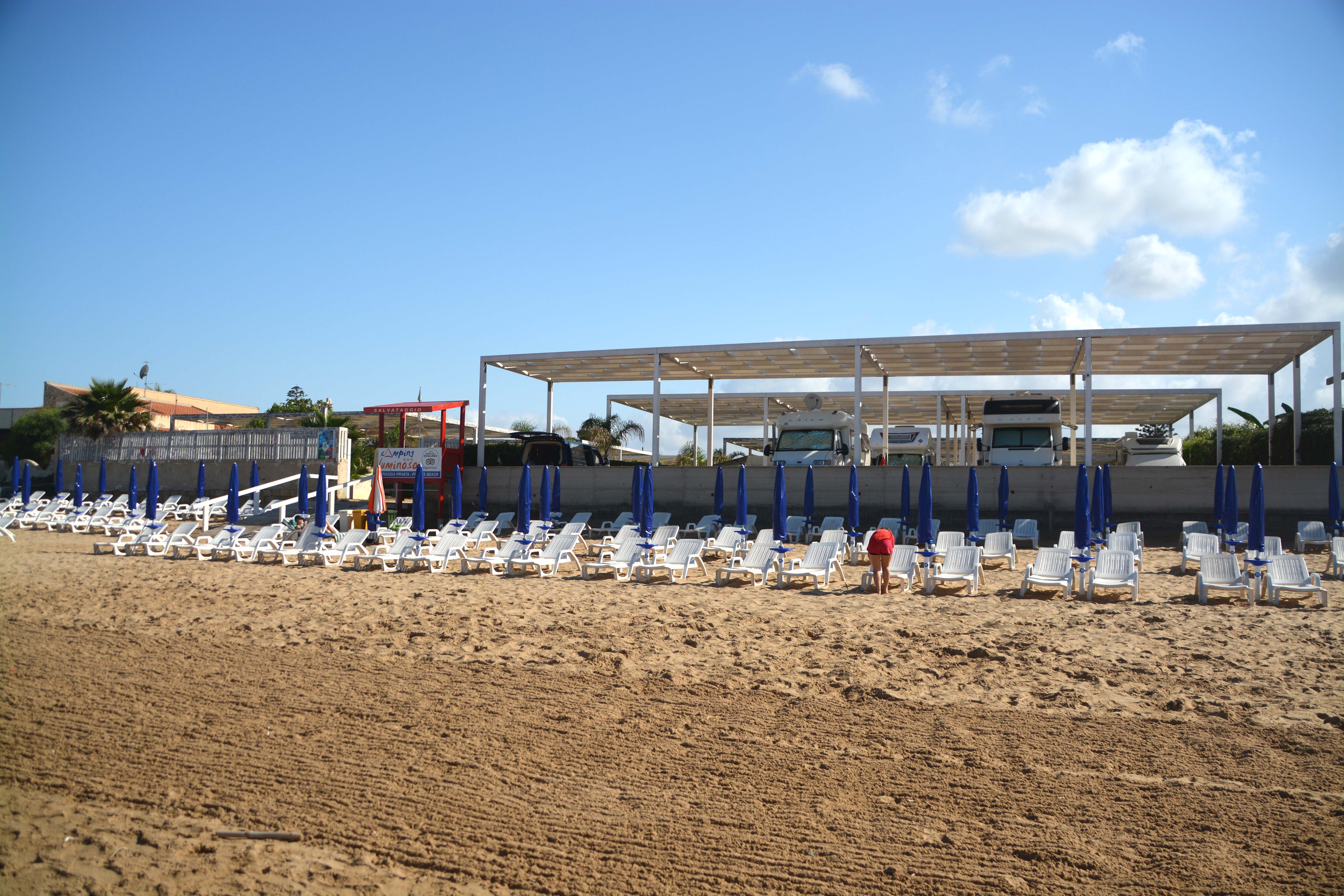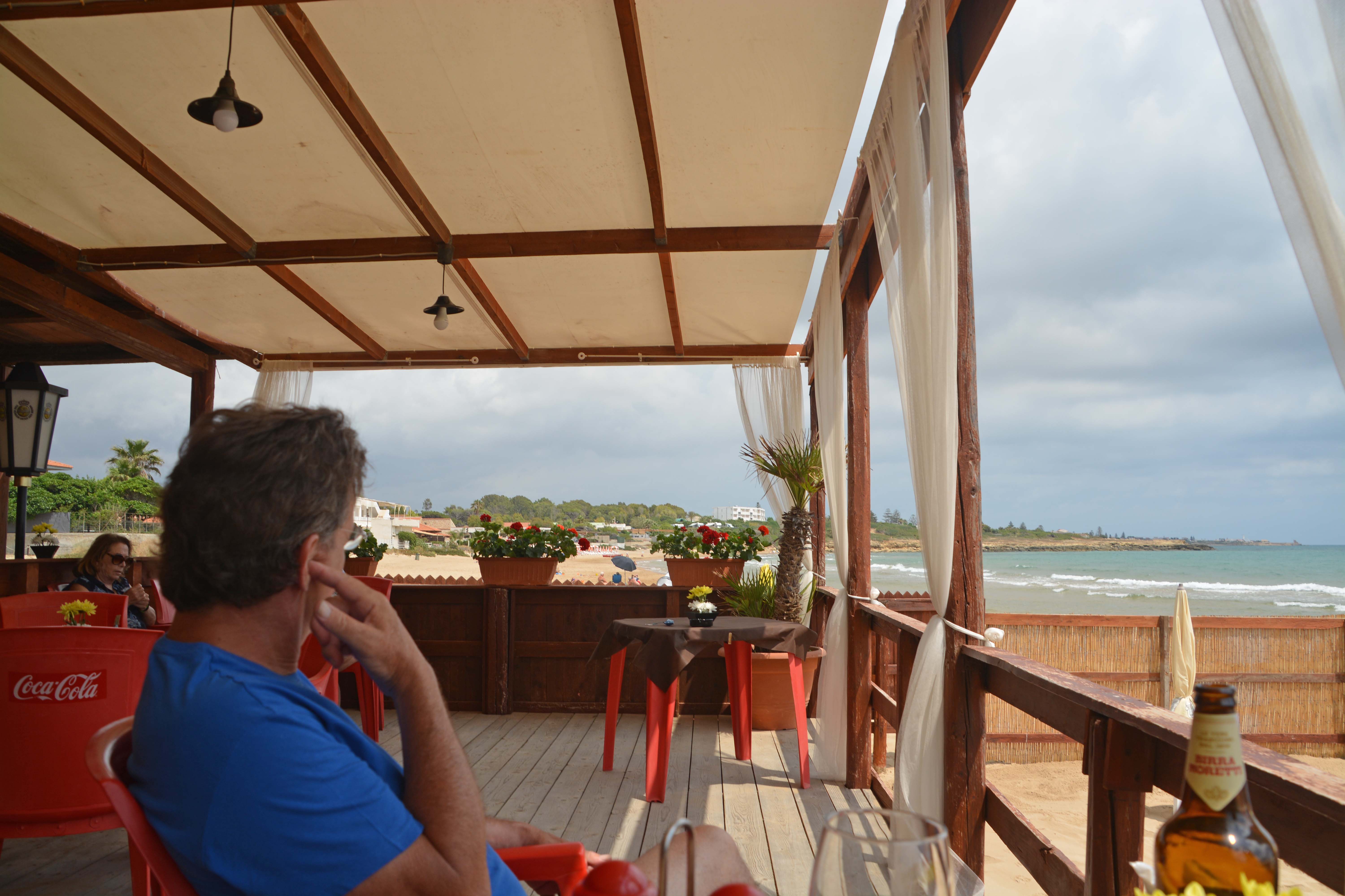 Klaus ist für’s Abbuzze zuständig. Fietes Außenhaut hat durch die Fahrten quer durch die Regionen Siziliens schwer gelitten, hat Mückenkadaver gesammelt, eine Staubschicht angesetzt und er hat seinen Glanz verloren. Stunde um Stunde wienert Klaus gemächlich alle Seiten. Immer wieder legt er ein Päuschen ein, was wir zum gemeinsamen Schwimmen nutzen. Es ist früher Nachmittag und das Wasser in der Bucht schwabbert ruhig auf und ab. Ich kühle mich ein x-tes Mal ab und mache einen kurzen Strandspaziergang Richtung Torre. Außerdem will ich wissen, wie sich der Camping Luminosa in den letzten sieben Jahren entwickelt hat. Bei meinem ersten Besuch, 2010, hatte er gerade erst eröffnet. Ich entdecke eine kleine Trattoria am Ende der Bucht.