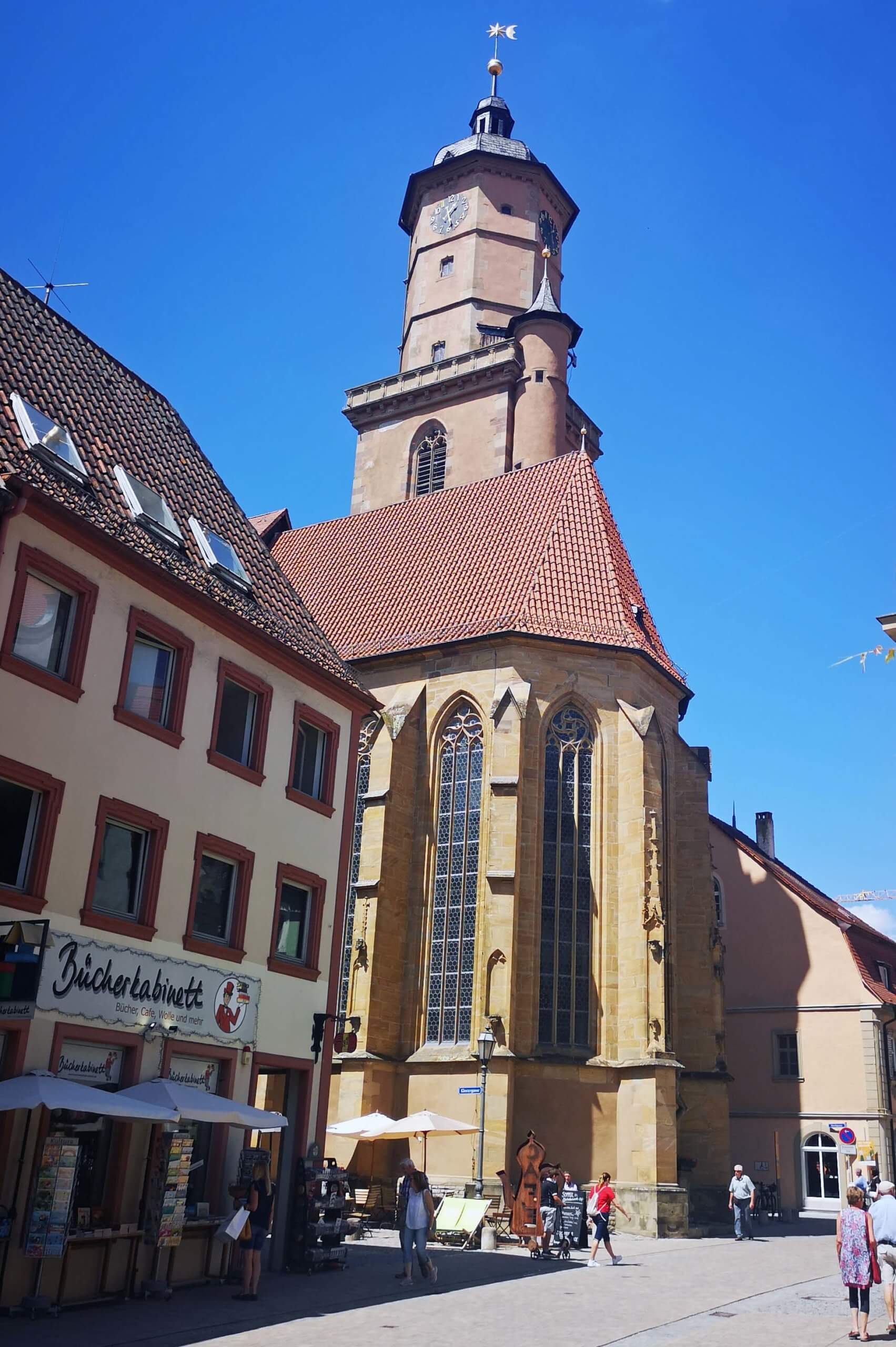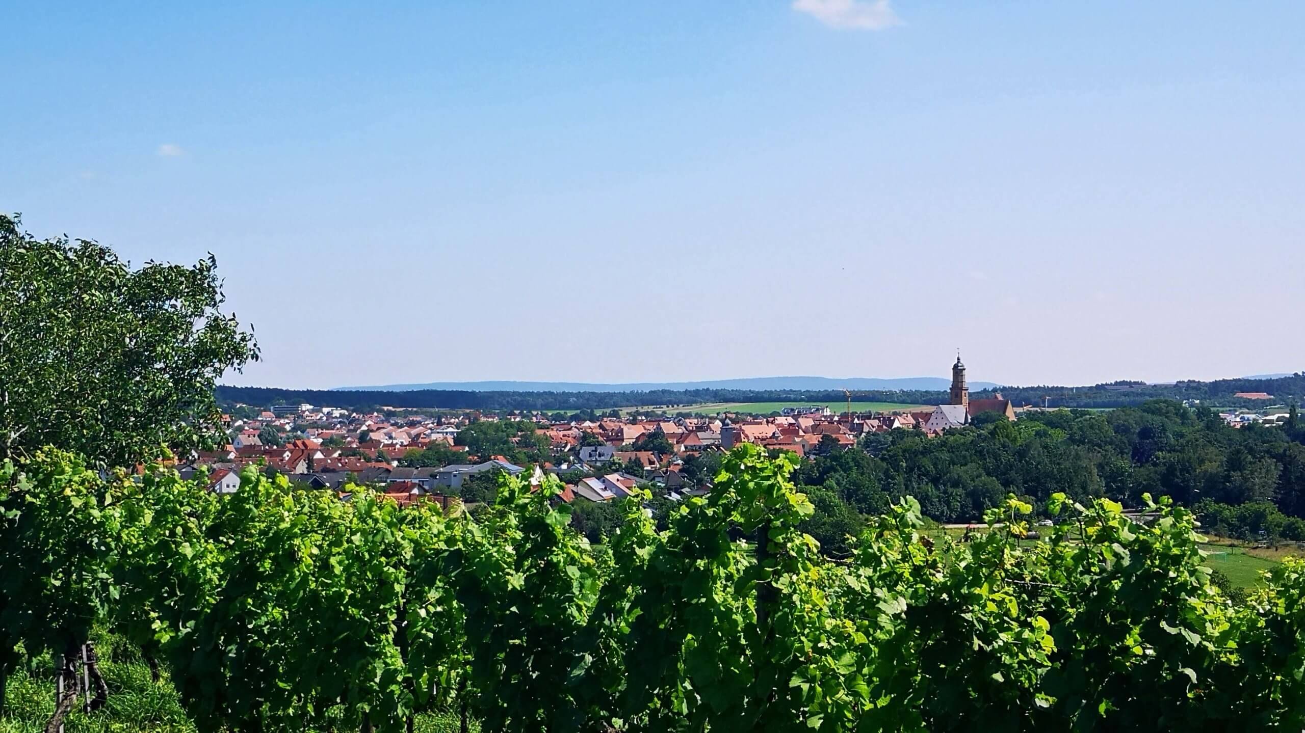 Ich schlendere durch den mit Touris bevölkerten Ort und kehre im ‚Hinterhöfchen‘ auf ein Glas Wein und eine herzhafte Leberknödelsuppe ein. Ich besuche noch die Wallfahrtskirche ‚Maria im Weingarten‘, die über Volkach thront. Hier habe ich einen fantastischen Blick über den Ort und die zahlreichen Weinberge.