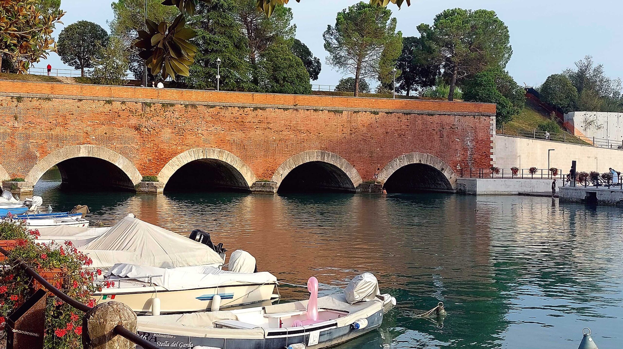 Schlendere đŸš¶â€â™€ïžnoch ein wenig herum Lungomincio mit den bunten HĂ€userzeilen, am Canale di Mezzo, an der 2.250 Meter langen Festungsmauer und bewundere die BogenbrĂŒcke Ponte die Voltoni.