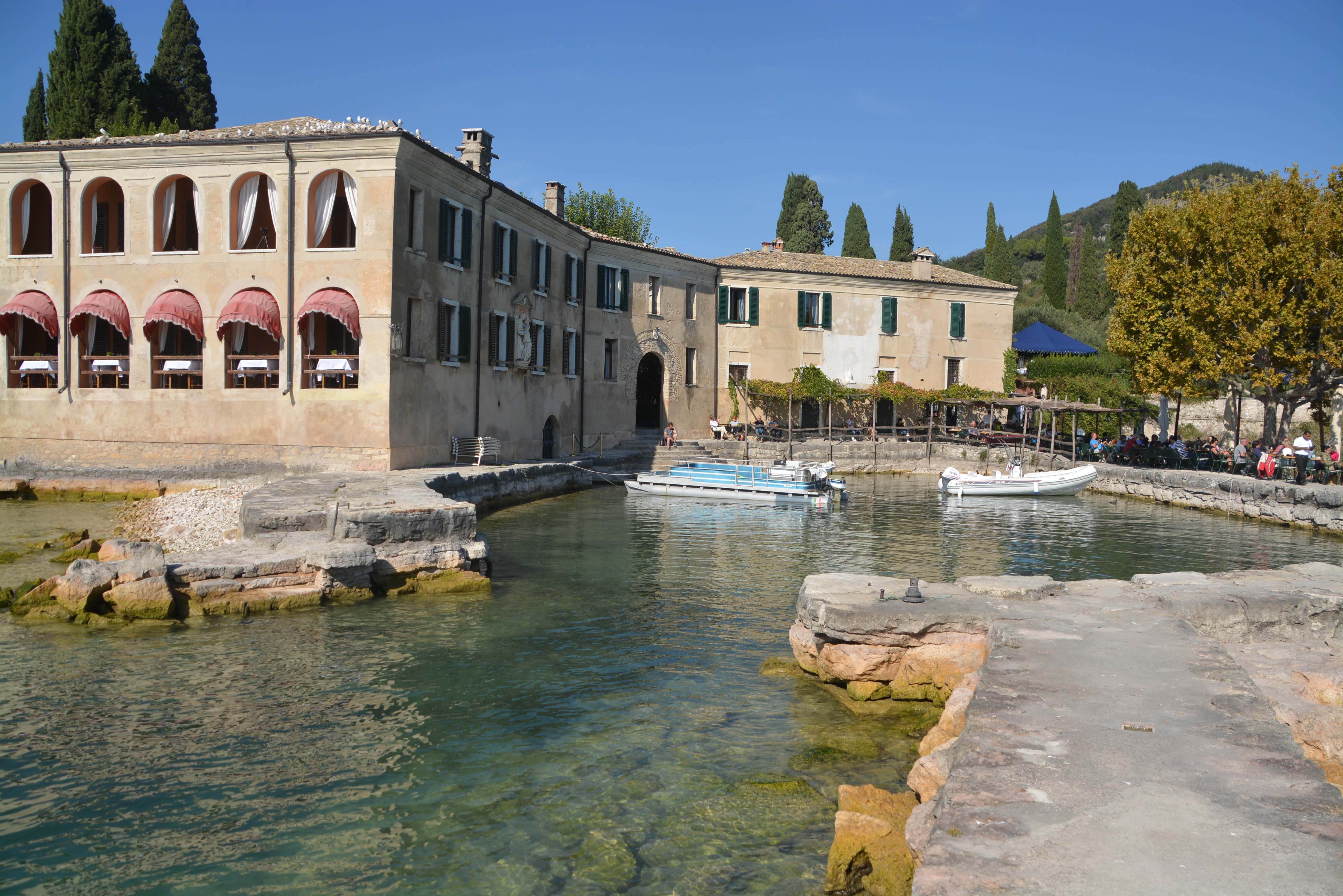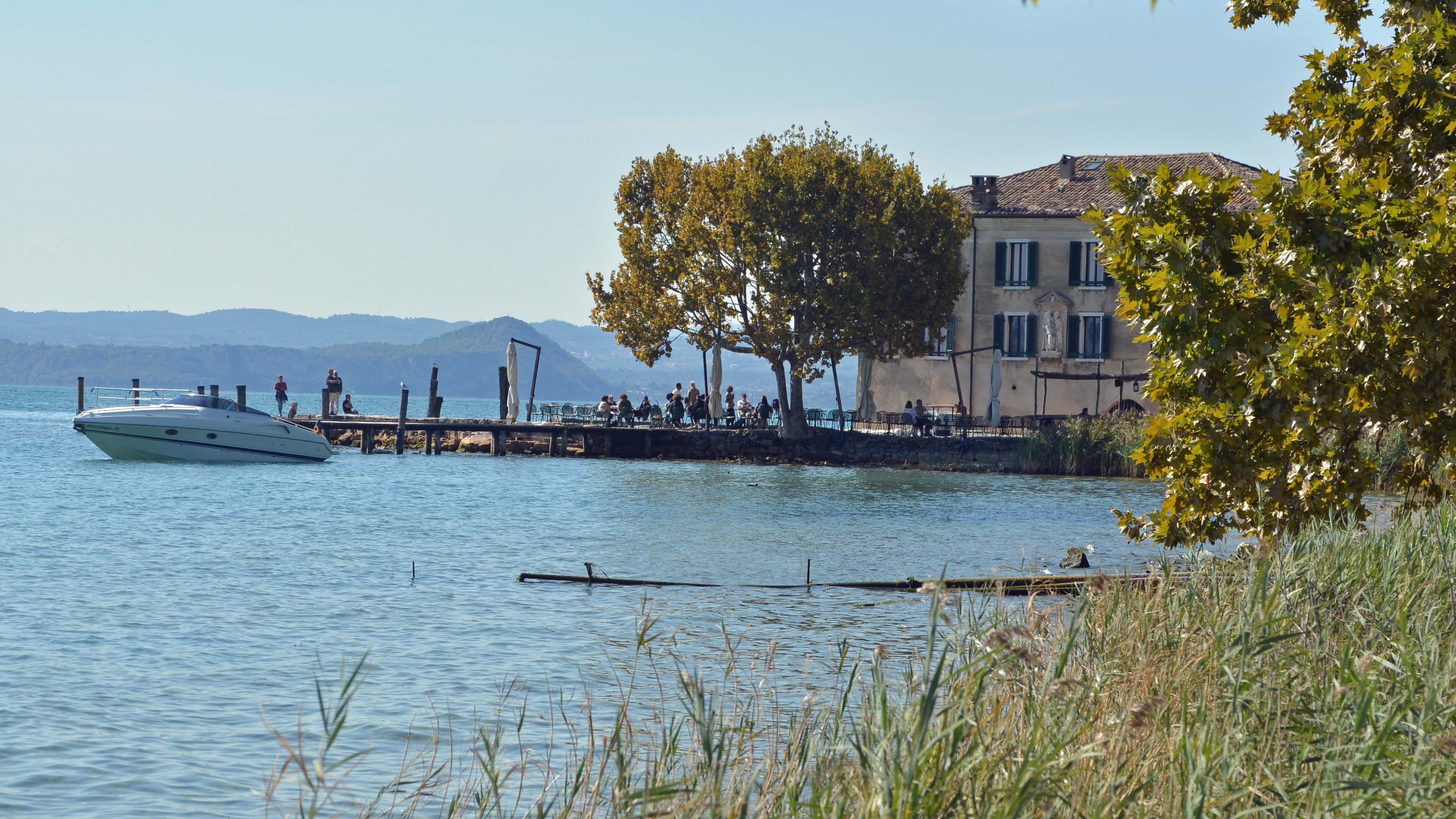 Wir unternehmen noch einen Rundgang zur Villa Guarienti di Brenzone und schlendern an der Locanda San Vigilio vorbei, wo so noble Gäste wie die Gattin Napoleons, Zar Alexander III., Winston Churchill, Prinz Charles, König Juan Carlos von Spanien, Otta Hahn mit Frau und Richard von Weizäcker genächtigt haben. Die Badebucht ‚Baia delle Sirene‘ gilt als die schönste des ganzen Sees und kostet selbstverständlich 12 € Eintritt.