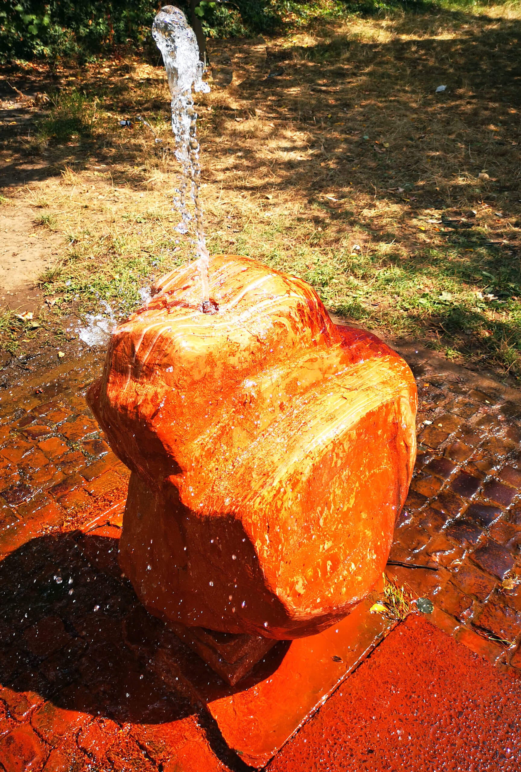 Nächster Stopp ist Rhens, und auch hier bewundere ich die fantastische Lage vom gegenüberliegenden Braubach mit der Marksburg. Das Städtchen reicht vom Ufer des Rheins bis hinauf auf die Hunsrück-Höhen. Mein Weg führt mich direkt am ‚Rhenser Mineralbrunnen‘ vorbei. Hier habe ich ein Déjà-vu. Auf der 2019-iger Radtour mit Freunden habe ich hier auch Wasser abgefüllt. Es ist heiß und die erste Getränkeflasche aus dem Rucksack schwitze ich bereits wieder aus. Ich fülle nach.