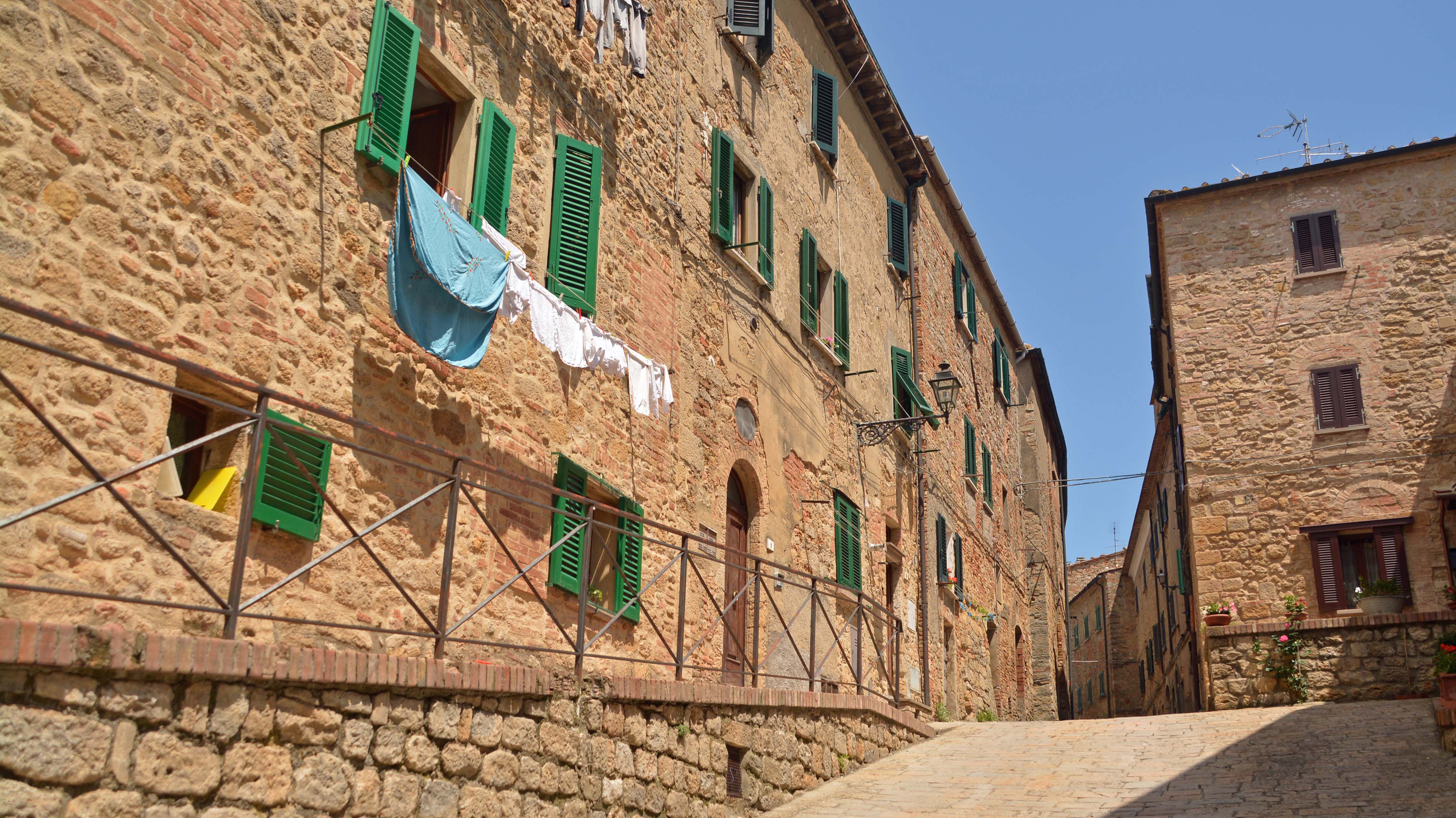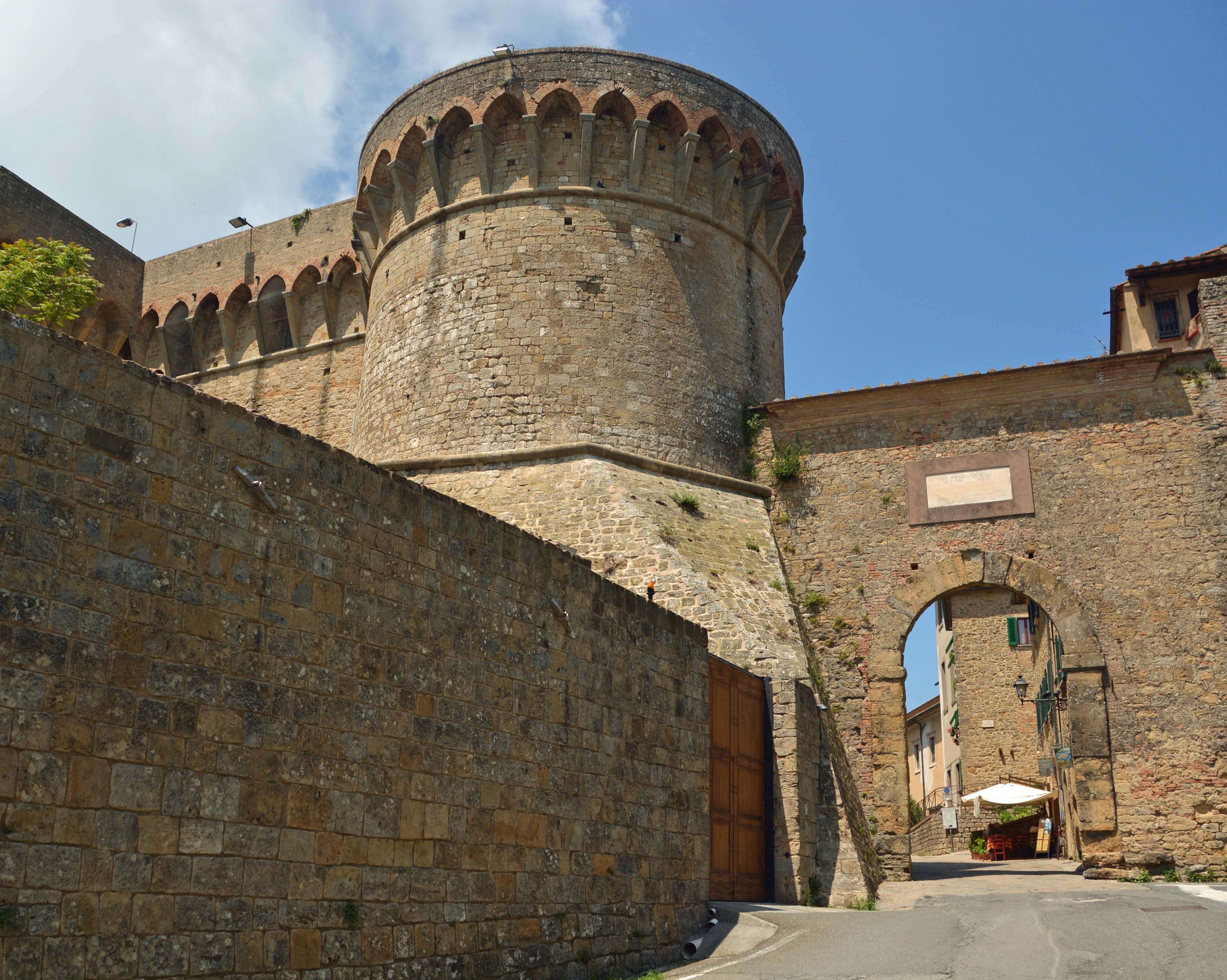 Wir parken für 3€ unterhalb der Medici-Fortezza und schleppen uns hunderte Stufen nach oben. Dort betreten wir das alte Volterra durch die Porta a Selci. Ein neugieriger Blick in die seit Jahrhunderten bis heute erhaltene Festungsanlage mit zahlreichen Warnschildern, auf denen ‚Alarmgesichert‘ steht, zeigt uns, das ist das Gefängnis der Region Livorno!