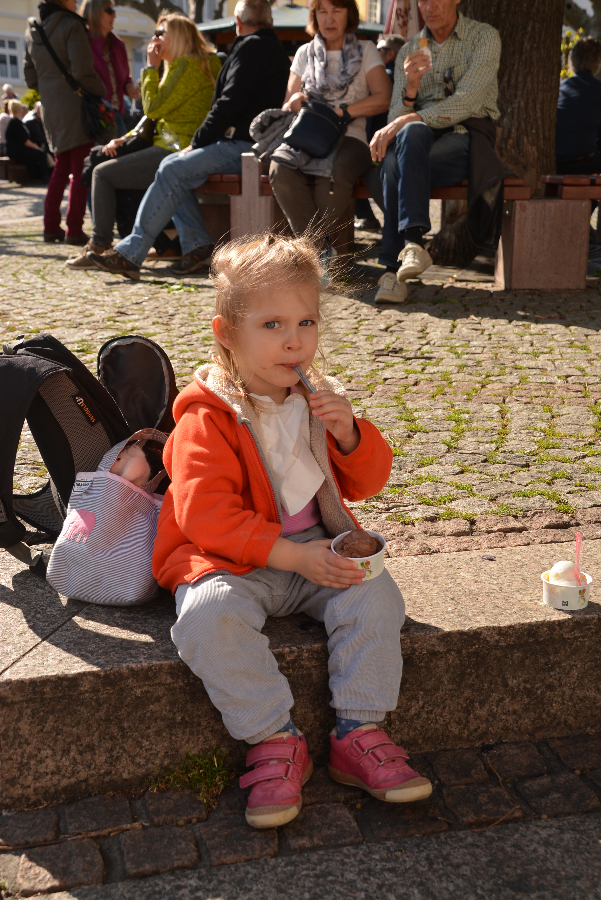Valentina entscheidet sich für ein Schokoladeneis. Unterwegs in den Gassen entdeckt die kleine Madam einen Pixibuch-Laden und wir die Seilbahnstation auf das Niederwalddenkmal für den morgigen Ausflug.