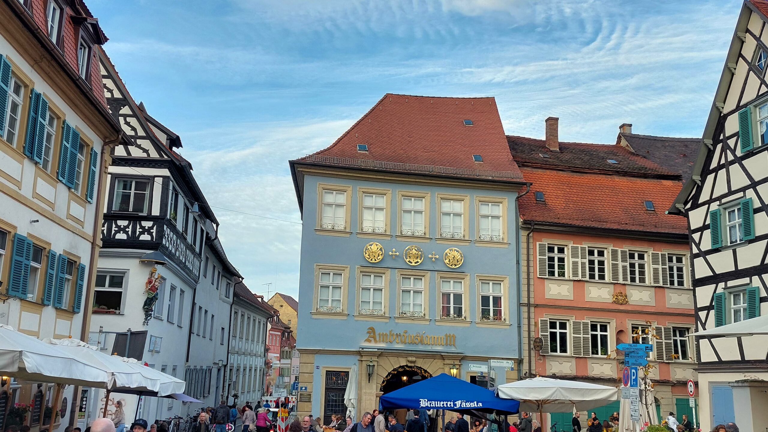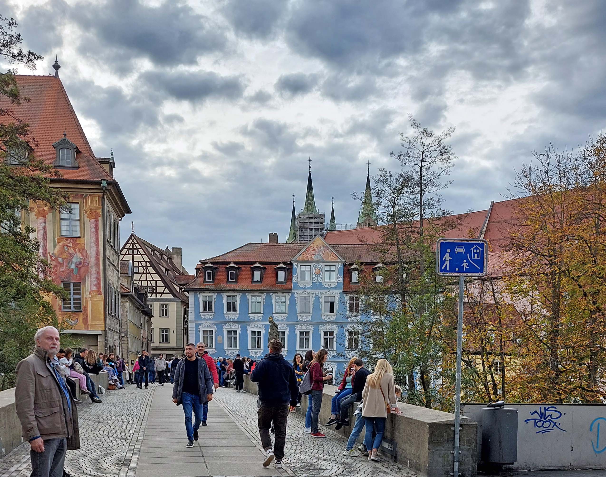 Unser Wochenende nach Bamberg beginnt mit einem Missgeschick. Unabhängig voneinander verfahren wir uns auf der Hinfahrt und kommen verspätet an. Mein vorausfahrender Camperkollege hatte das Navi nicht vom Fahrrad- auf den Automodus umgestellt! 🙈🙈🙈 Ich habe ein Déjavu, denke an eine Frauentour nach Fulda. Da ging’s uns ebenso. Deshalb bin ich still! Es kostet uns 25 Kilometer mehr auf dem Tacho! 🤭 So what!