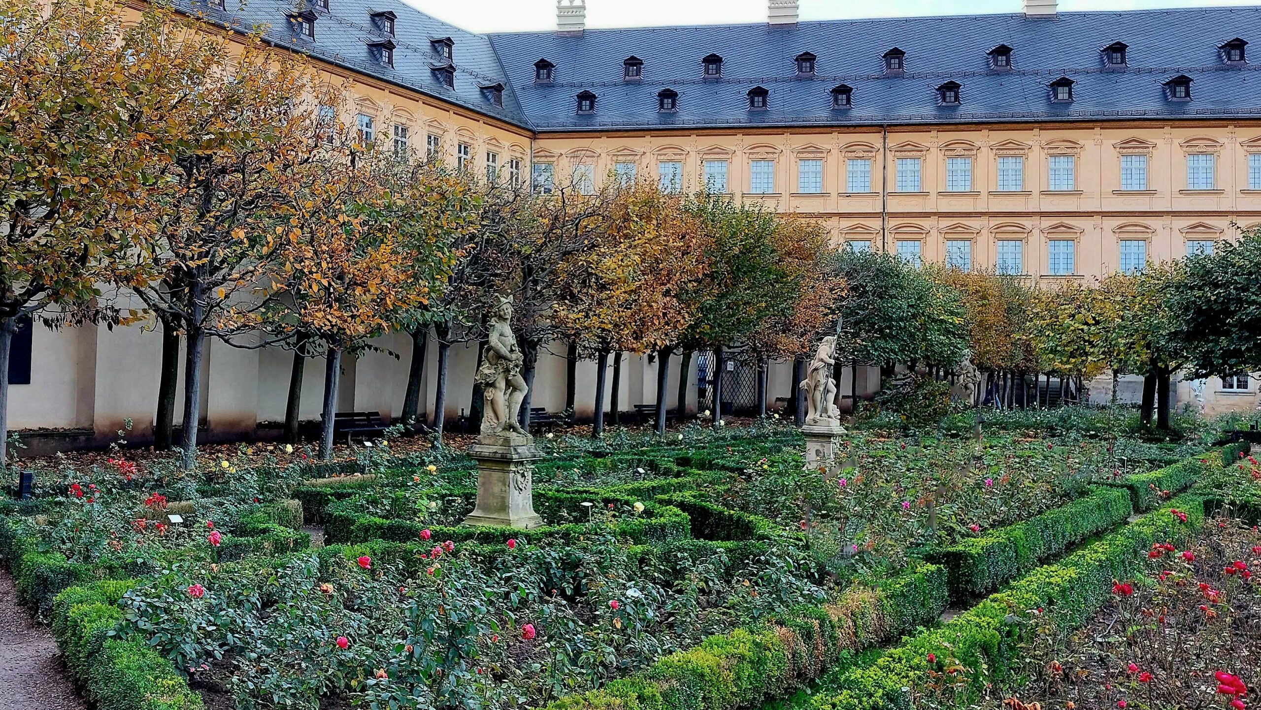 Und besonders schön ist auch der Blick vom Domberg auf die roten Dächer der Altstadt. Auf dem Domplatz hinter der Neuen Residenz befindet sich in erstklassiger Lage der „Rosengarten“ mit 4.500 verschiedenen Arten und zahlreichen Skulpturen.