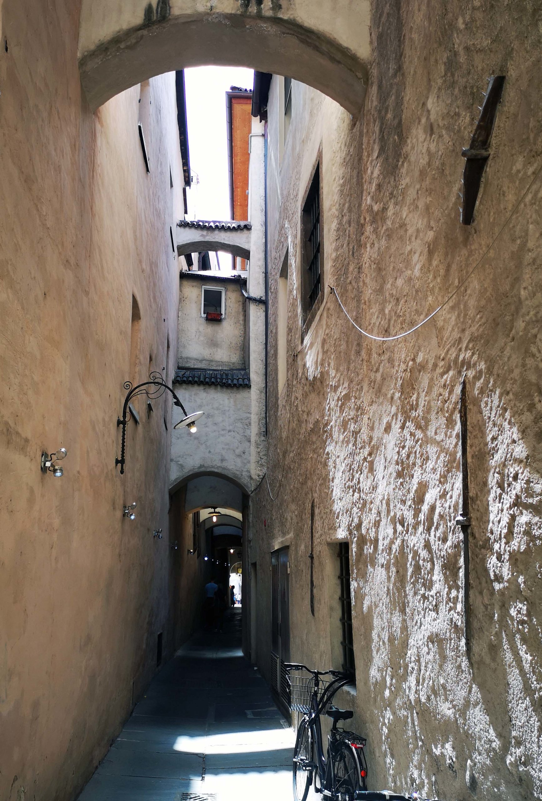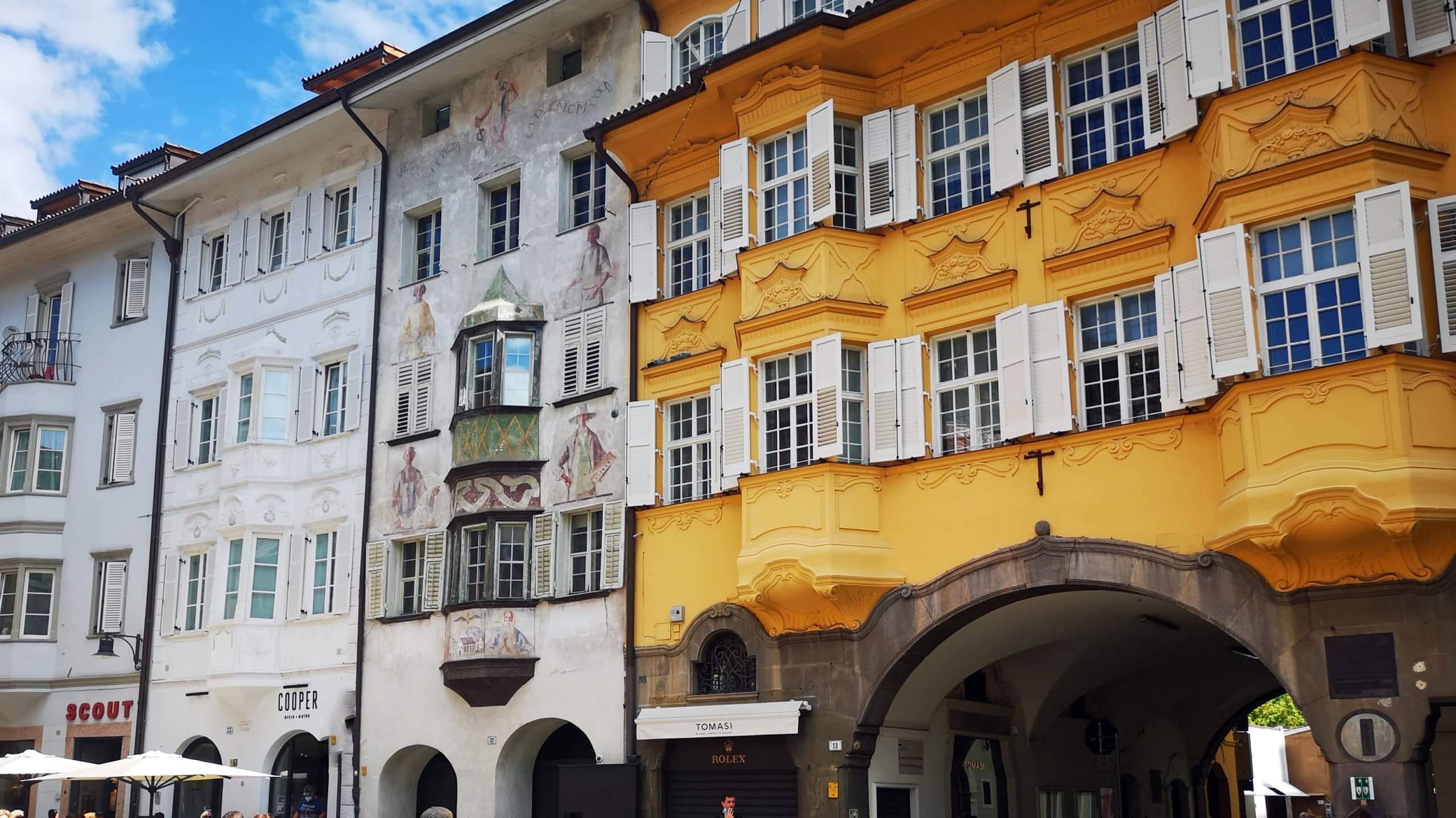 300 Meter lang ist Bozens schönstes StĂŒck, die Laubengasse. Sie ist Mittelpunkt des GeschĂ€ftslebens mit zahlreichen CafĂ©s und Bars.