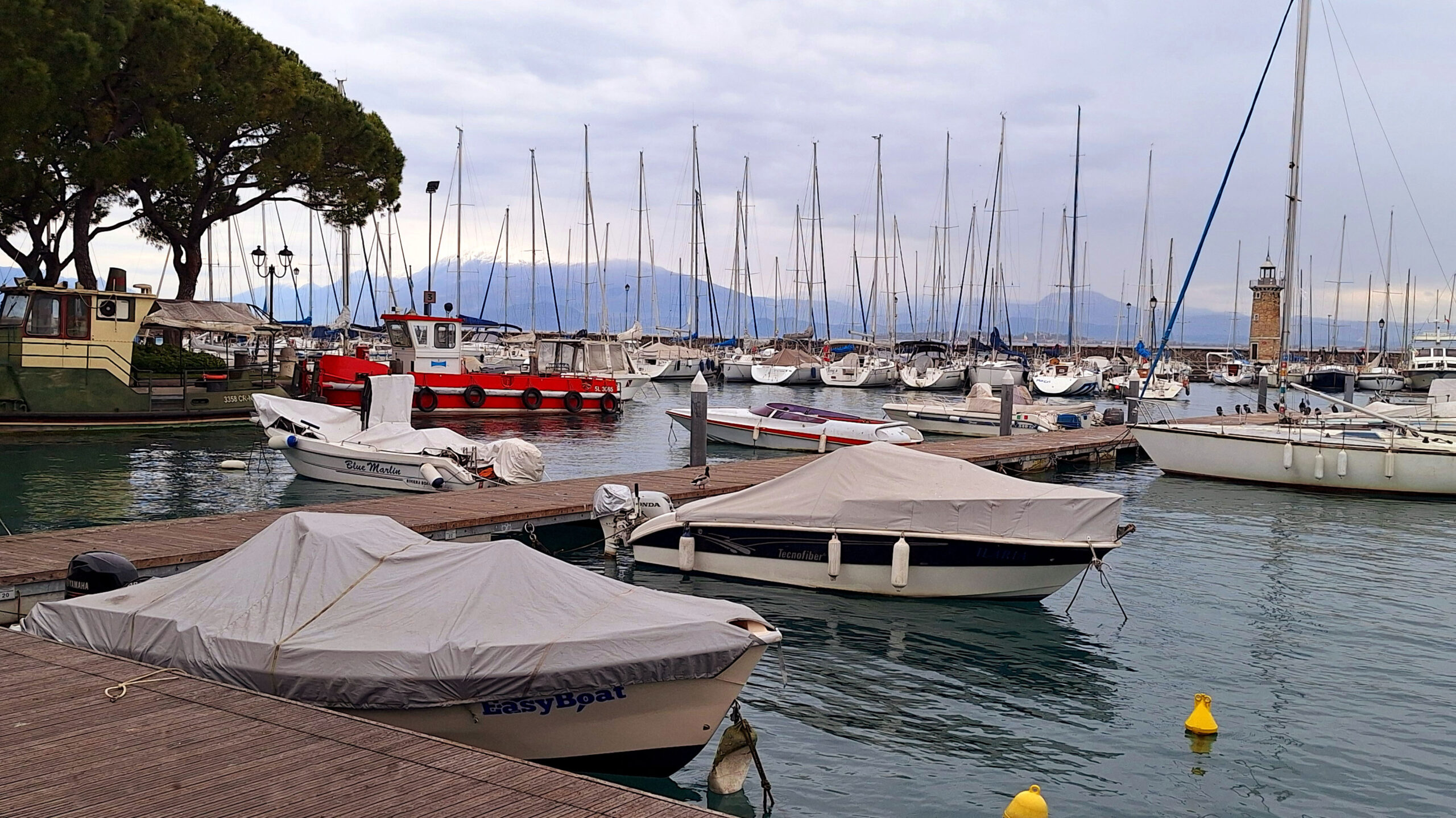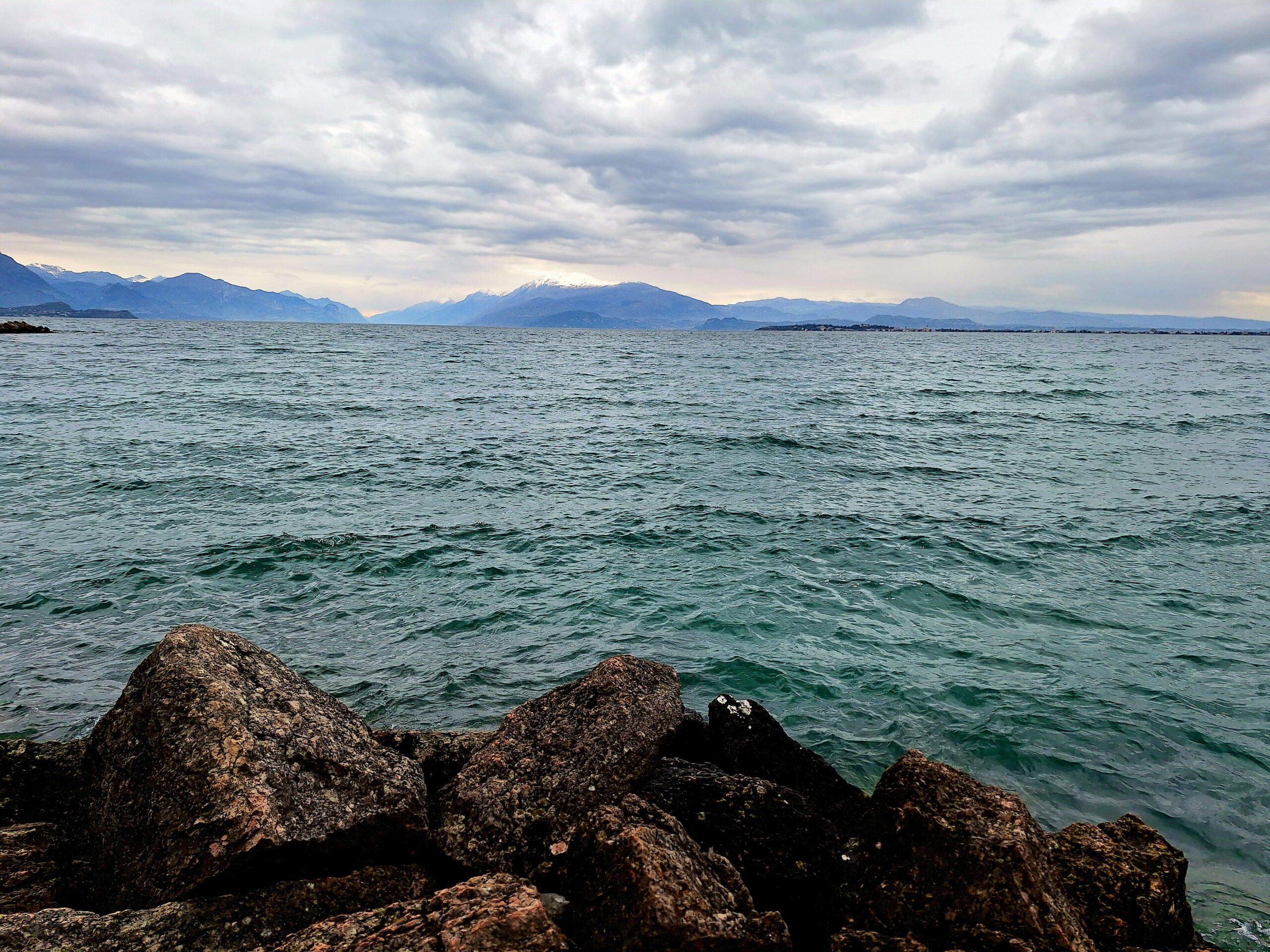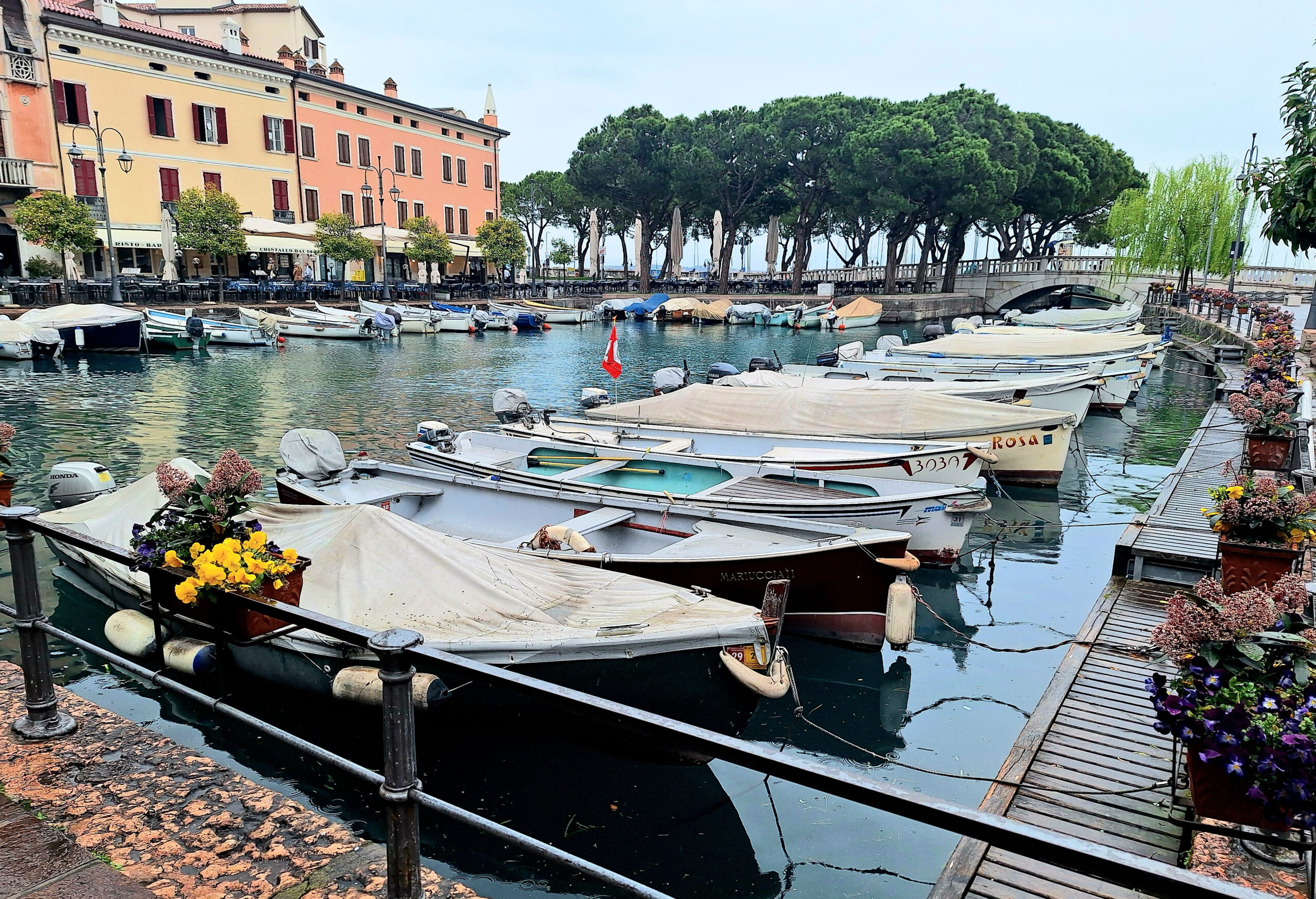 Scheißwetter! Grau in Grau und Regen. 🌧️ Passt zu meiner Erkältung, die leider hartnäckig ist.🙈🙈🙈 Ich trotze dem Wetter und fahre mit dem Rad 🚴 in die Altstadt von Desenzano.Es ist Markt an der Seepromenade Cesare Battisti, übrigens der größte am See.