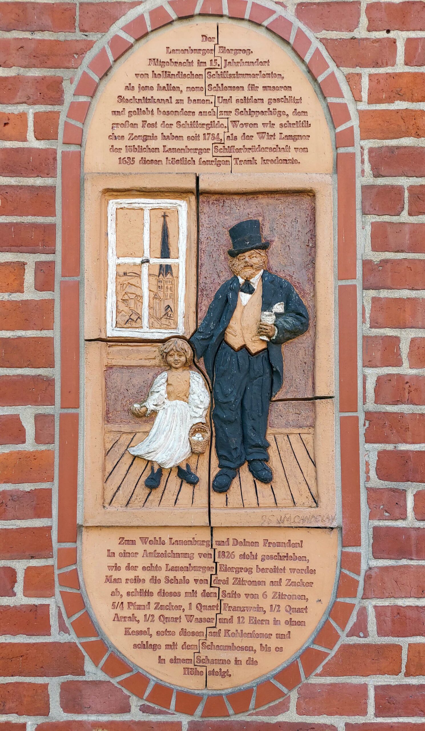 Die Statue steht da, wo früher Pilger, Soldaten und Kaufleute anlandeten. Sie ist gleichzeitig ein Zeichen der Verbundenheit mit der Elbschifffahrt 🚢 und ein Mahnmal der deutsch-deutschen Wiedervereinigung: „Macht uns den Strom wieder frei“. Kurz vor Fiete treffe ich noch auf die alte Brückenwaage und ein Original-Rezept für Eiergrog – verewigt an einem Fachwerkhaus. Die Stadt rühmt sich, den besten Eiergrog der gesamten Ostseeküste zu erzeugen. Leider muss ich Auto fahren und verkneife mir mit einem weinenden Auge den Genuss desselbigen. 🥚🥚🥚