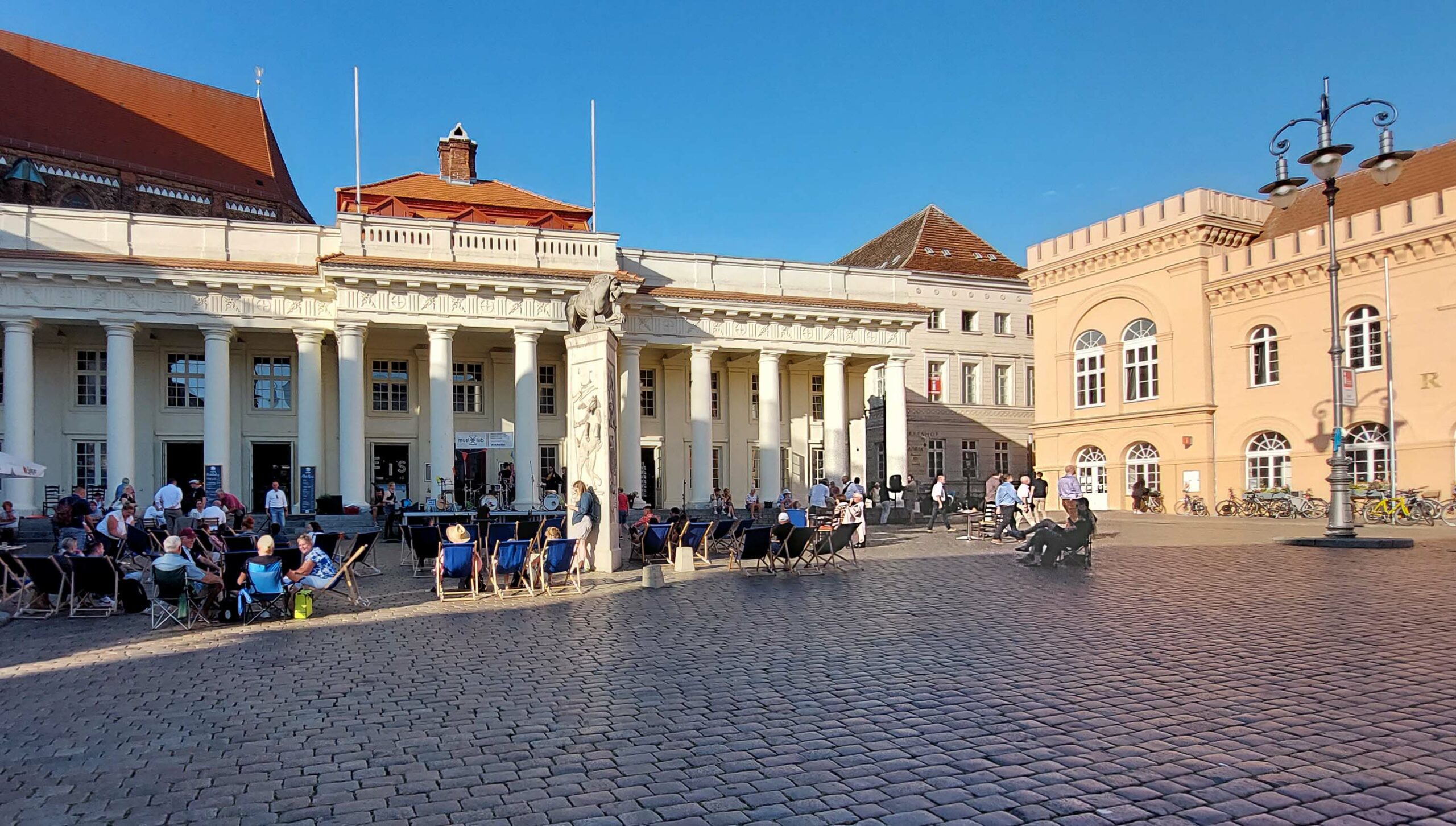 Auf dem kleinen Bummel durch die Altstadt entdecke ich den Pfaffenteich – ein kleines Binnengewässer. Seinen Namen verdankt er den Kirchenleuten, den Pfaffen. Denn der Teich war lange Zeit im Besitz der Kirche. Eine kleine Fähre von 1924 kurvt gemächlich über den Teich. Die Stadtrundfahrtbusse heißen hier „Petermännchen“. Beim Petermännchen handelt es sich um einen kleinen gutmütigen Kobold, der als Schlossgeist sein Unwesen trieb! Auf dem Marktplatz steht ein Löwendenkmal, welches dem Welfenherzog Heinrich der Löwe gewidmet ist. Er war einer der Rivalen von Kaiser Friedrich Barbarossa und mittelalterlicher Gründer der Stadt. Vor dem Säulengebäude findet gerade ein Konzert statt.