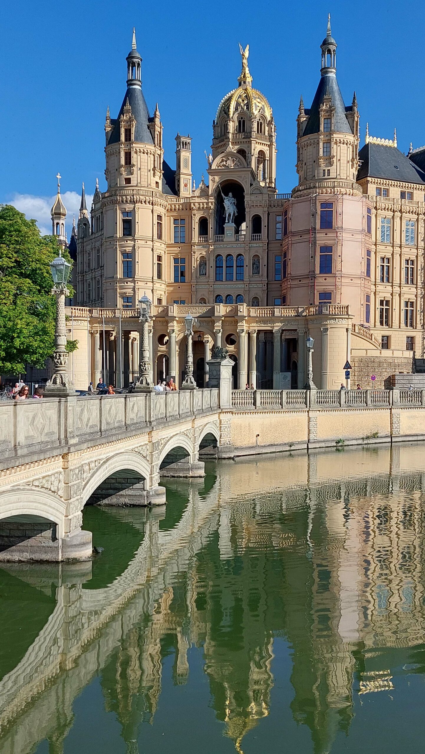 Ich starte zu meinem letzten Ziel für heute. In gut einer Stunde werde ich in der kleinsten Landeshauptstadt Deutschlands, in Schwerin, eintreffen. Schon die Anfahrt zum ehemaligen Residenzschloss ist ein Augenschmaus. Ziel ist zunächst ein sicheres Übernachtungsplätzchen.