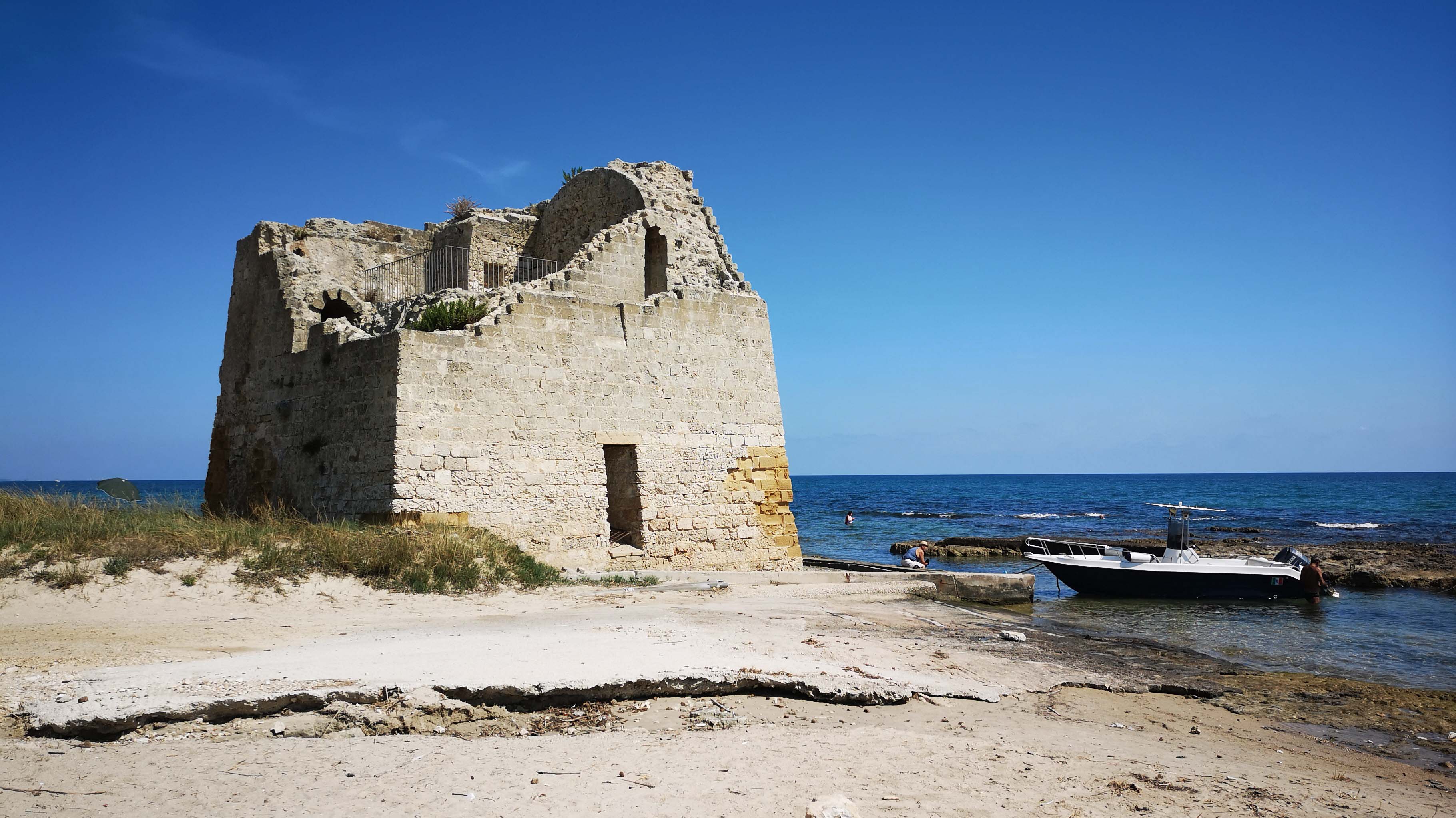 Dann liege ich auf meiner feudalen Strandmatte und lese mich in die letzten sehenswerten Punkte in meinem Reisebuch ein. Ich bin jetzt mitten im ‚Salento‘ angekommen, dem südlichsten Teil des Stiefelabsatzes. Mit den Campingplätzen scheint es in dieser Gegend besser zu sein. ‚Das sieht nach einer Rundreise aus‘, meint ein Italiener während ich lese und schreibe und ich bestätige das.