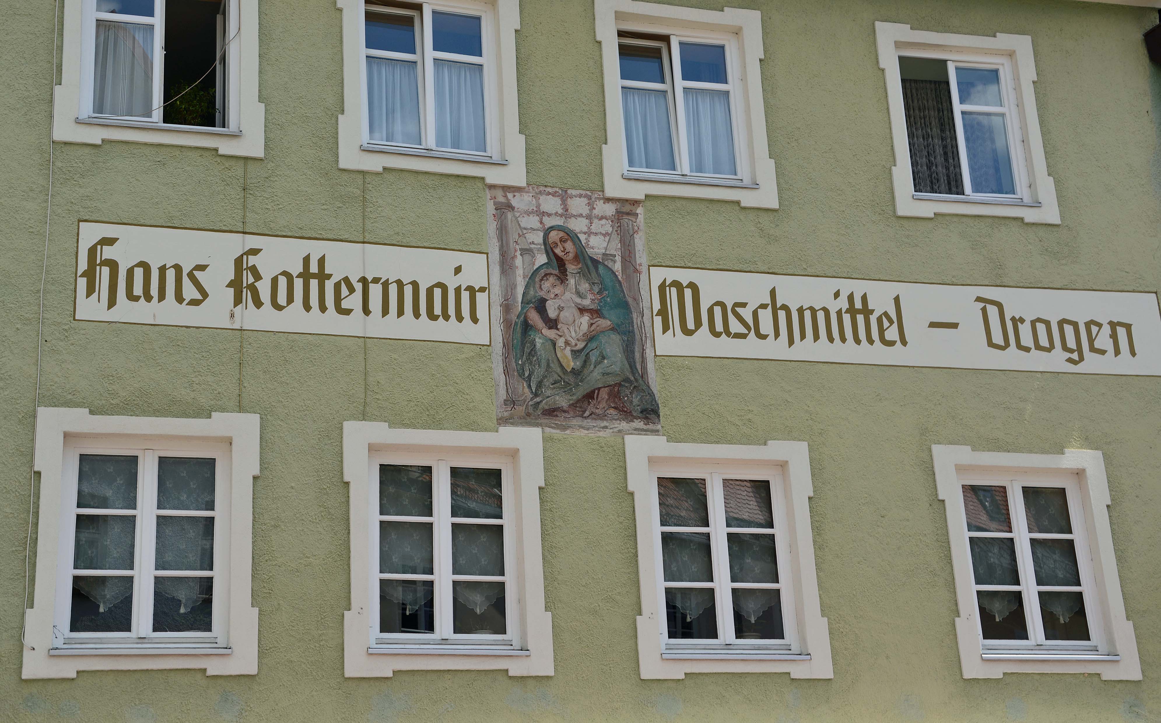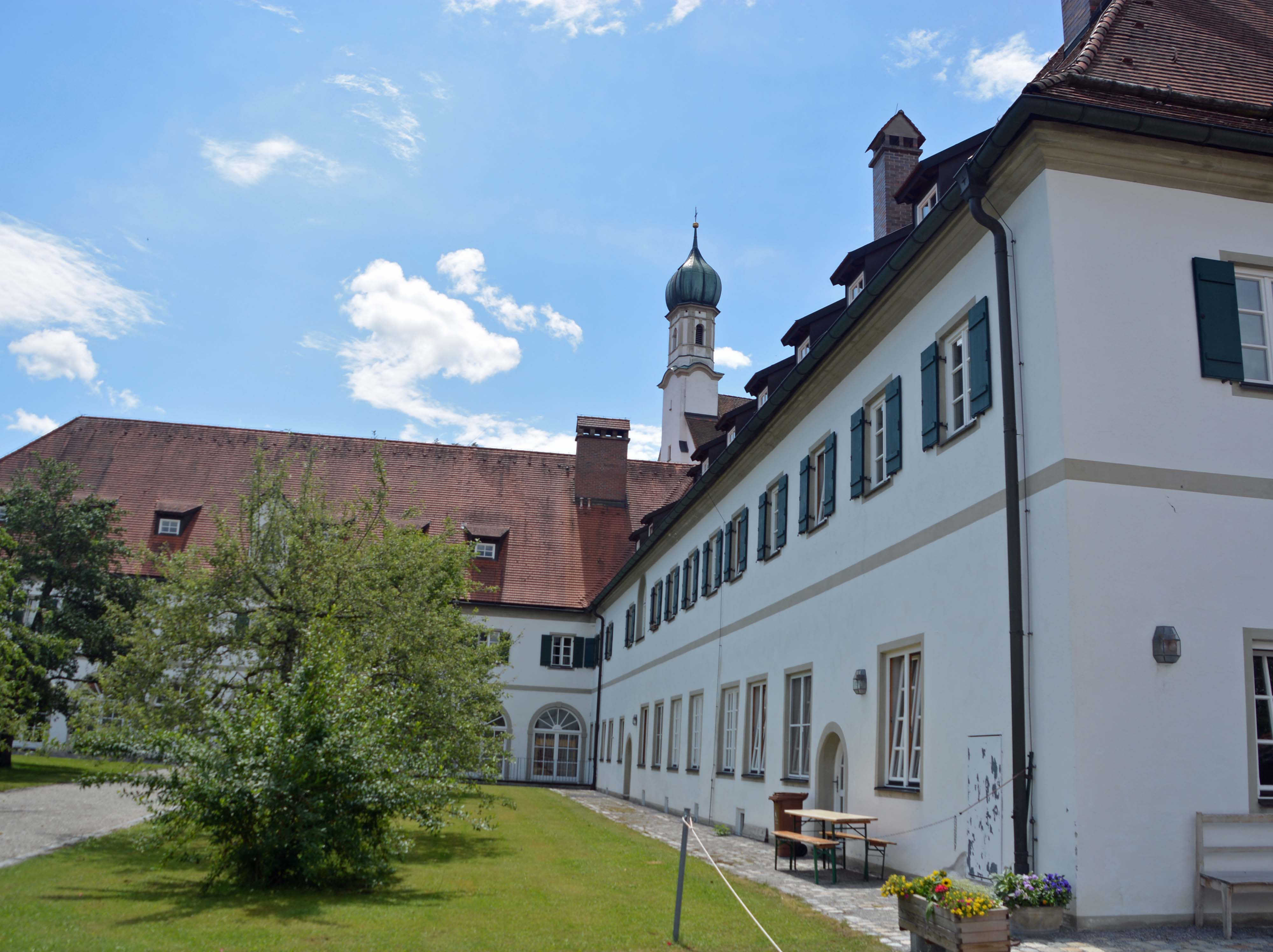 Der Rückweg führt mich direkt am Franziskanerkloster vorbei und wieder in die Altstadt. Mittlerweile ist es warm und meist sonnig, was mich dazu veranlasst, in einer Bayerischen Gaststätte eine Flädle-Kraftbrühe zu schlabbern und ein süffiges Dunkles dazu zu trinken. Ich beobachte das gemächliche Treiben der Sonntagsspaziergänger und die zahlreichen Radfahrer, die trotz Verbot in die Fußgängerzone der Altstadt hineinfahren. Wie aus heiterem Himmel fallen dicke Regentropfen und ich verschwinde schnell unter einem Sonnenschirm. Ich warte auf einen günstigen Startzeitpunkt und schaffe es nicht zum Stellplatz, ohne leicht nass zu werden.