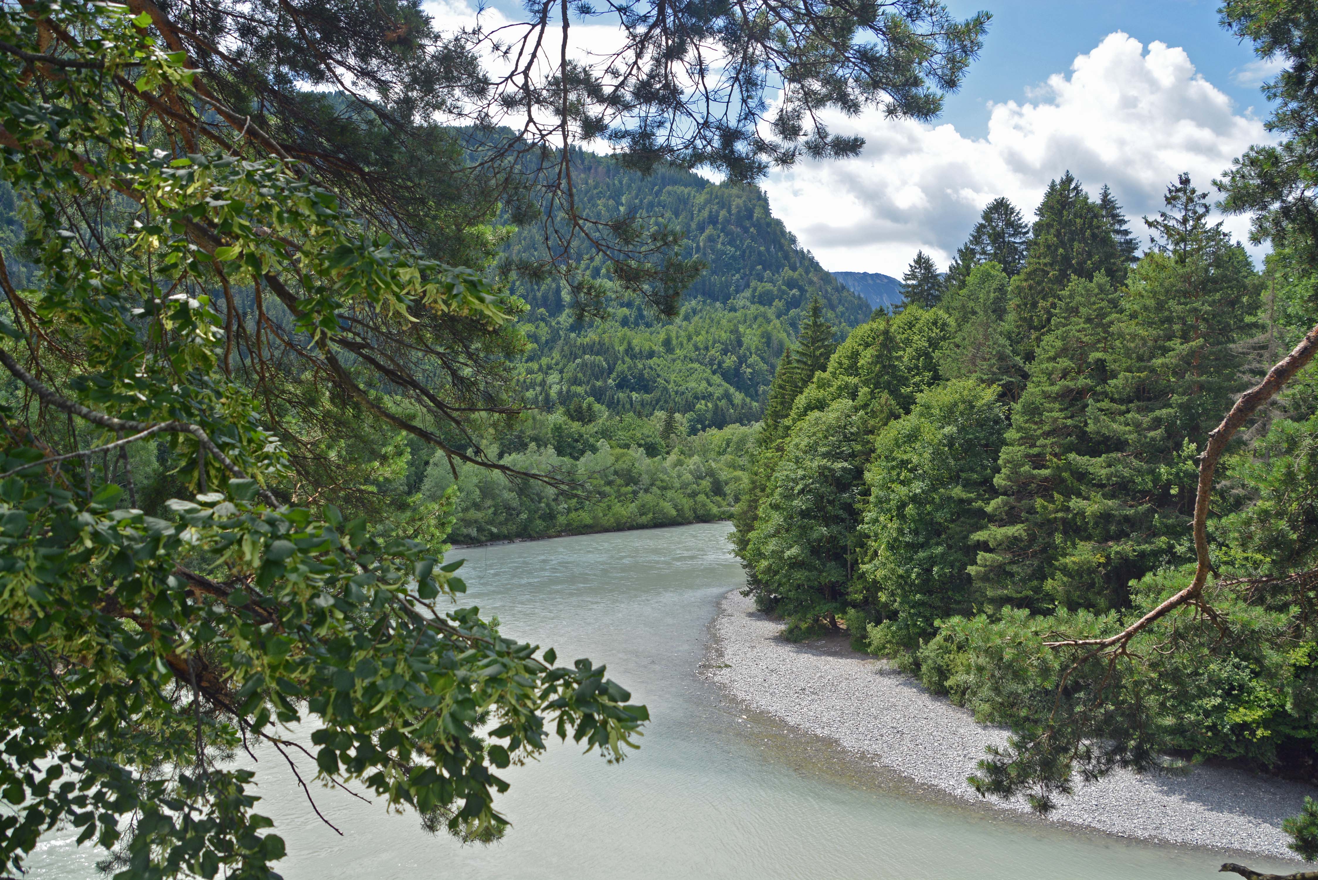Ich beschließe, meine unfreiwillig verlängerte Wartezeit wieder in Füssen zu verbringen, schwinge mich auf‘s Radl und los geht’s heute zum Lechfall. Das einmalige Naturschauspiel liegt nur 700 Meter von der Tiroler Grenze entfernt. Der Radweg führt am Lech vorbei und eröffnet wieder andere Ansichten der Altstadt.