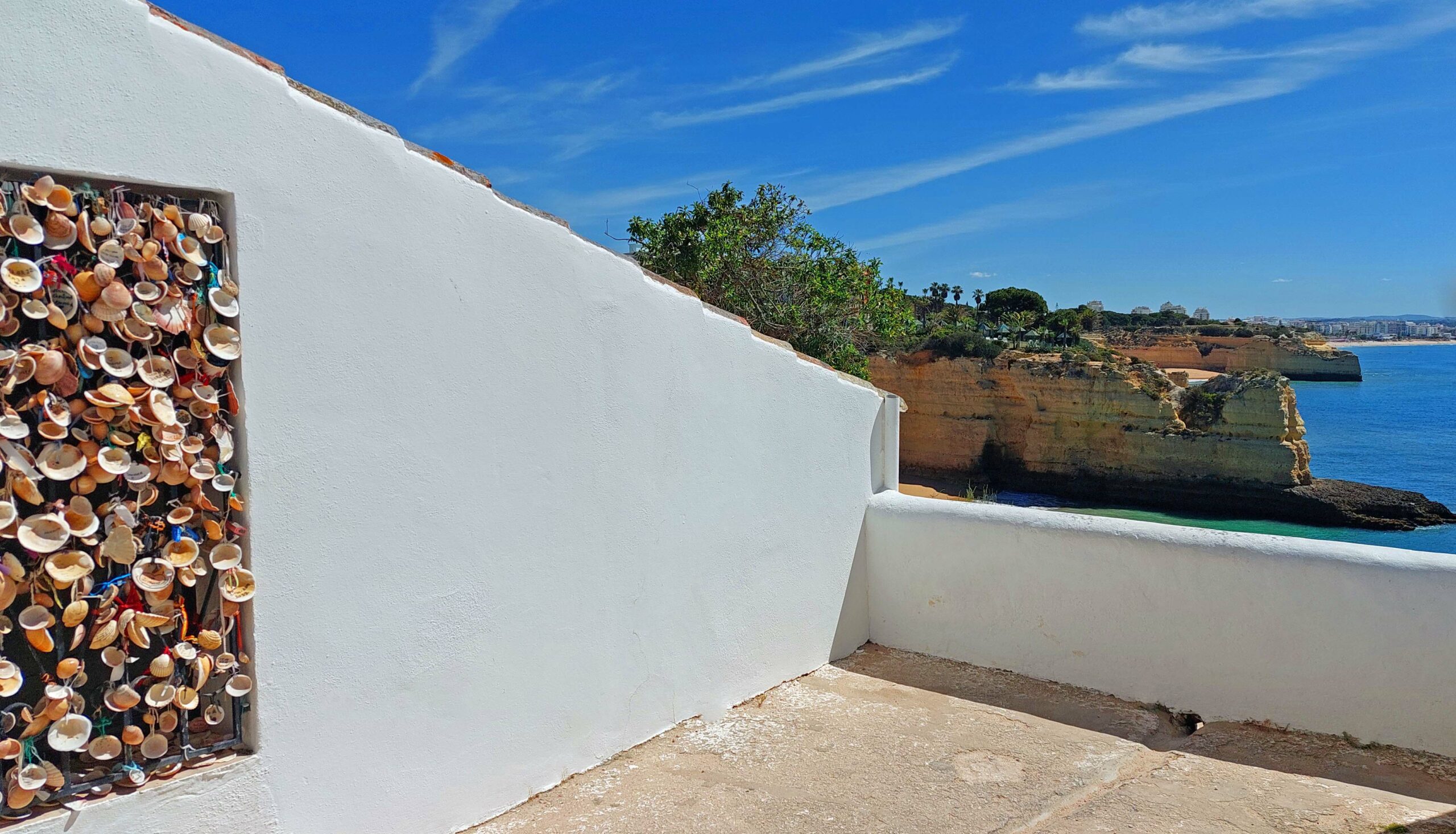 In erster Linie wegen ihrer spektakulären Lage fahre ich zur Capela de Nossa Senhora da Rocha. Die kleine, weiße Kapelle liegt auf einer schmalen Landzunge, 35 Meter über dem Meer und stammt aus dem frühen 15. Jhd. Fischer haben das bezaubernde Kleinod auf den Ruinen einer alten Festung erbaut. Leider war sie geschlossen und der kunstvolle Altar in dem höchstens 10 m² großen Raum vergittert. Menno, das hat die wenigen Besucher und mich ziemlich gefrustet.