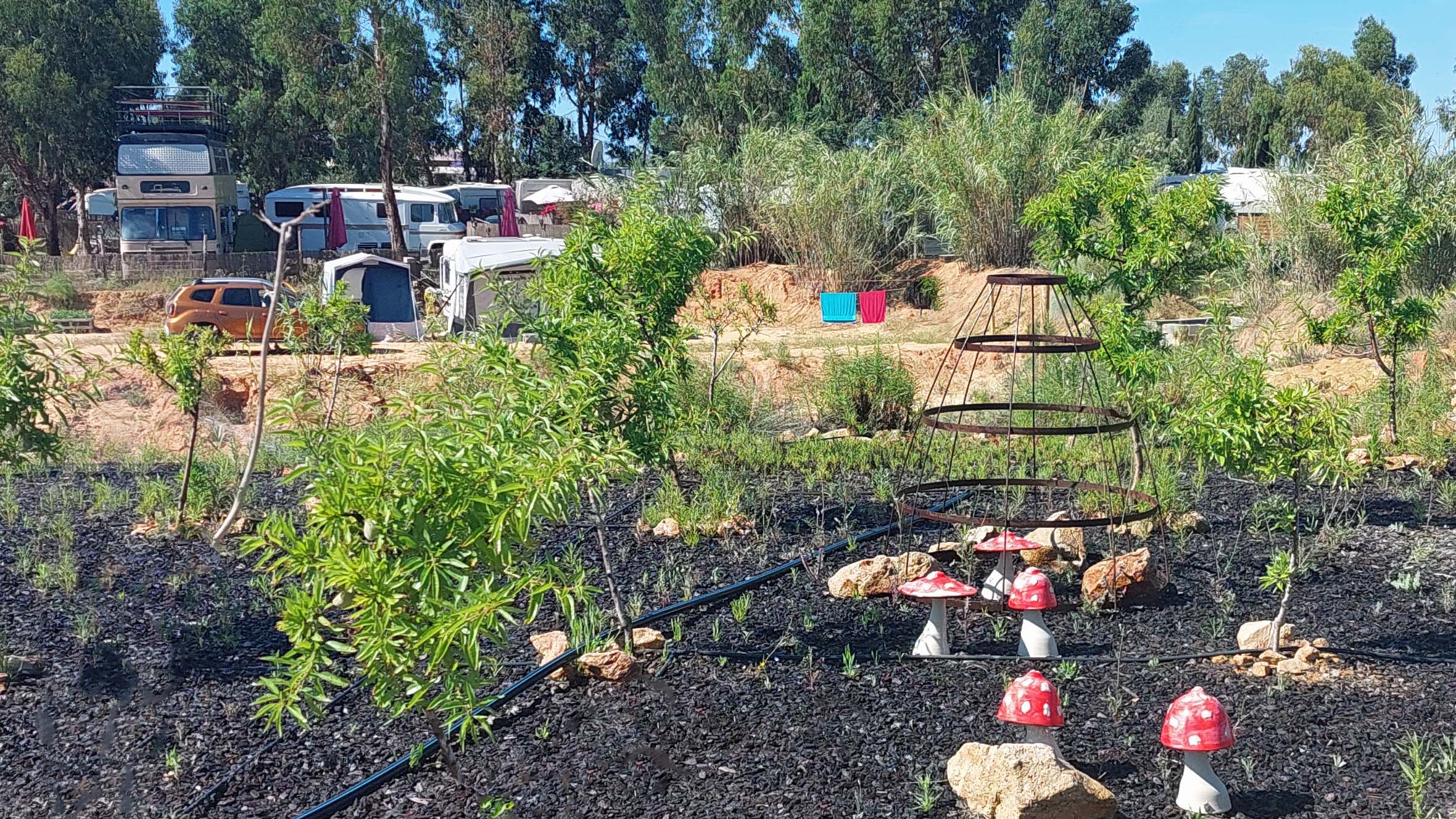Nanu, welches „Ia“ weckt mich denn da? An der Rezeption erfahre ich mehr und mache vor meinem Start einen Rundgang an diesem unkonventionellen Übernachtungs-Ort. Ich finde die Esel, weitere Tiere, zahlreiche Kunstwerke, außergewöhnliche Garteninseln und mittendrin die Wohnmobile! Beispiellos in meinem über 25jährigen Camperleben! 🙂