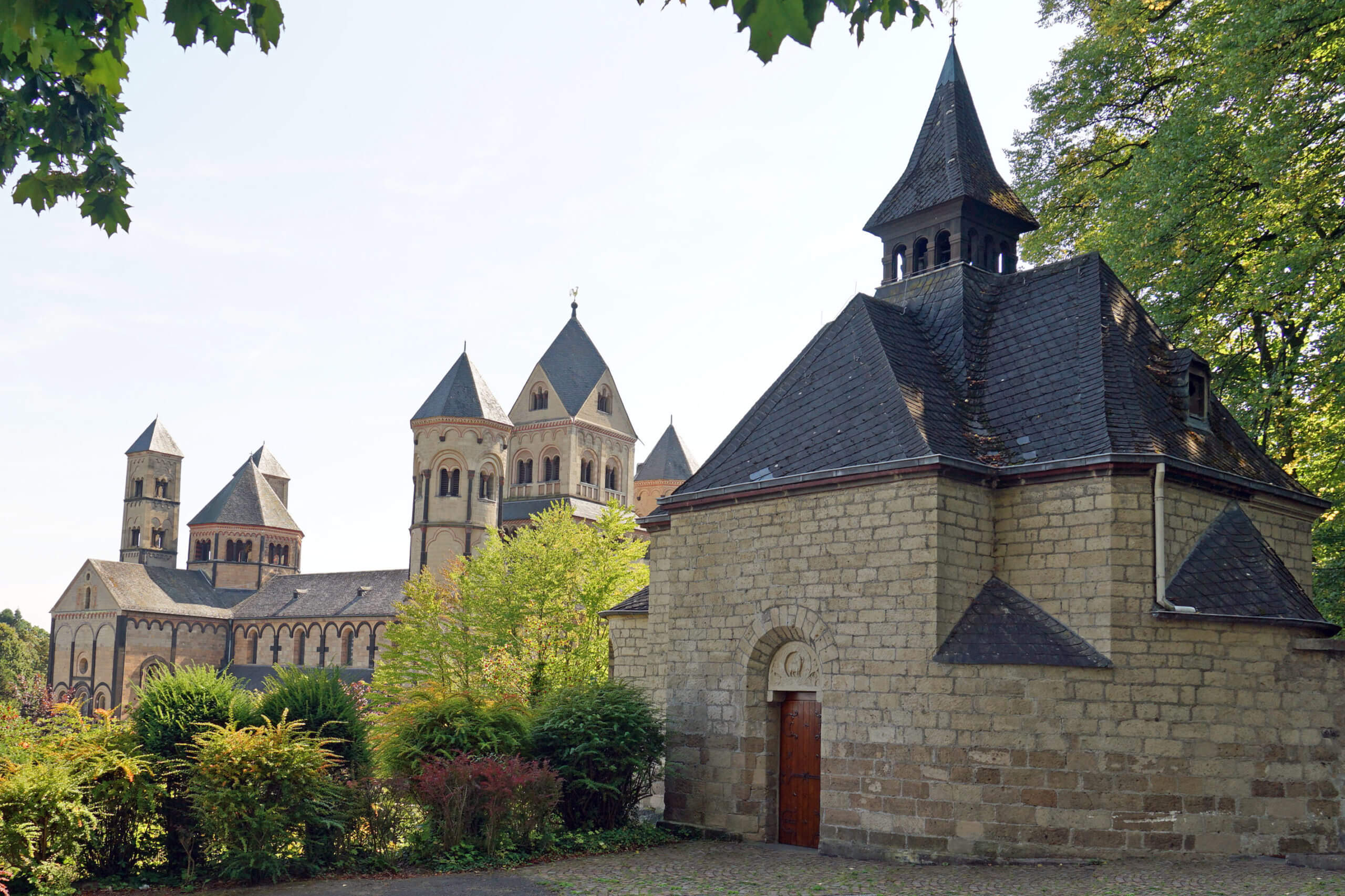 Und ja, weil es Sonntag ist, laufen hier Massen von Leuten, so dass ich mich wie auf einer 8 ½ Kilometer langen Touri-Meile wähne. Ein ruhiges Wandern ist deshalb nicht möglich. Ich füge mich der Situation und freue mich auf mein erstes Ziel, die Abtei „Maria ad Lacum“. Pfalzgraf Heinrich II., der damals auf der Burg Rheineck residierte, stiftete das Benediktinerkloster, das sich rasend schnell zum geistigen Zentrum der Region entwickelte. Heute ist es ein spirituelles Zentrum und genießt Weltruhm in der Liturgie-Wissenschaft der katholischen Kirche.