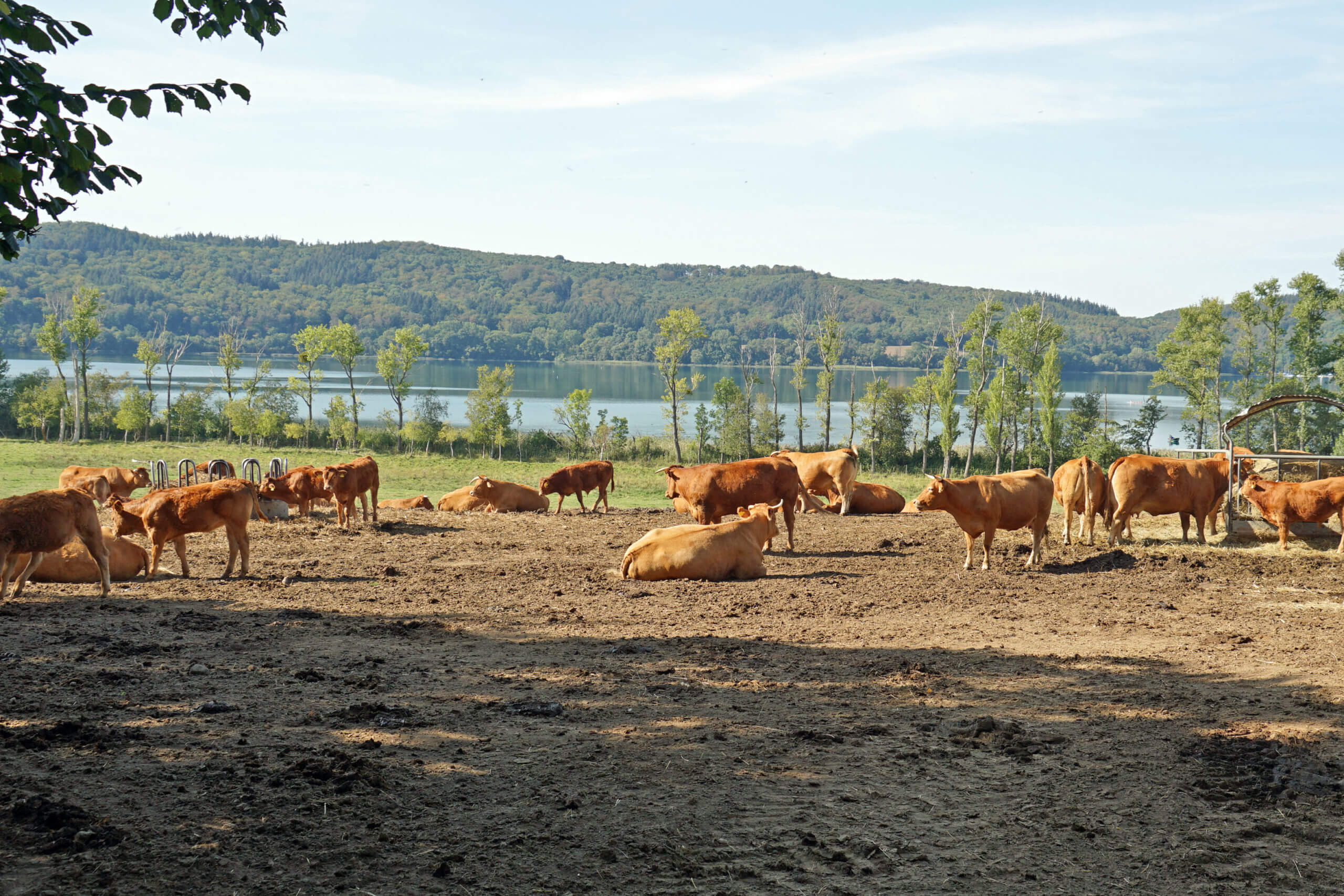 Ich setze meinen Wanderweg fort, laufe durch lichten Buchenwald, teilweise direkt am Seeufer entlang, entdecke die besagten Blubber-Blasen und erfreue mich an einer intakten wunderschönen Natur. Kühe weiden auf saftigen Wiesen und der Mais reift auf weiten Feldern.