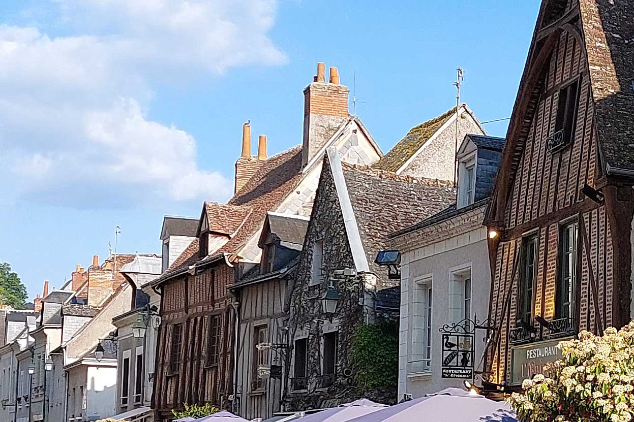 In der Nähe der Bogenbrücke „General al Leclerc“ 🌉 über die Loire habe ich – im wahrsten Sinne des Wortes – märchenhafte Blicke auf das über der Stadt liegende „Chateau Royal d’Amboise“ und ehemaligem Staatsgefängnis. Und vor der Brücke liegt die majestätische Loire vor mir. In der Stadt ist sehr viel los 🧑🦽➡️🧑🦯🧑🦯➡️🚶♀️🏃, die Einkaufsstraßen sind voll und in den Cafès, Bars und Restaurants ist kaum noch ein Platz zu erhaschen. In der Place Michel Debré gibt es altes Fachwerk zu bewundern.