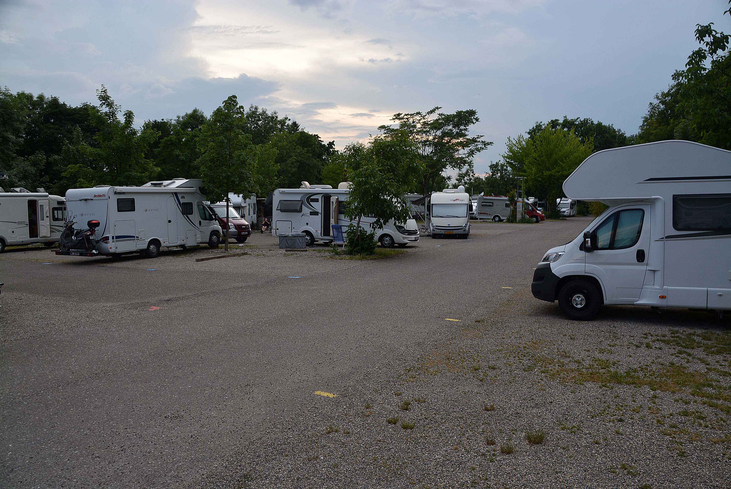 Irgendwann hinter Rastatt lasse ich Fiete mit 140 laufen. Nach genau 4 ¼ Stunden fahre ich auf den Stellplatz Freiburg, checke ein, kaufe ein W-Lan-Ticket und entdecke den Arbeitnehmer, wie er entspannt zum Wohnmobil schlendert.
