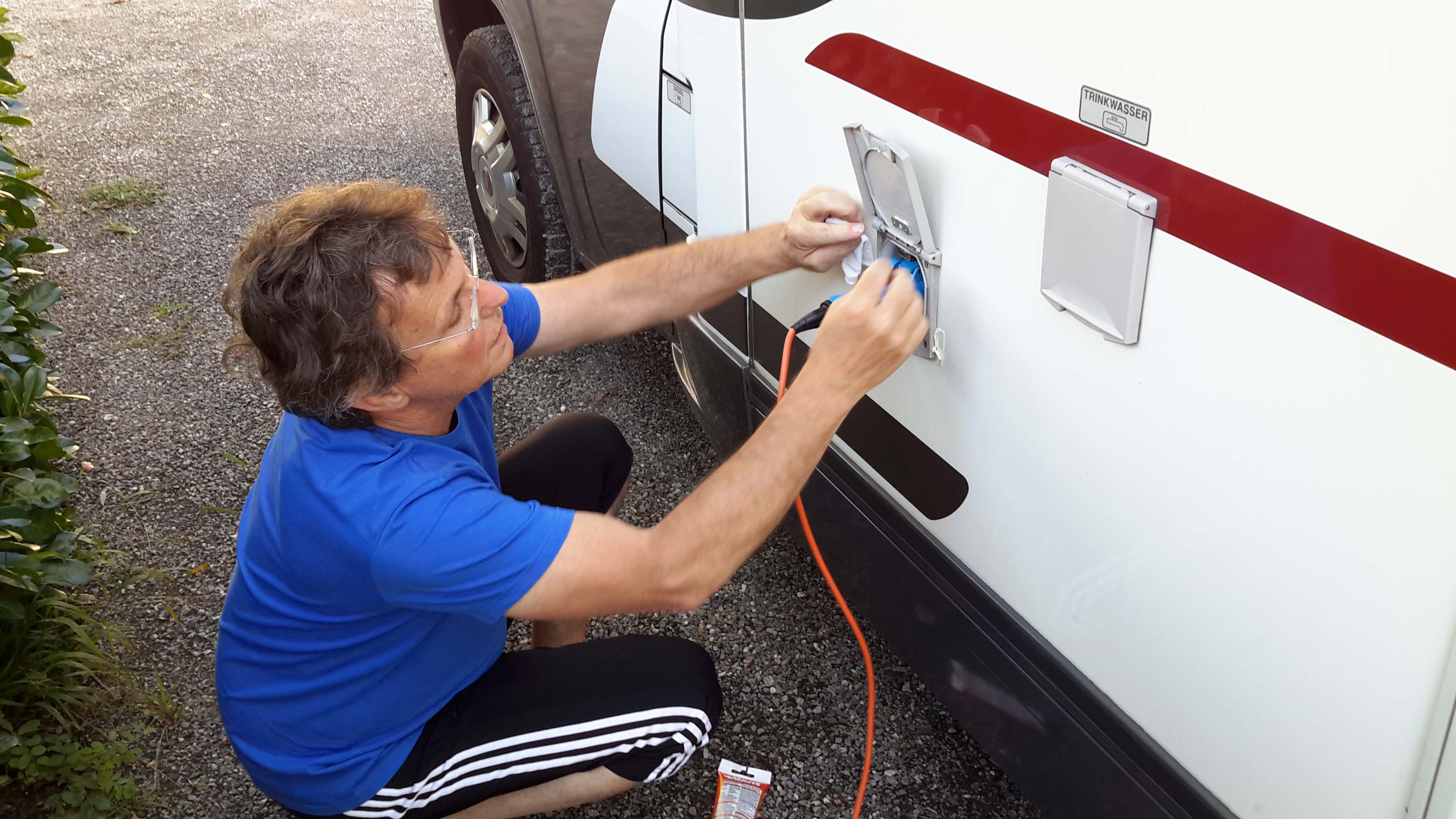 Übrigens, unserem Campingnachbarn ist bei dem gestrigen Unwetter die WOMO-Markiste zerstört worden. Sie liegt zerfleddert und verbogen hinter dem Mobil. Ganz großes Wetterkino!
