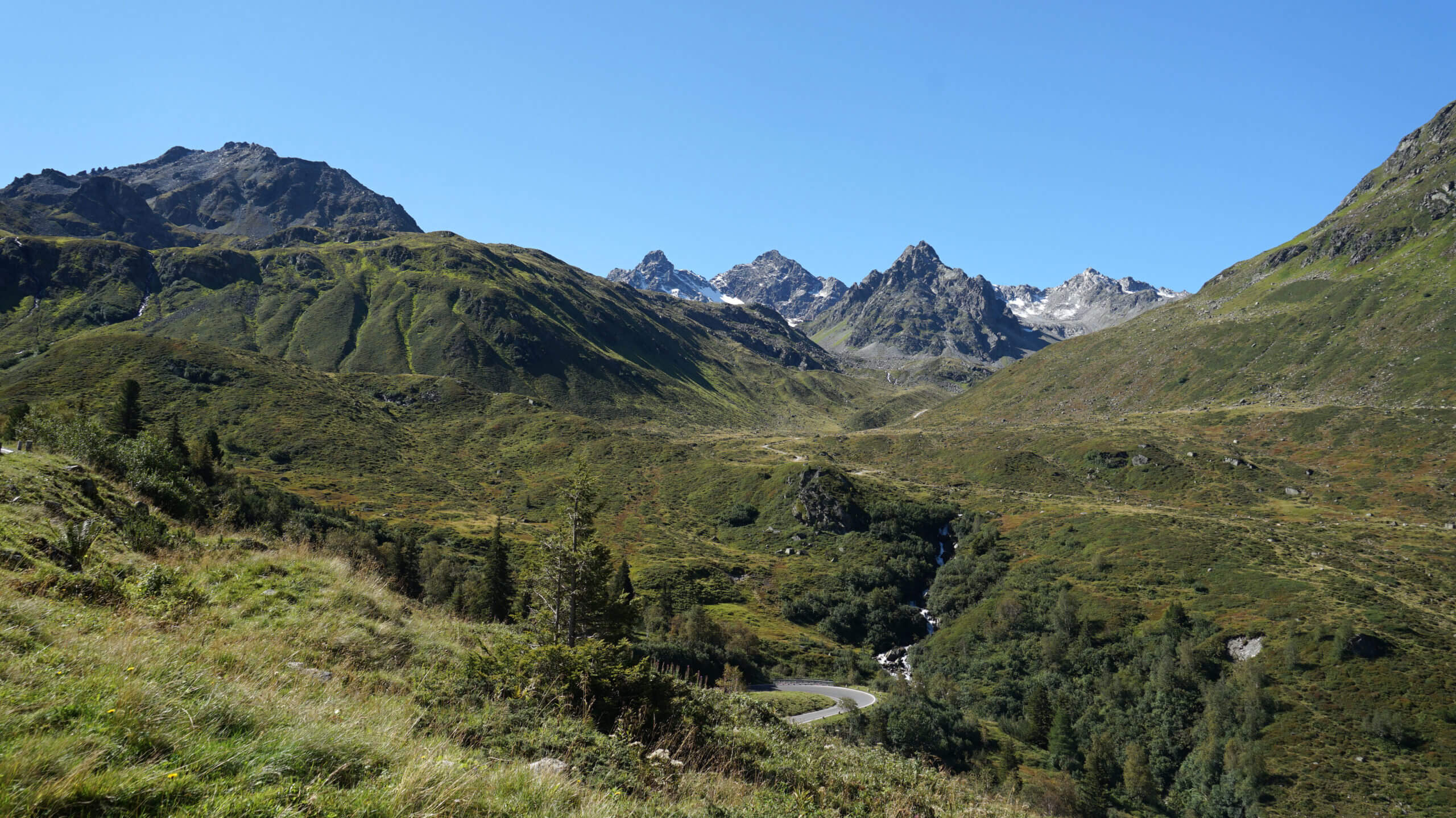 Ich lege beim Frühstücken einen Zahn zu und bin tatsächlich kurz nach 9 unterwegs zur schönsten Traumstraße der Alpen, der Silvretta-Hochalpenstraße.