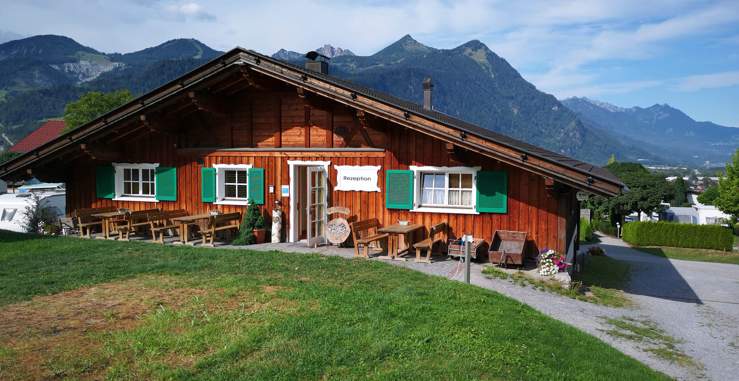 Ich starte jetzt die letzten 50 Kilometer zum Campingplatz Sonnenberg in Nüziders/Bludenz. Ich werde schon erwartet und sehr freundlich empfangen. Leider muss ich mich eine Nacht mit einem Ausweichplatz – der ein Komfortplatz mit Panoramablick ist – begnügen. Ich tanke Frischwasser und wundere mich, dass es mäßig aber regelmäßig wieder ausläuft. Ich unterhalte mich mit Pössl-Nachbarn, die ein tolles Mobil mit nur 6 Metern Länge und einem Hubbett mit Längsbetten besitzen. Er zeigt mir den Wassertankdeckel und wo ich prüfen muss, ob dieser geschlossen ist. Zunächst aber orientiere ich mich auf dem Campingplatz und stelle fest, dass ich auf einem 1a-Platz mit jeglichem Komfort gelandet bin. Die Stellplätze sind groß, eben, die Duschen hervorragend und alles blitzsauber.