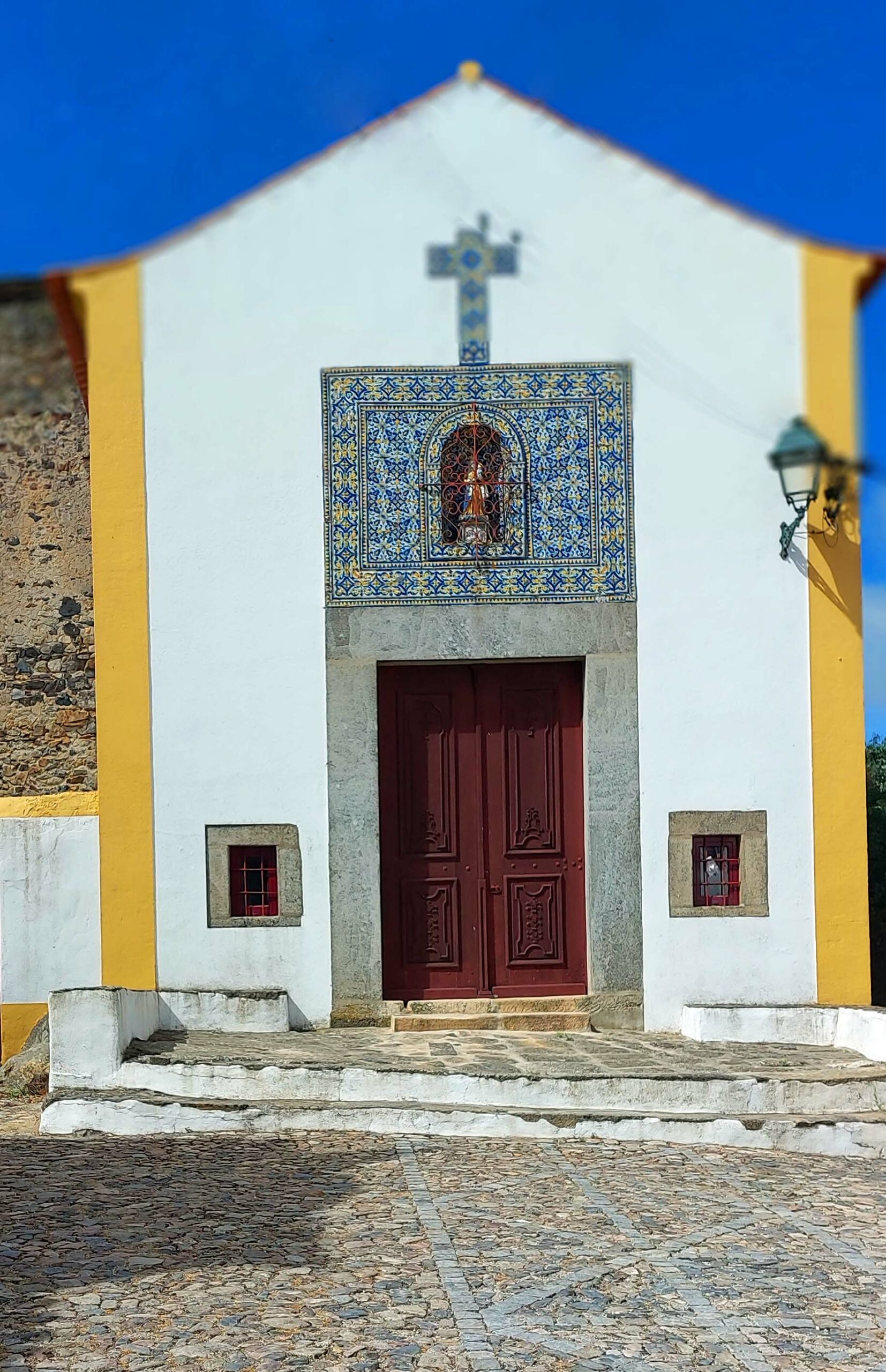 Ich genieße ein zweites Mal auf der Anfahrt den fantastischen Blick auf das reizvolle mittelalterliche Castelo de Vide mit seiner mächtigen Festungsanlage aus dem 12. Jahrhundert. Die Burg ragt majestätisch aus dem weißen Häusermeer heraus. Der wichtige Verteidigungsposten wurde nach einer Kanonenexplosion 1705 restauriert. Das Innere des Castelos ist nach wie vor bewohnt. Und die Aussicht in die Alentejanische Ebene und auf das weiße Häusermeer ist phänomenal – soweit das Auge reicht. Ganz in der Nähe steht die kleine Kirche Nossa Senhora da Alegria. Leider ist sie – wie schon viele vorher – geschlossen.