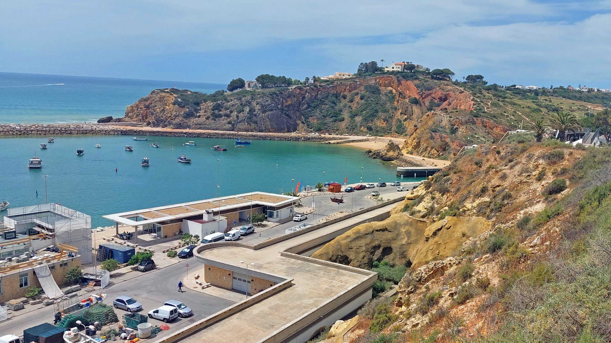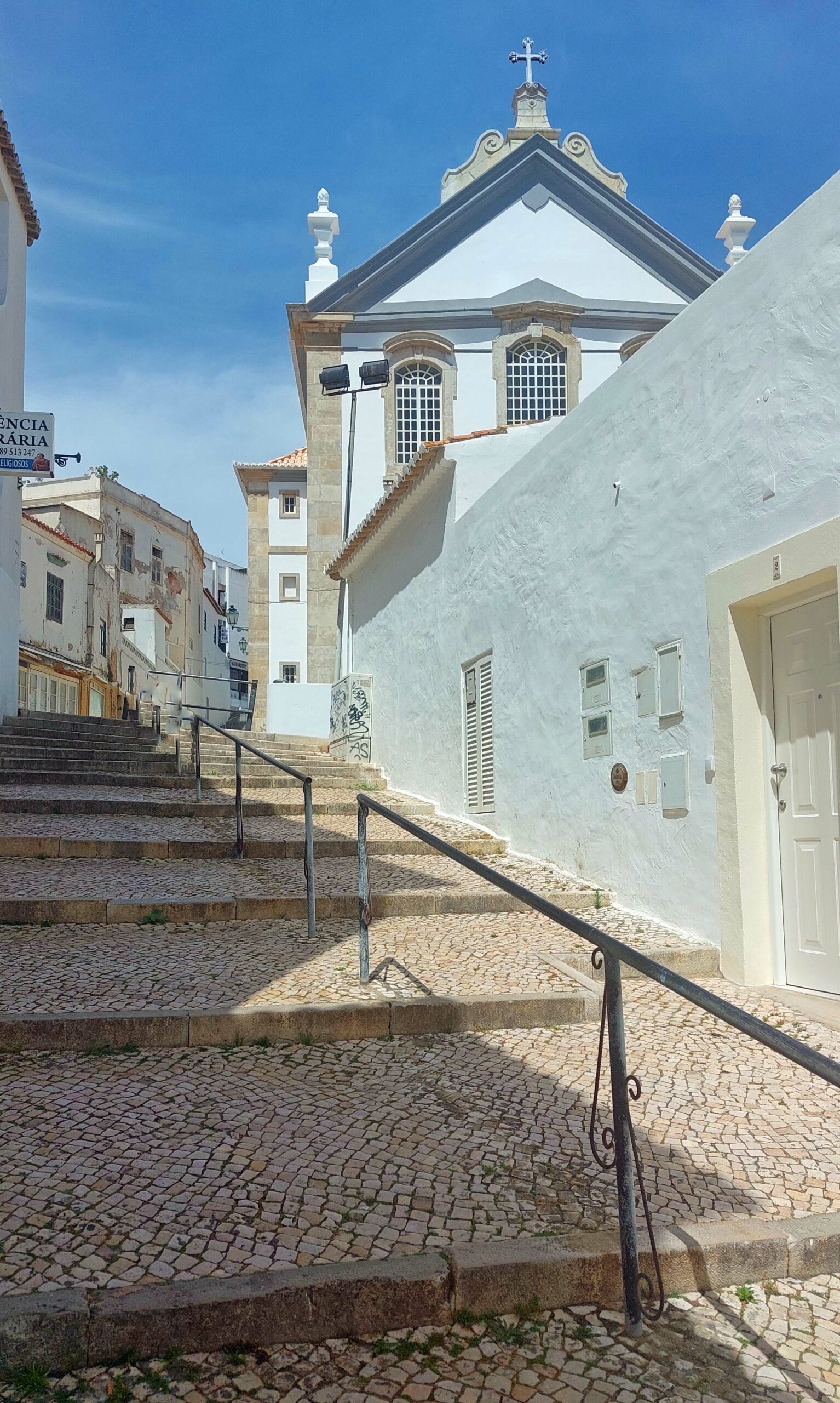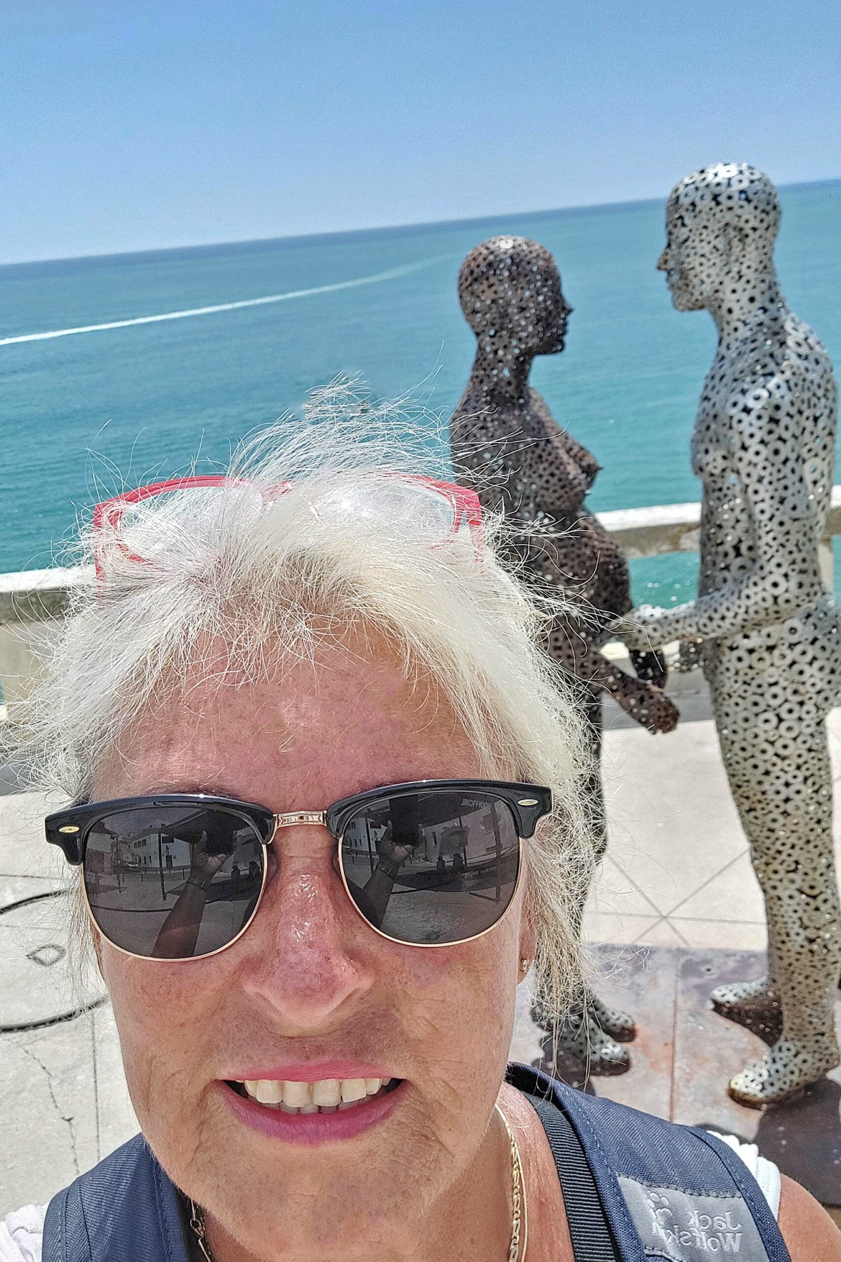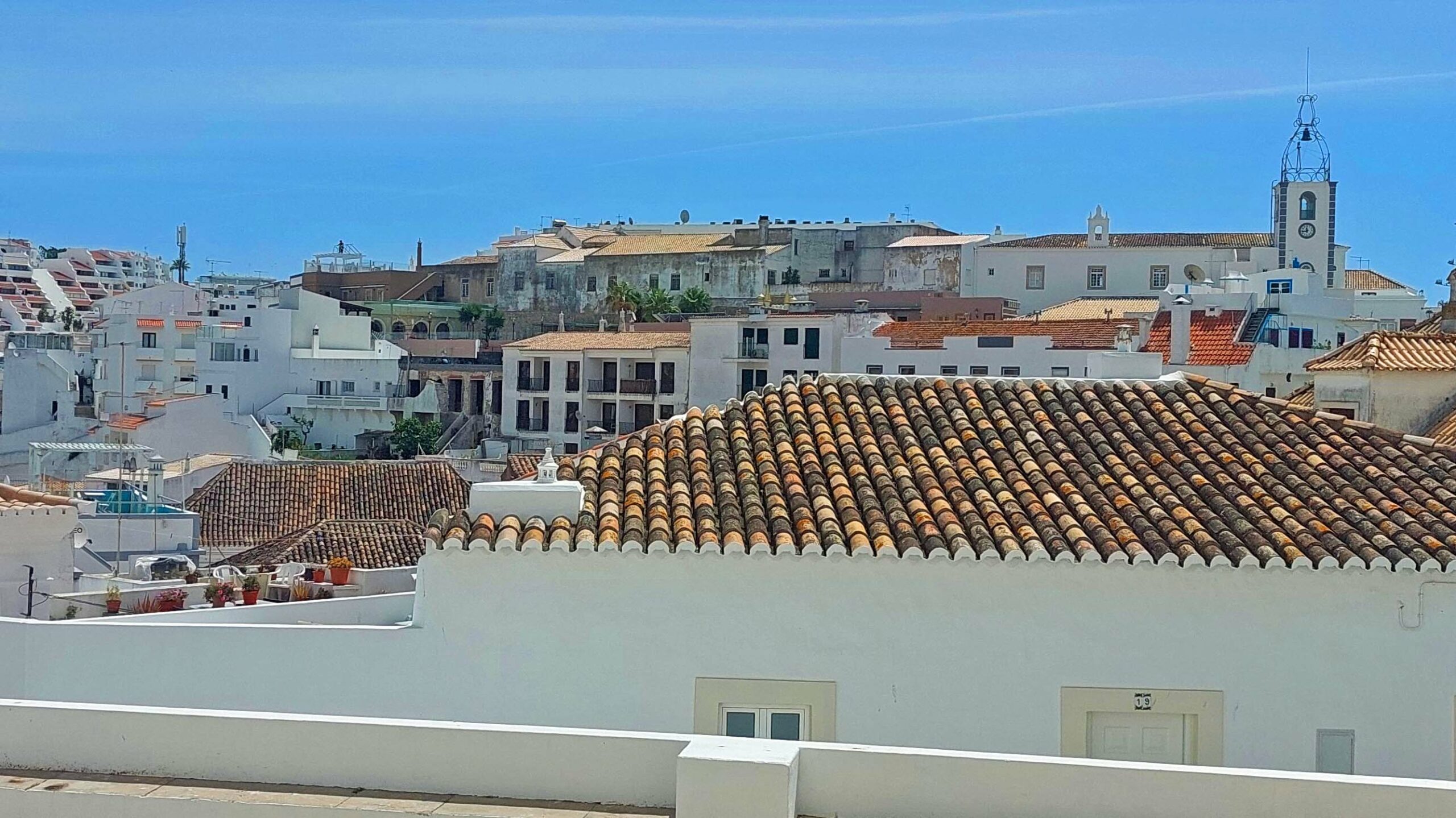 Mein Weg führt mich zum Hafen, vorbei an zahlreichen Touri-Shops, die sich mit ihrem Angebot durch nichts unterscheiden, und zum Torre do Relogio, einem Uhrenturm mit Glocke. Das war’s dann aber auch schon. Vom Küstenweg her genieße ich Richtung Meerseite schöne Ausblicke. Das will ich nicht verhehlen. Letztes Ziel ist der Stadtstrand Praia dos Pescadores. Hier genieße ich das Meer, den Wind, die Wellen und die Felsbrocken. Nur nicht umdrehen ist meine Devise! Sonst blicke ich auf eine Ansammlung von hässlichen Bettenburgen, Bretterbuden, Snackbars und Strandrestaurants.