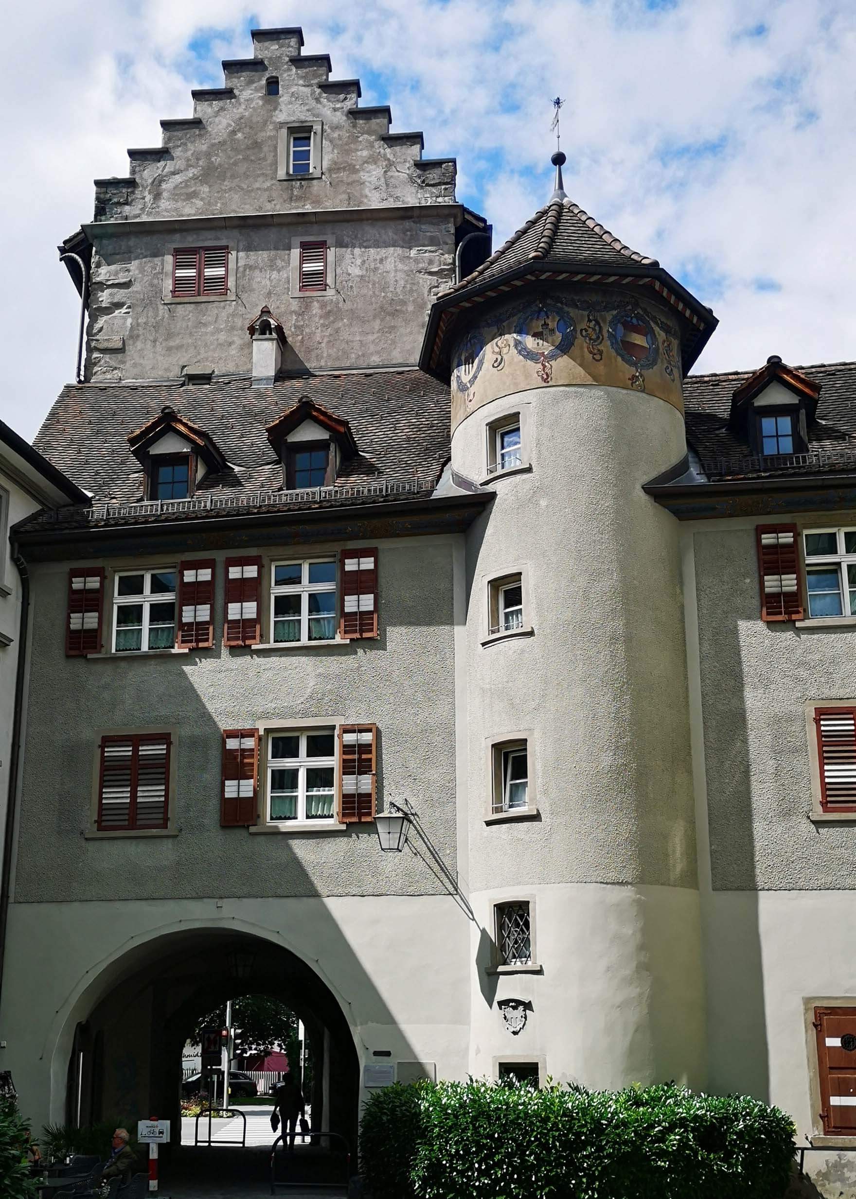 Feldkirch hat romantische Laubengänge, verwinkelte Gassen, hübsche Brunnen und Häuserfassaden. Nach einem Käffchen schwinge ich mich erneut aufs Rad und den Rückweg. Die richtige Lust zum Fotografieren und Genießen will sich nicht einstellen. Und ich bin weiterhin leicht übellaunig. Der Brüller ist dieser Ausflug nicht gerade, aber der Mensch ist leidensfähig, ich besonders. Ich gebe mich gezwungenermaßen mit dem zufrieden, was das Wetter hergibt. So ist das nun mal. Schlechte Laune macht es trotzdem. Durchhalten. Es wird besser, aber wann??
