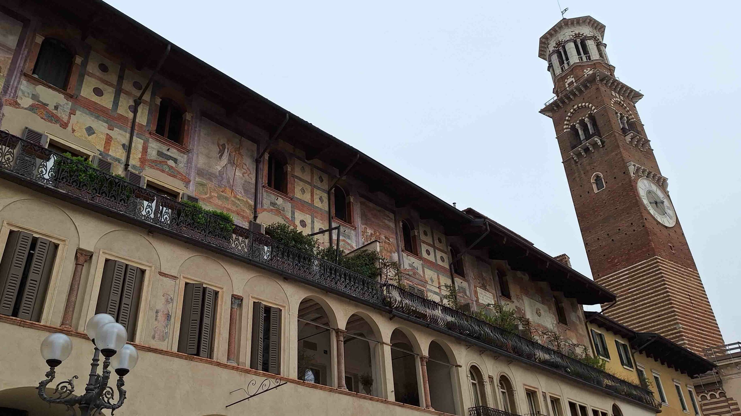 Stets umlagert von Touris ist der Capitello, ein Marmorbaldachin auf 4 Säulen. Hier wird gegessen, getrunken, geschätzt und sich entspannt. Der historische Marktbrunnen Fontana Madonna Verona ist das älteste Denkmal und Symbol Veronas. Es steht exakt im Zentrum der Piazza. Der Palazzo Maffei beeindruckt mit seinen barocken Statuen. Zeus, Aphrodite, Apollo, Athene, Hermes und Herkules blicken „kopfschüttelnd“ von der Ballustrade herab. Der barocke Palazzo Maffei mit seinen eindrucksvollen verblassten Fassadenfresken ist das Fotomotiv schlechthin. Vor dem Torre di Lamberti, wartet eine Menschenmenge auf das „GO“ zum Aufstieg. Und es gibt noch soooo viel mehr zu entdecken. Ich lasse die Bilder sprechen.