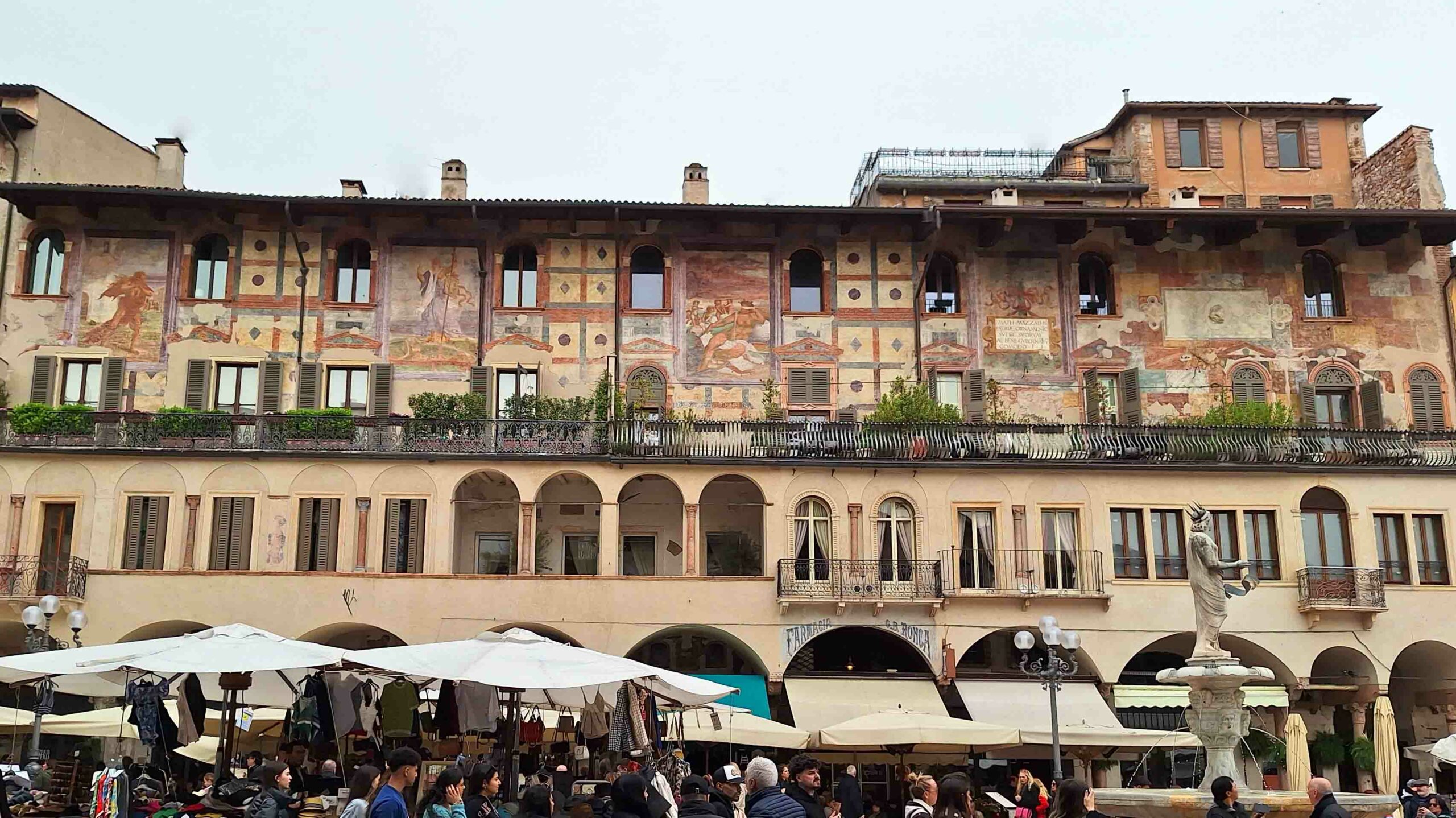 Dann ist es soweit. Ich stehe auf der Piazza delle Erbe, dem Herzen der Stadt. Wow! Unterschiedliche Intensitätsstufen der Freude rasen durch meinen Kopf und mein Herz. ❤️❤️❤️ Mich durchströmt ein intensives Glücksgefühl. Mein Lieblingsplatz liegt vor mir.