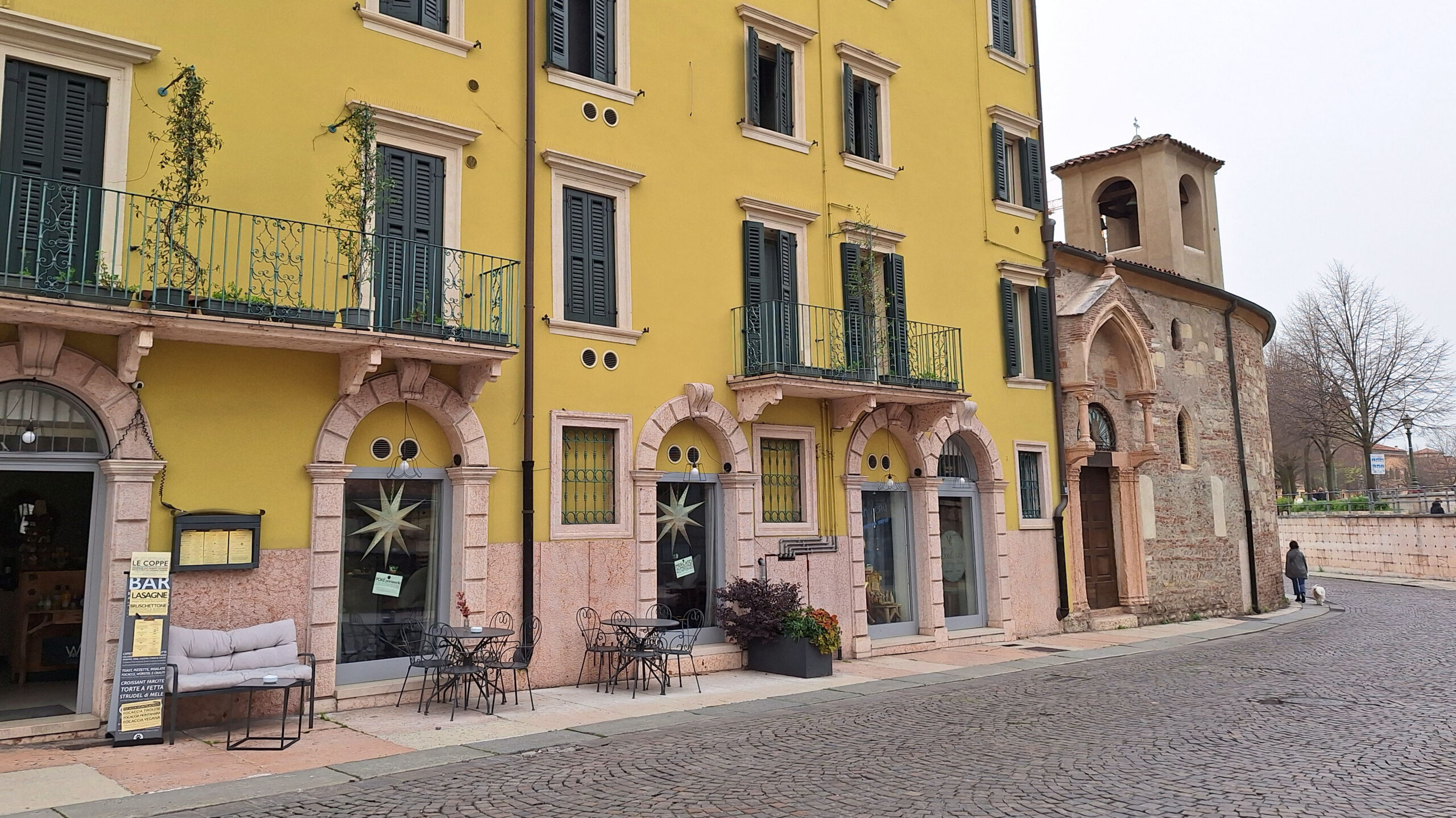 Den mächtigen gotischen Backsteinbau der Chiesa Sant‘ Anastasia, der größten Kirche Veronas, kann ich leider nicht besichtigen. Es findet gerade eine Taufe statt. Auch der Domkomplex Duomo Santa Maria Matrocolare war wieder geschlossen. 😒