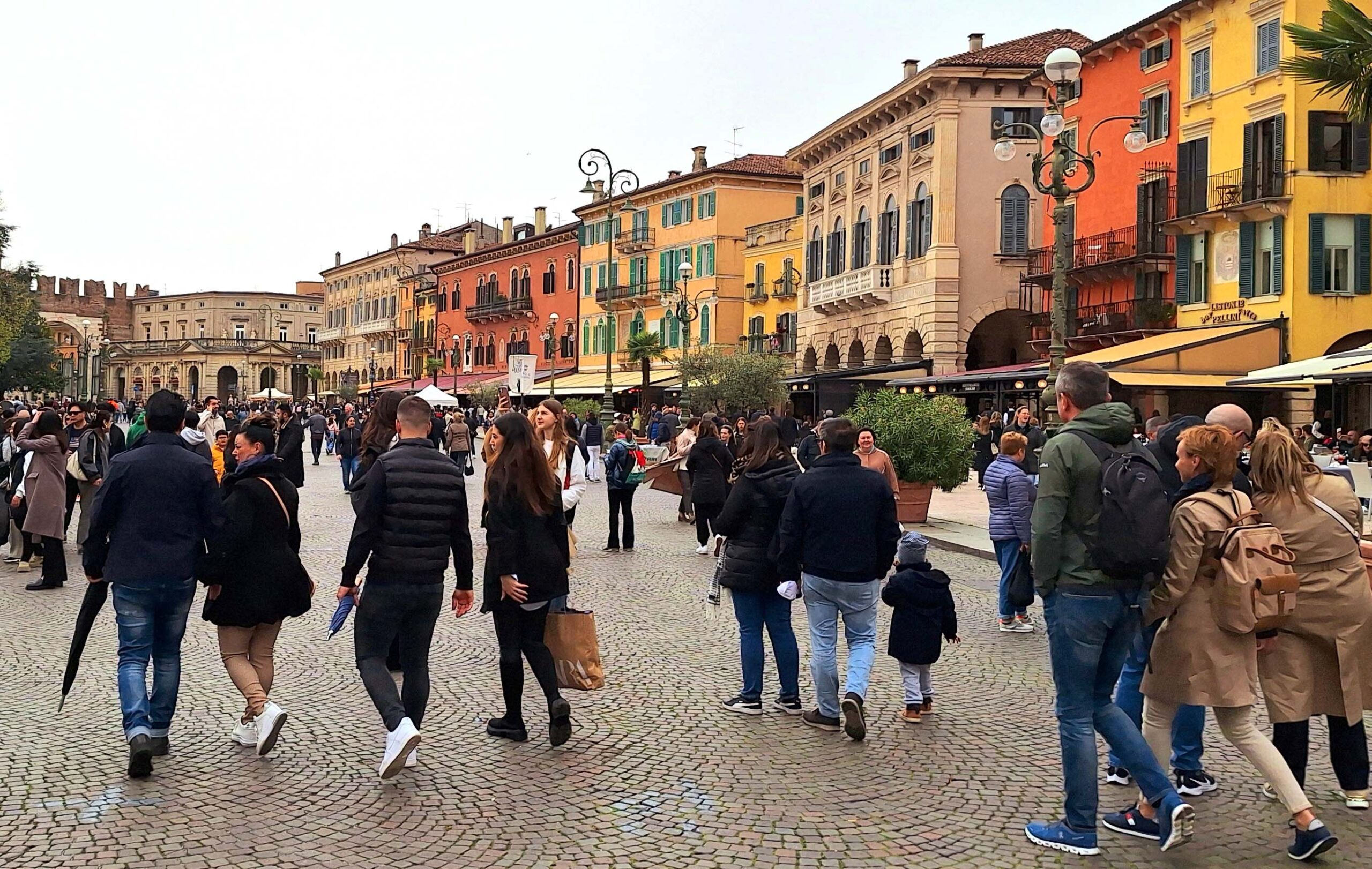 Wow, und da isser! Mehrere Intensitätsstufen der Freude 🤩🤩🤩 rasen durch Kopf und Herz.❤️ Ein sehr intensives Glücksgefühl erfüllt mich. Die Piazza ist der malerische Mittelpunkt Veronas. In der Antike war er Markt- und Versammlungsort und in der römischen Zeit Zentrum des politischen, wirtschaftlichen und gesellschaftlichen Lebens.